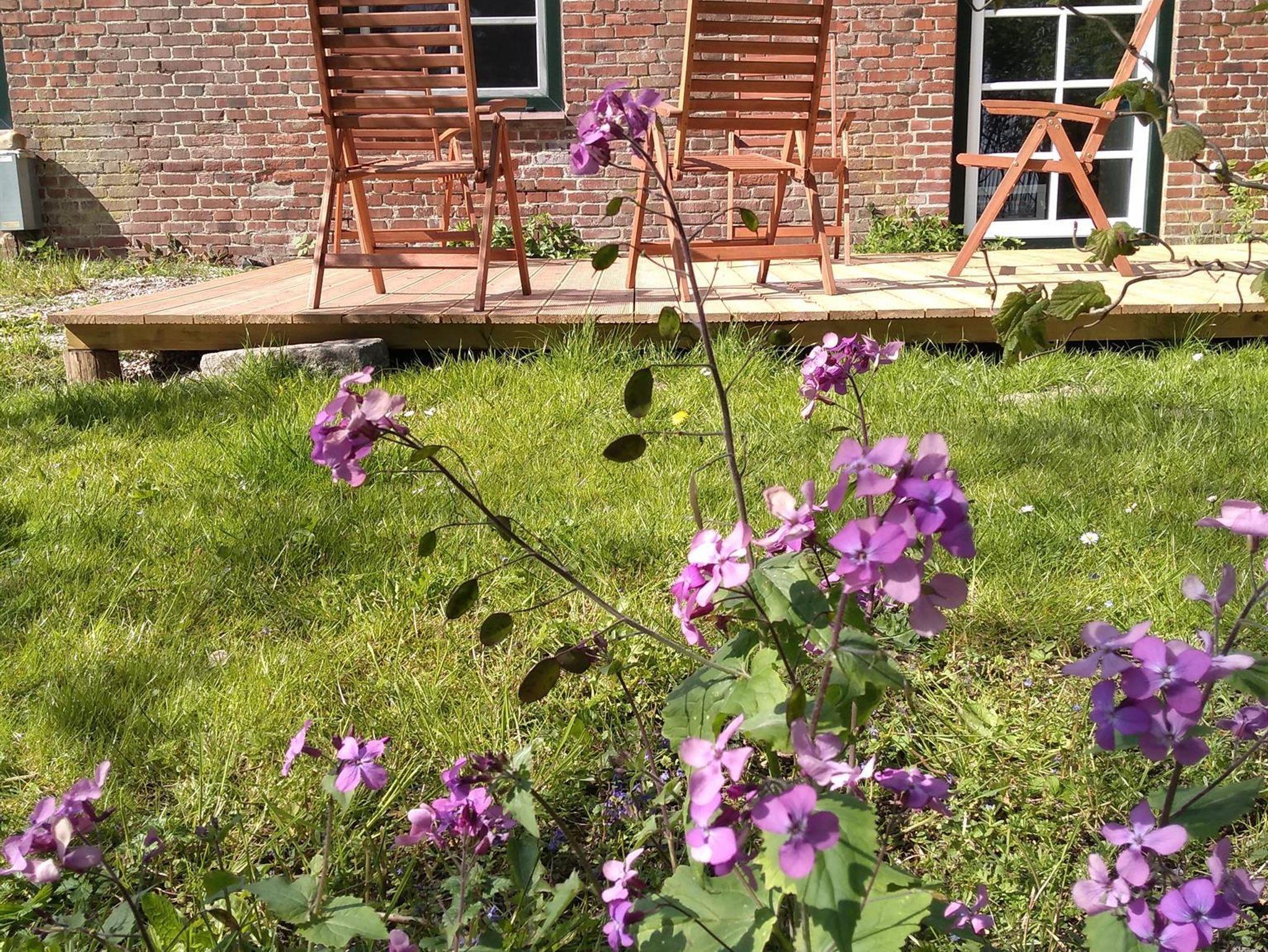 Ferienhof Röhe in Tümlauer Koog bietet gemütliche Ferienwohnung mit Blick auf Küste und Obstgarten, ideal zum Entspannen und für Familien.
