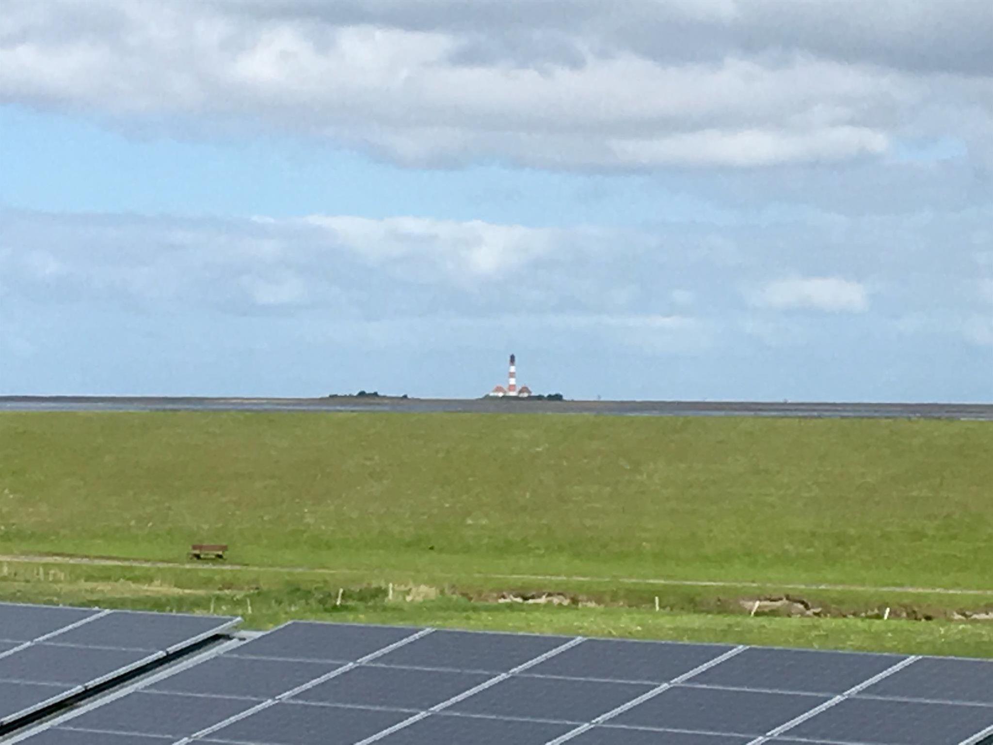 Gemütliche Ferienwohnung am Deich in Tümlauer Koog mit Garten, Spielplatz und Blick auf den Westerhever Leuchtturm.
