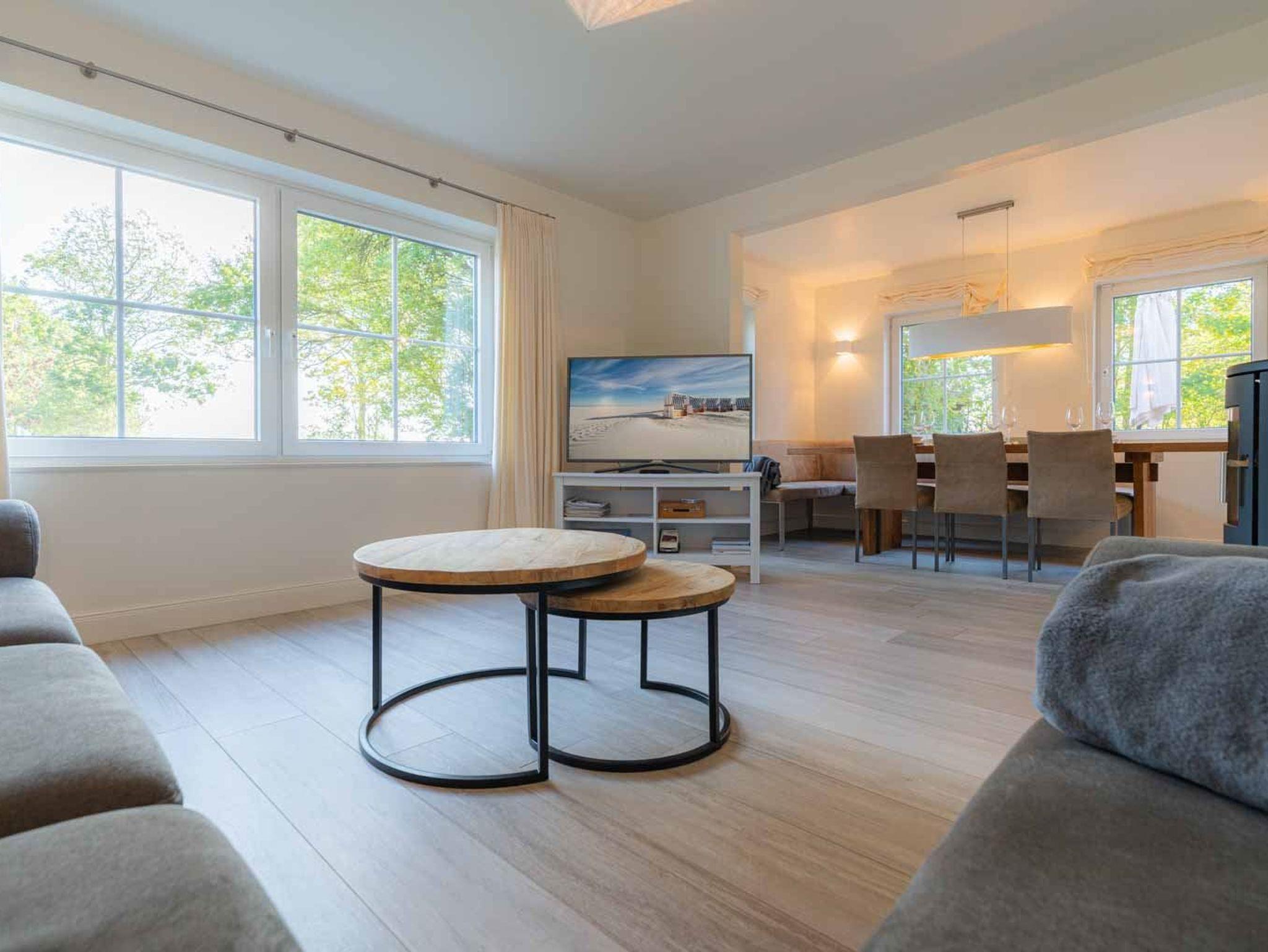 Beide Domizile bieten großzügige Wohnbereiche mit Kaminofen, SMART-TV und Zugang zur eigenen Terrasse. Die modernen Küchen sind umfassend ausgestattet inkl. Waschtrockner. Insgesamt 5 Schlafzimmer mit hochwertigen Matratzen, Verdunklungsrollos und TV sowie 4 stilvolle Bäder (teilweise ensuite) und 2 Gäste-WCs sorgen für Komfort.