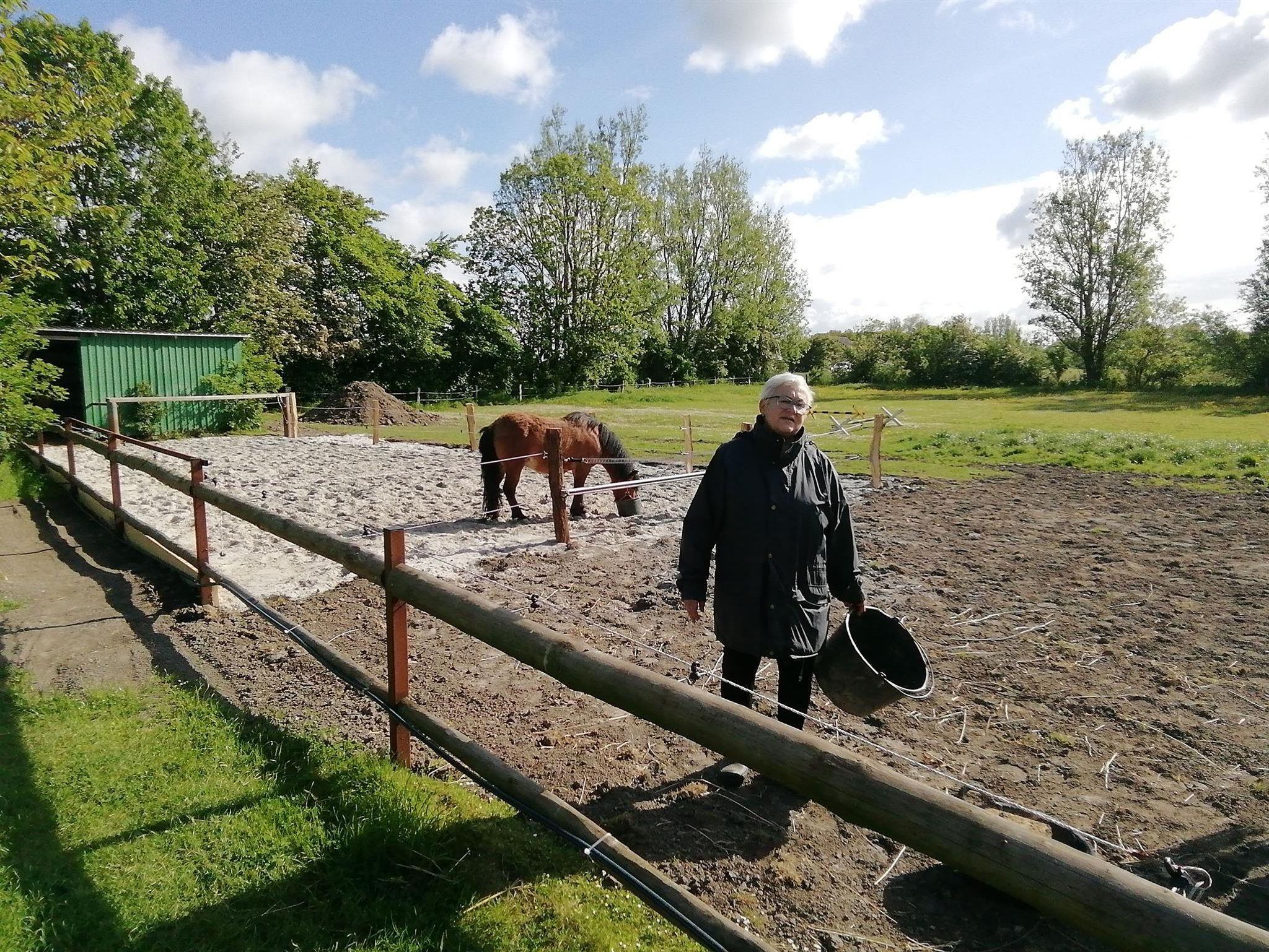 Im angrenzenden Gebäudeteil sind Stallungen für Ponys, Hühner, Enten und Kaninchen.