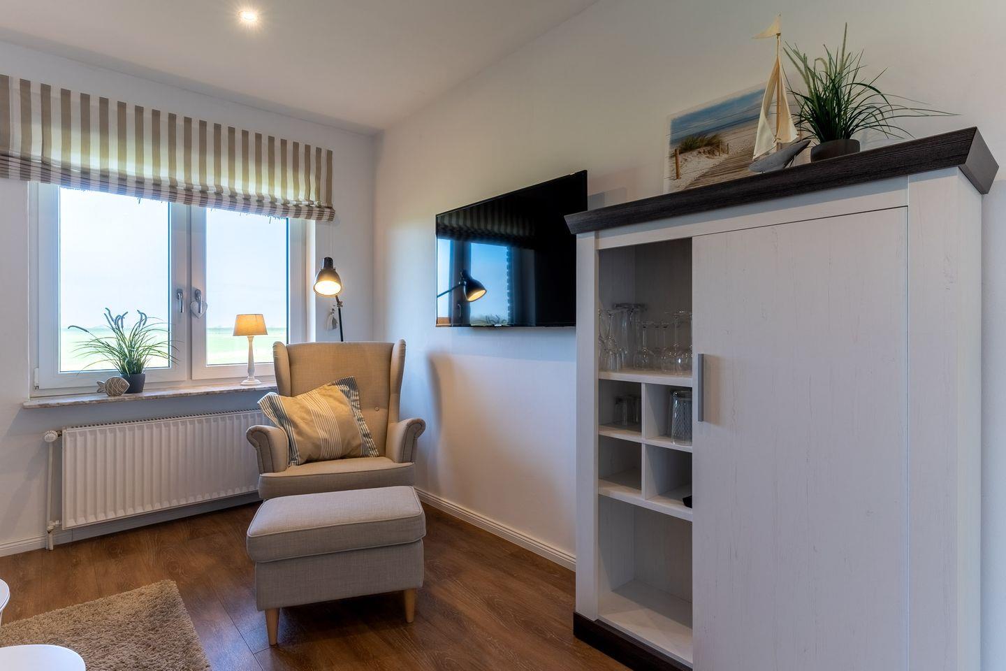 Die moderne 2-Zimmer Dachgeschoss-Ferienwohnung im Tümlauer-Koog ist ein perfektes Zuhause für Ihren nächsten Urlaub. Mit einem offenen Wohn-Essbereich und einem Balkon, der einen atemberaubenden Blick auf die Umgebung bietet, wird diese Wohnung Sie in jeder Hinsicht begeistern.