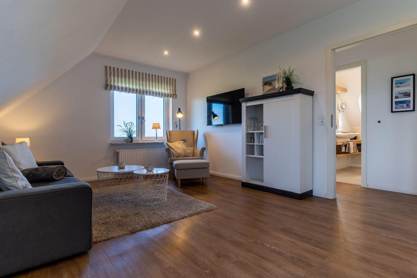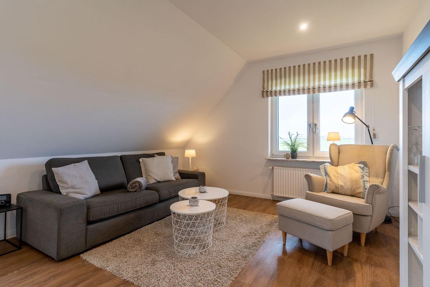 Wenn Sie nach einer modernen und stilvollen Ferienwohnung in einer atemberaubenden Umgebung suchen, dann ist die 2-Zimmer Dachgeschoss-Ferienwohnung im Tümlauer-Koog die perfekte Wahl für Sie.