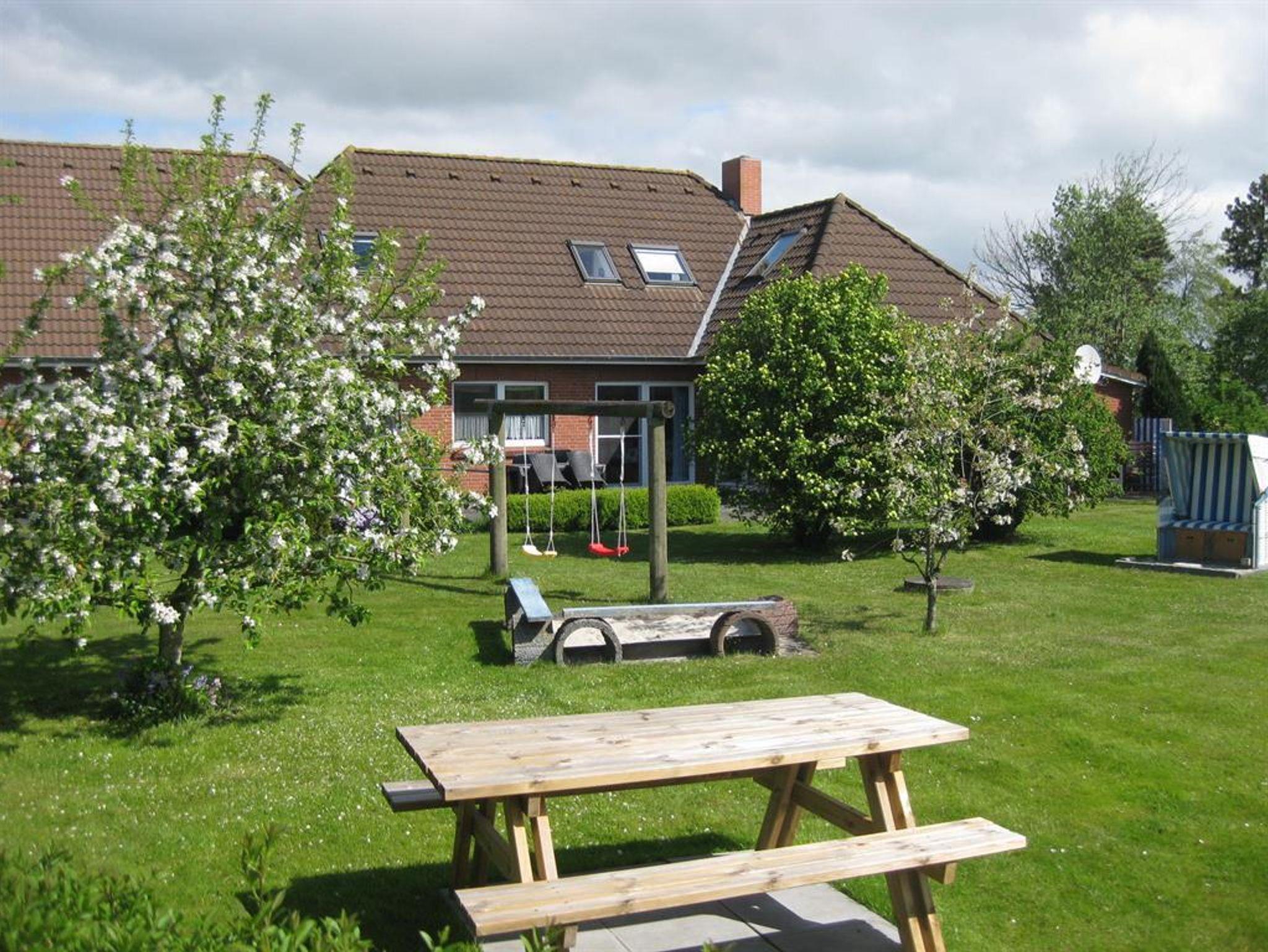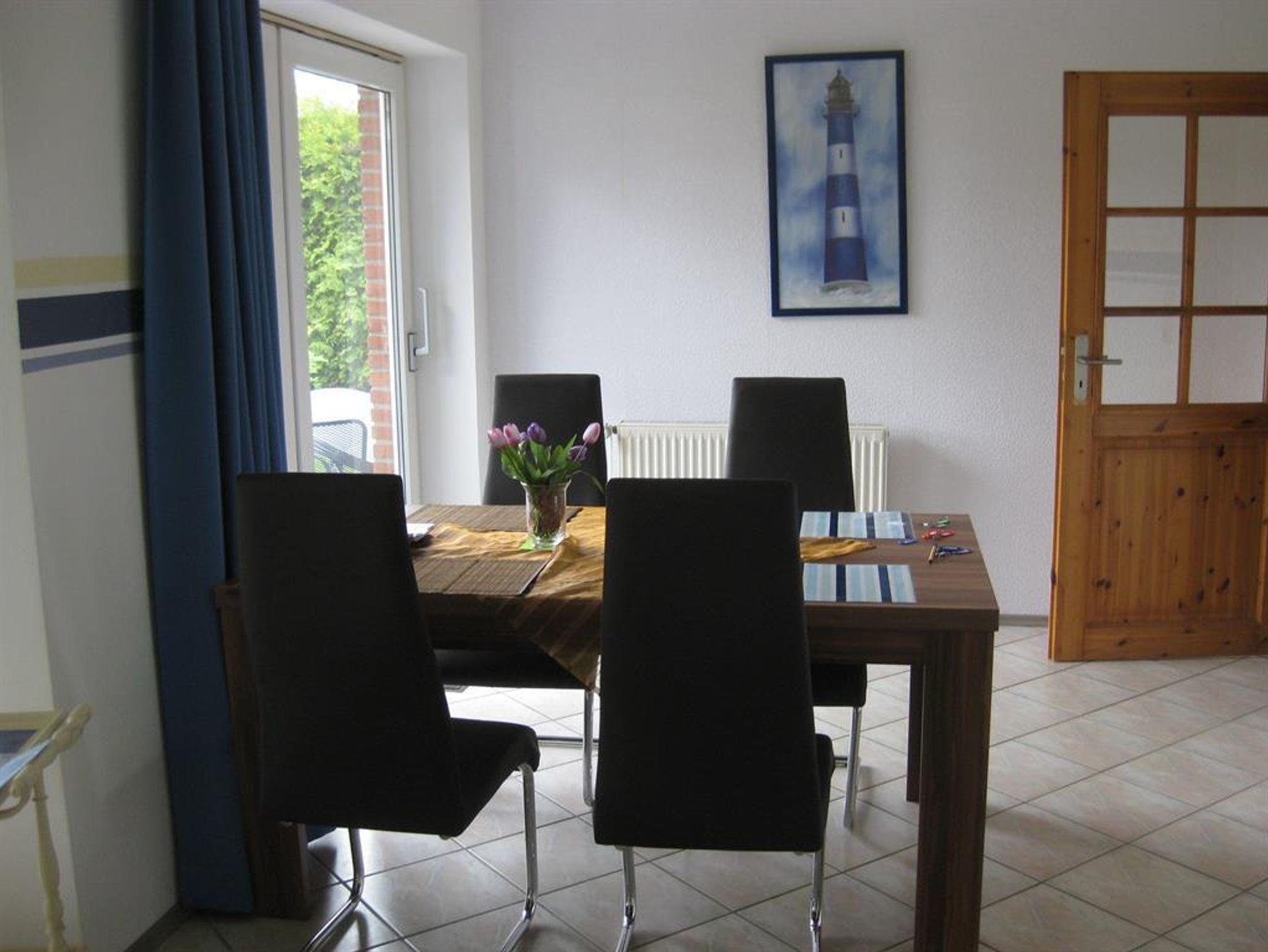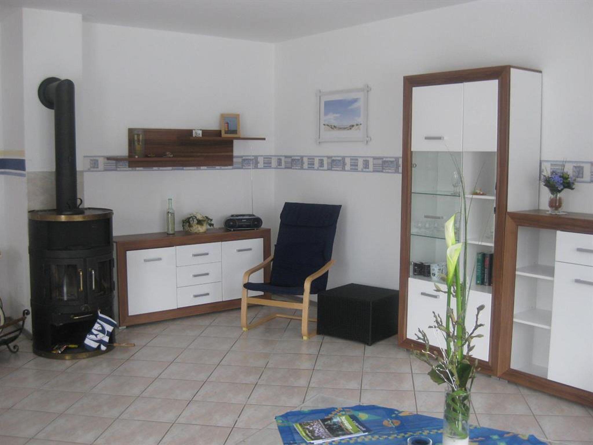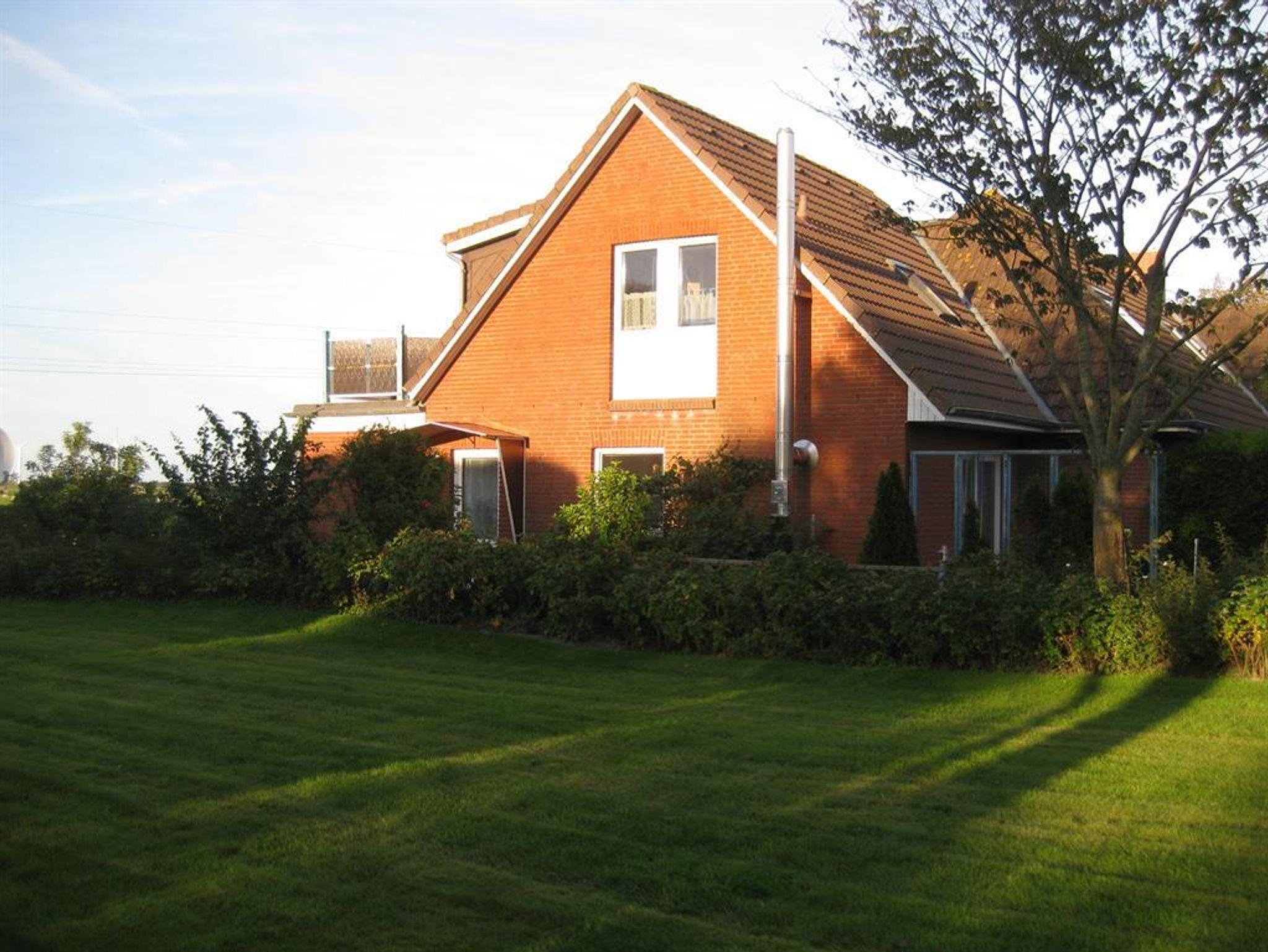 Gemütliche Ferienwohnung in Tating mit Terrasse, Kamin und Blick auf den Westerhever Leuchtturm für erholsame Tage.