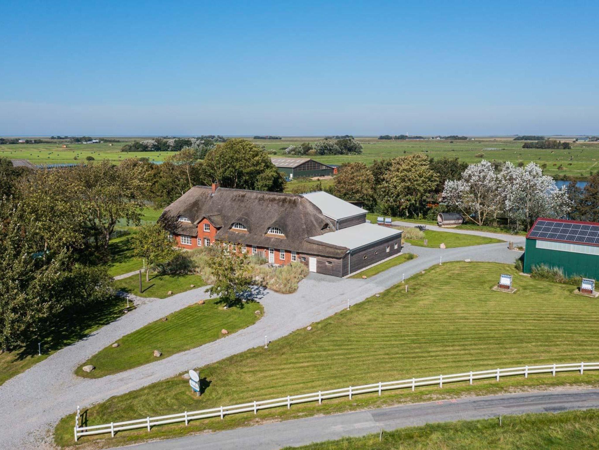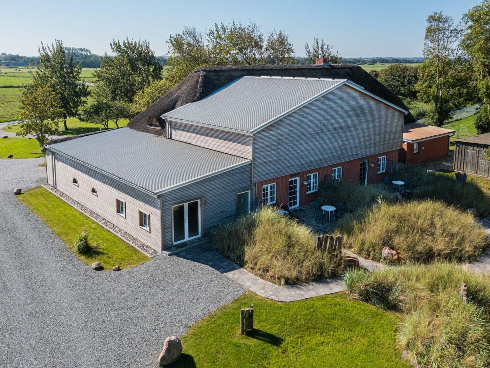 Großzügige Ferienhausanlage mit Reetdach nahe St. Peter-Ording, ideal für Familien, Yoga-Retreats und Tagungen.
