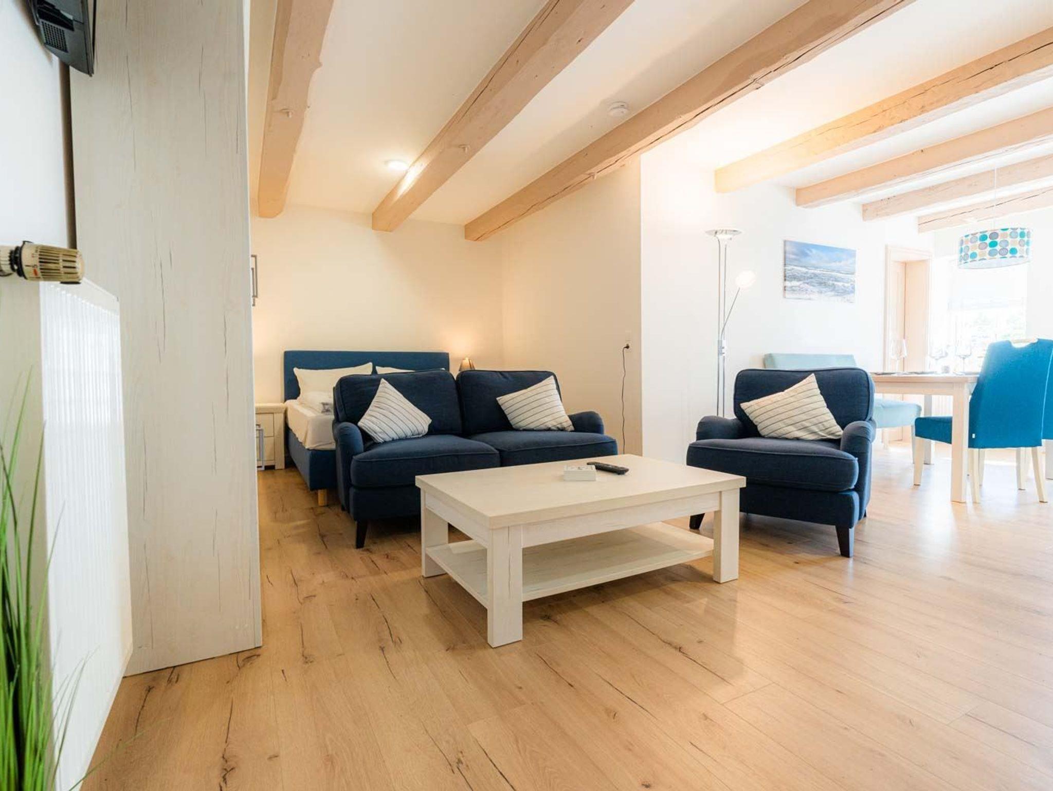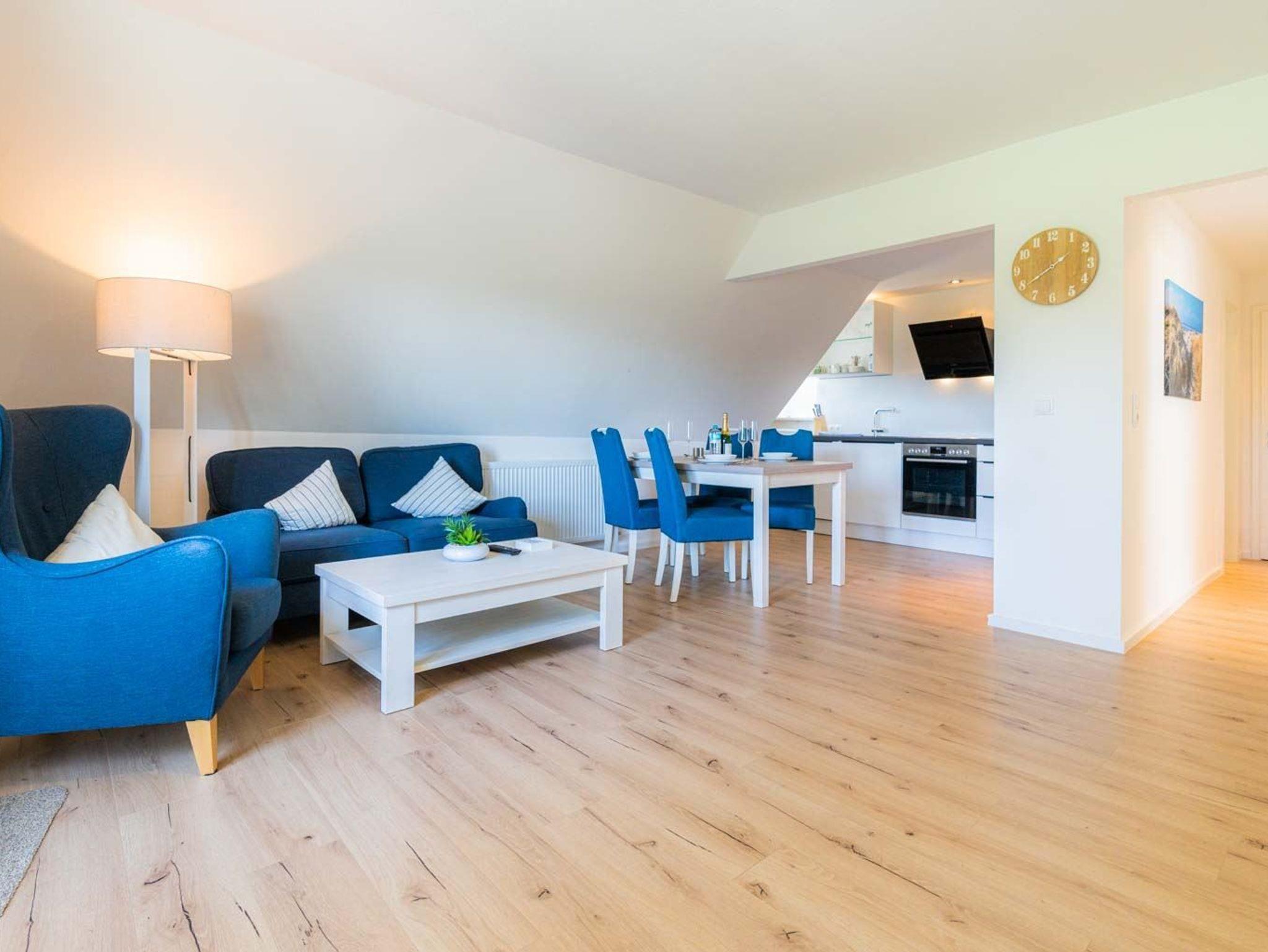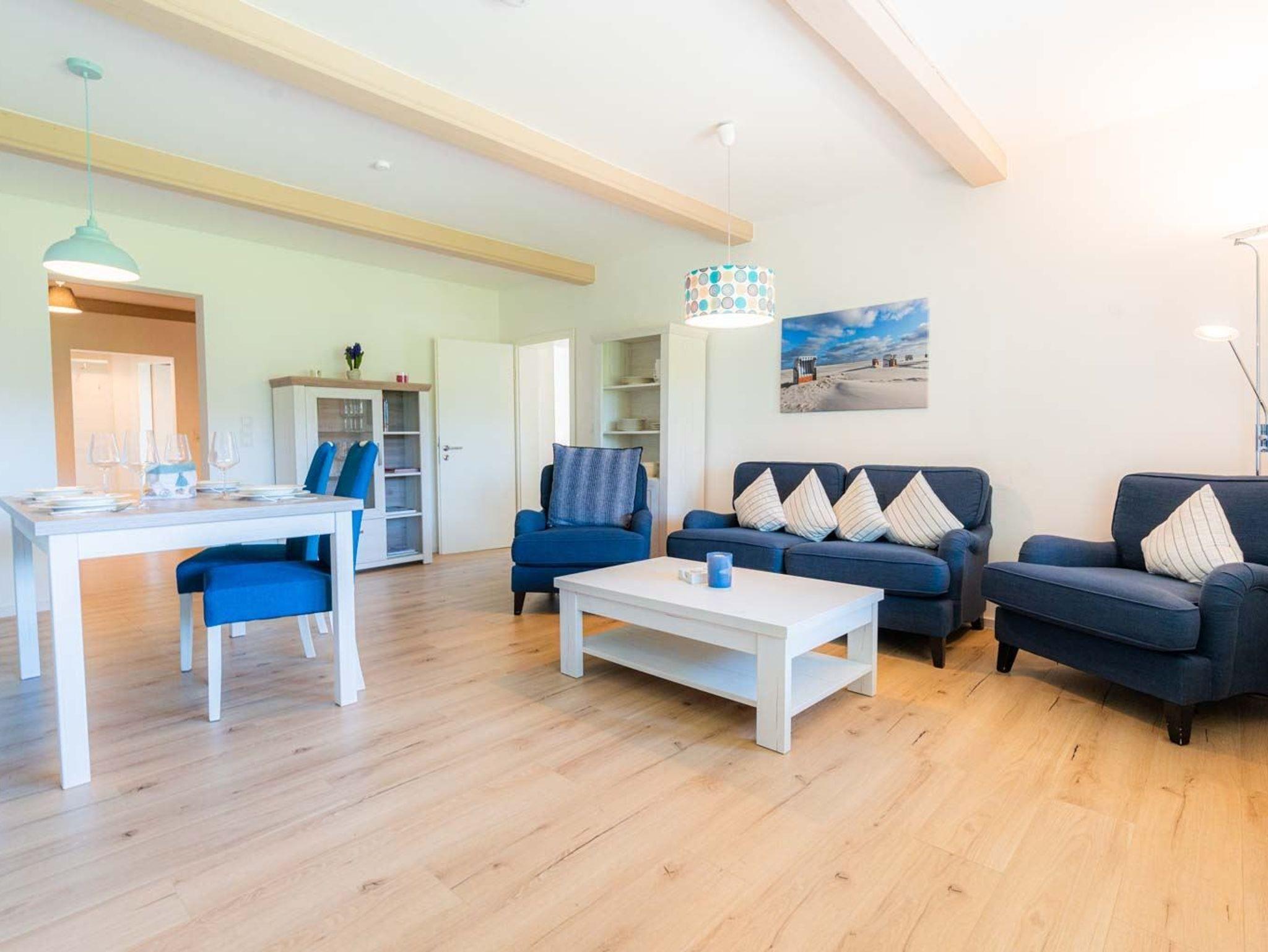 Jede Wohnung verfügt über ein eigenes Wohnzimmer und eine Küche. Insgesamt stehen neun Schlafzimmer und sieben Badezimmer zur Verfügung. Jede Wohnung besitzt eine Terrasse, Sonnenfreisitz oder einen Balkon. Strandkörbe sind vorhanden.