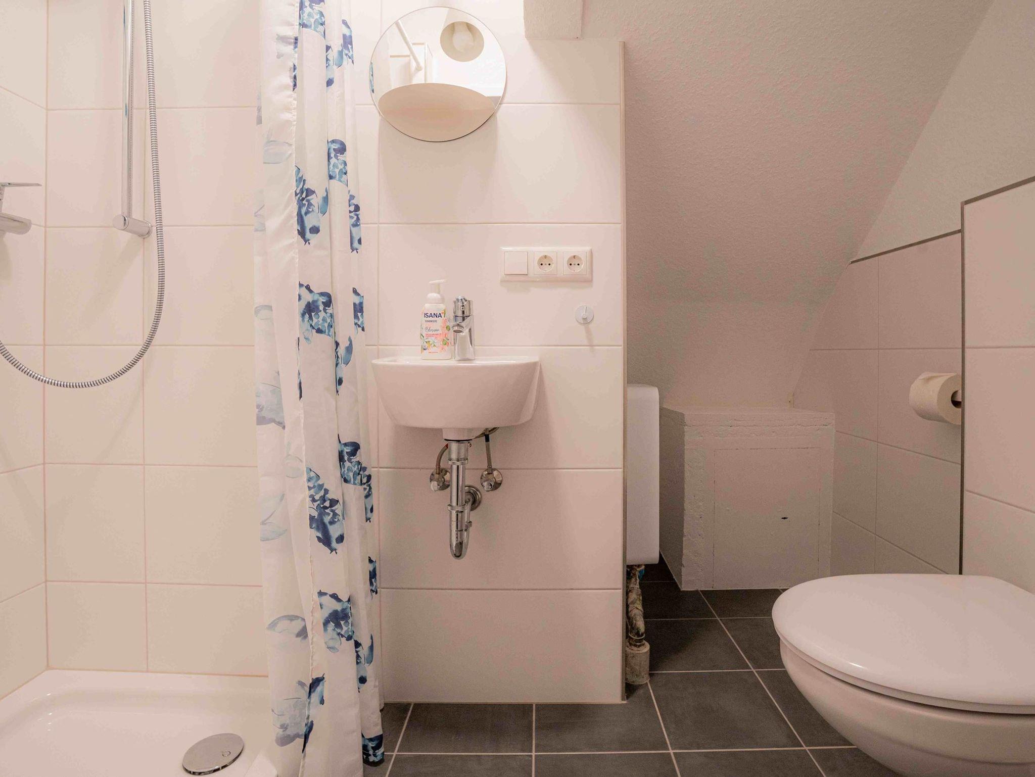 2. Badezimmer (Duschbad) mit Dusche, WC, Handtuchwärmer und elektrischer Lüftung.