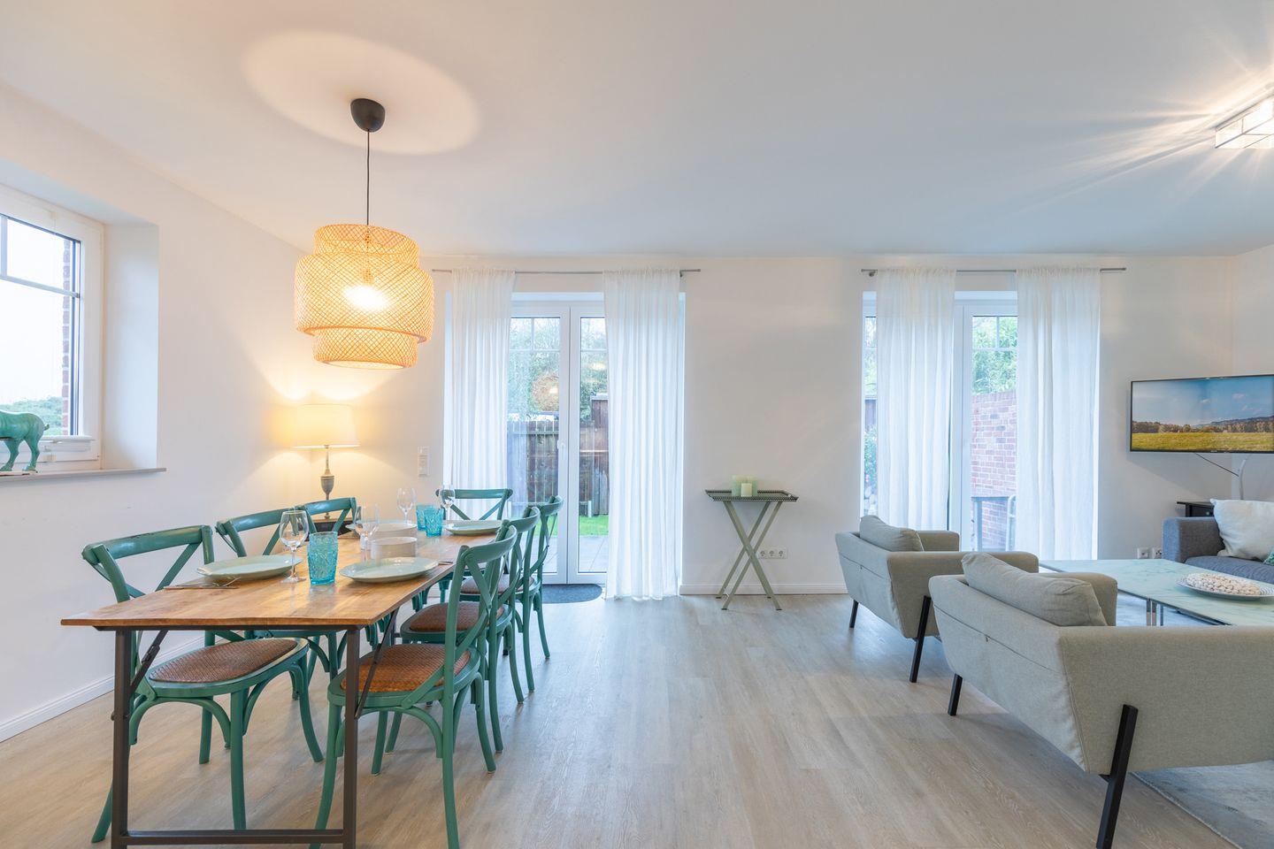 Gemütliche Doppelhaushälfte in Tating mit Garten, Terrasse und moderner Ausstattung für entspannte Familienurlaube.