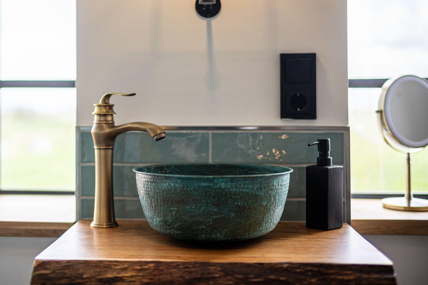 Die sorgfältig ausgewählten Möbel und Accessoires im offenen Wohnbereich im Erdgeschoss sowie im Schlafbereich mit eigenem Bad im Obergeschoss lassen keine Wünsche offen. Ankommend können Sie sich sofort wohl fühlen und entspannen, sei es auf der Terrasse oder in der einzigartigen Umgebung von Eiderstedt.
