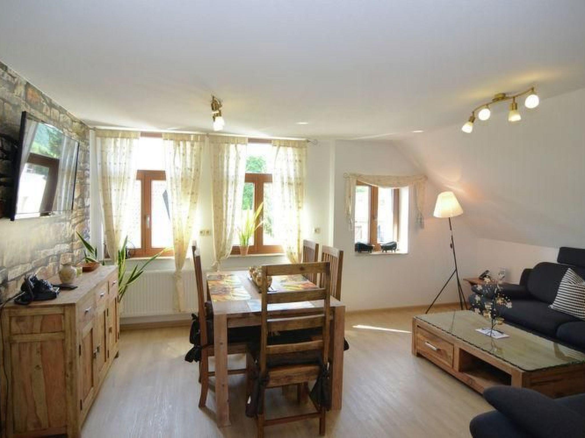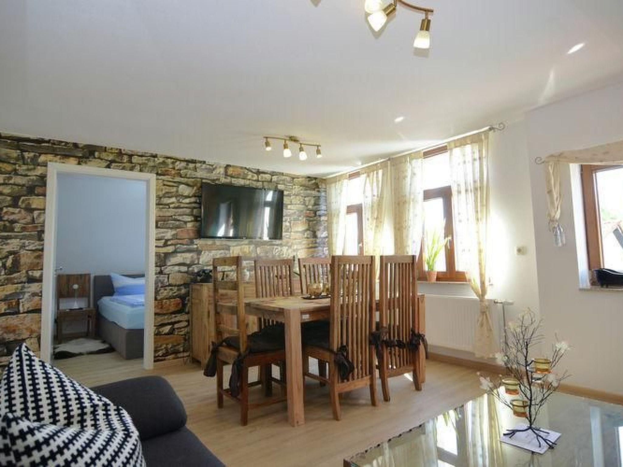 Völlig neu saniertes luxoriöses Ferienhaus für maximal 12 Personen zentral gelegen in Thale 10 Minuten vom Bodetal und Seilbahn entfernt. In der 1.Etage befindet sich ein Wohnzimmer mit mod. integrierter Küche, Geschirrspüler und einen großen 46"LED-TV, zwei Schlafzimmer mit neuen großen Boxspringbetten und je einem zusätzl. 32"LED-TV und ein schönes Bad mit Dusche & WC. Die 2.Etage überrascht sie mit einen riesigen Ecksitzsofa und einen 46"LED-TV an einer Steinwand in dem Wohnzimmer mit Blick aus dem Fenster auf den Hexentanzplatz & der Roßtrappe. Eine moderne Küche mit allem was man braucht incl. einen Geschirrspüler. Weiterhin sind zwei Schlafzimmer mit je einem großen Boxspringbett & zusätzl. 32"LED-TV vorhanden.Das neue Bad hat eine große Dusche und ein WC. W-LAN im gesamten Haus kann kostenlos genutzt werden.Das Objekt verfügt über einen großen gemütlichen Innenhof mit überdachter Sitzfläche, hat moderne Sitzmöbel und lädt zum Grillen ein. Parkmöglichkeiten sind kostenlos vor dem Haus.Alle Sehenswürdigkeiten, Gaststätten und Einkaufsmöglichkeiten in Thale sind bequem zu Fuß zu erreichen.Haustiere auf Anfrage gern möglich.