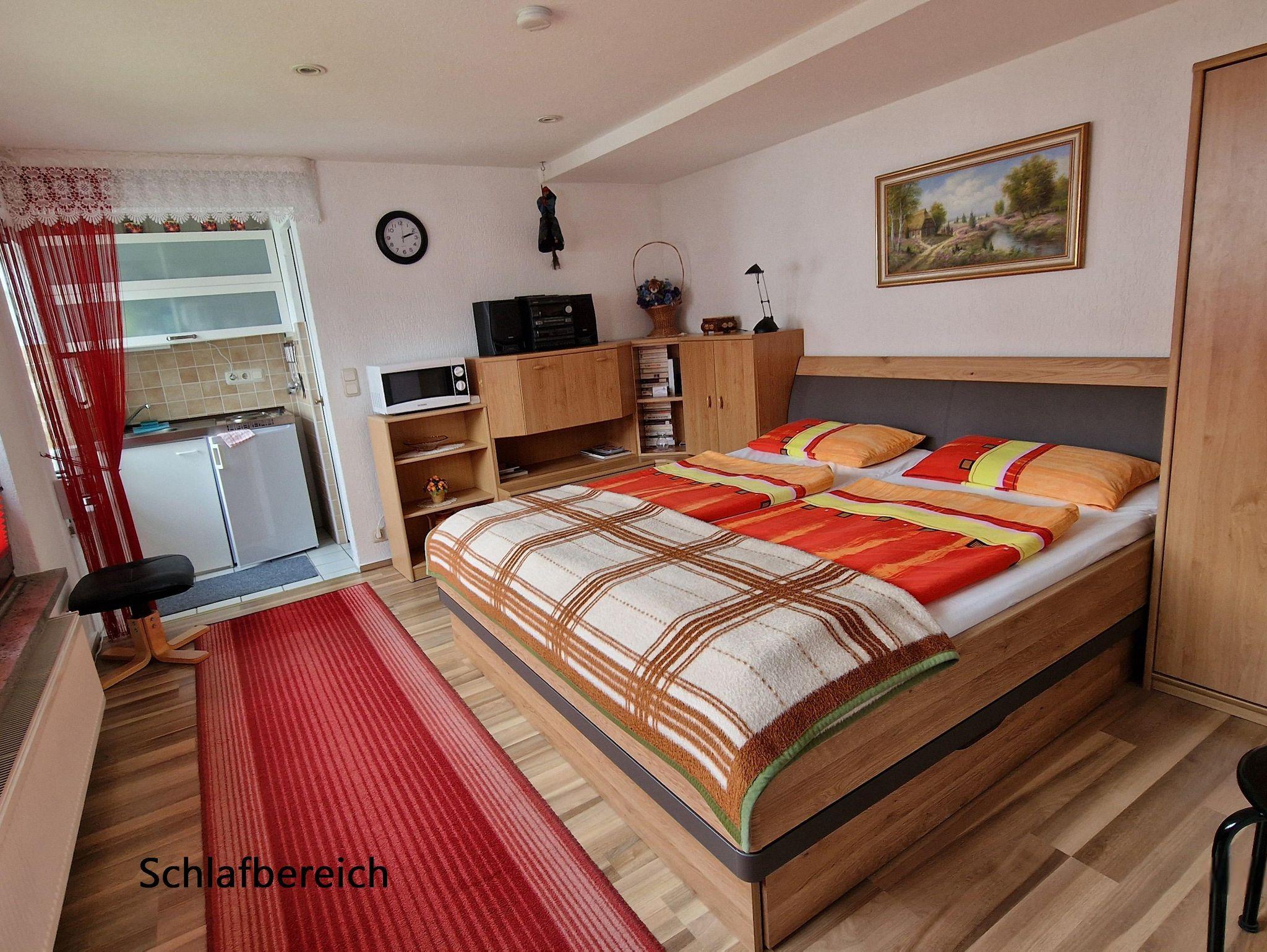 Ferienhaus in ruhiger zentraler Lage mit Kaminzimmer, Wohnschlafzimmer, Miniküche und Bad. Aufbettung möglich.