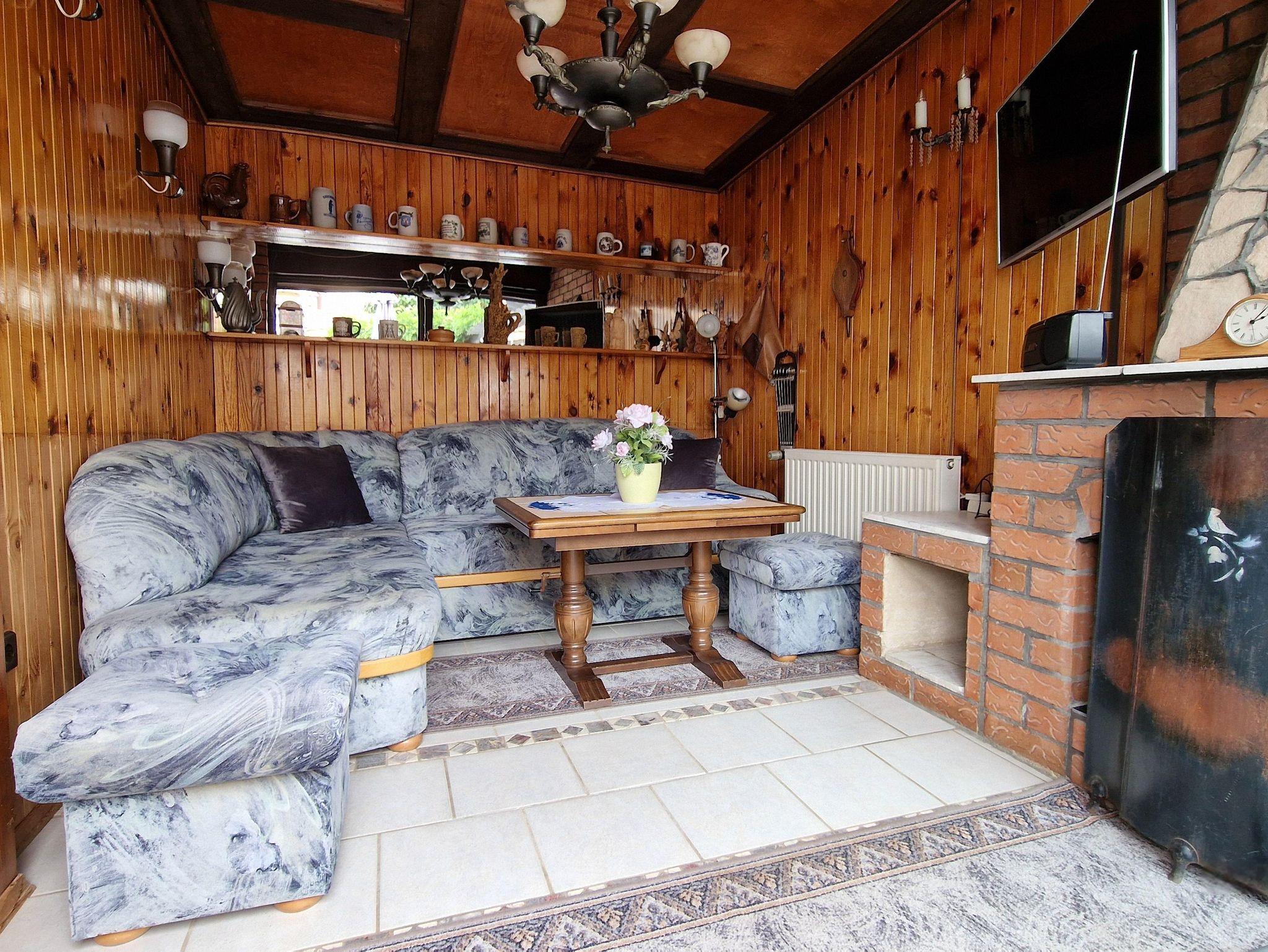 Ferienhaus zu ebener Erde mit Kaminzimmer, TV, Wohnschlafzimmer, Miniküche, Bad.