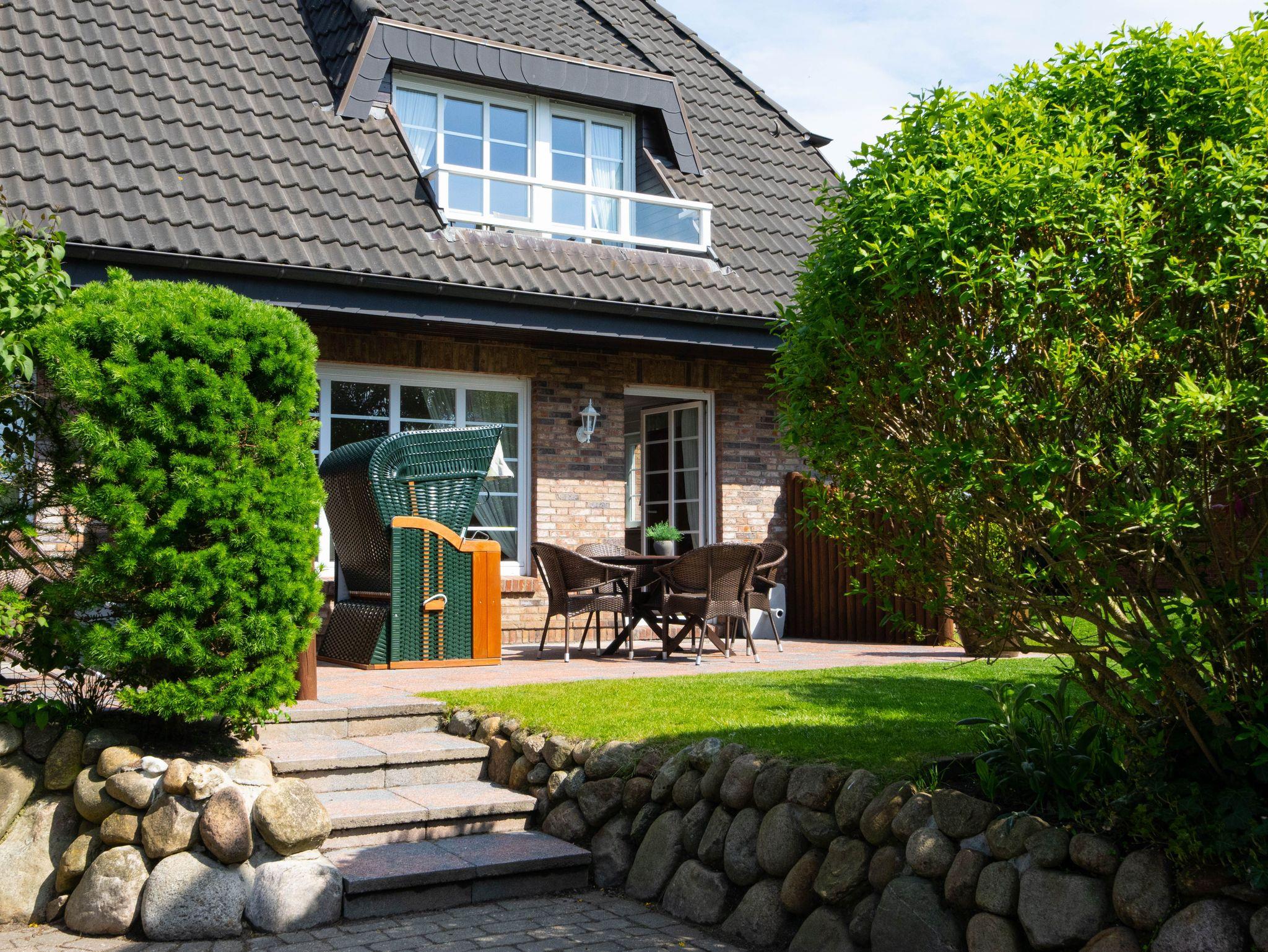 Modernes 3-Zimmer-Landhaus mit Terrasse und Strandkorb in ruhiger Lage auf Sylt.