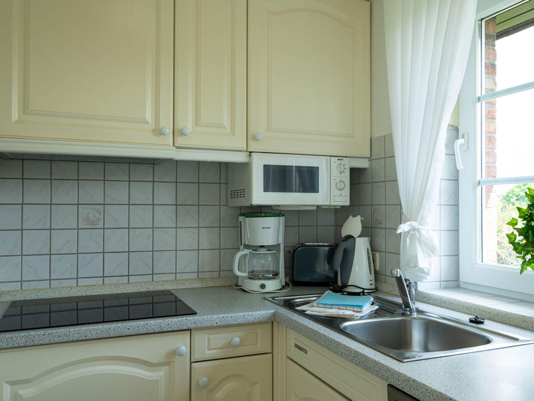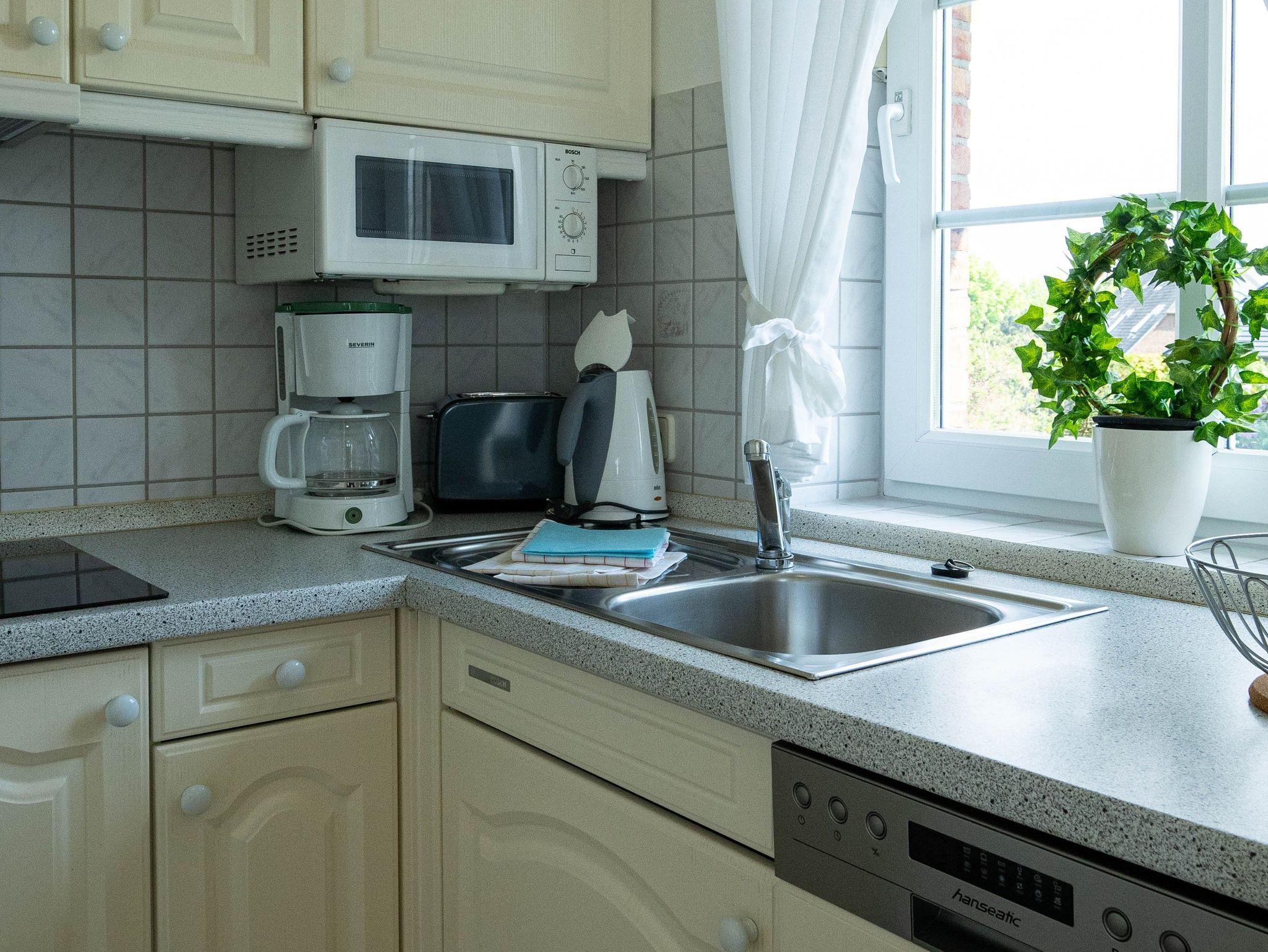 ausgestattet mit 4-Plattencerankochfeld, Mikrowelle, Geschirrspüler,