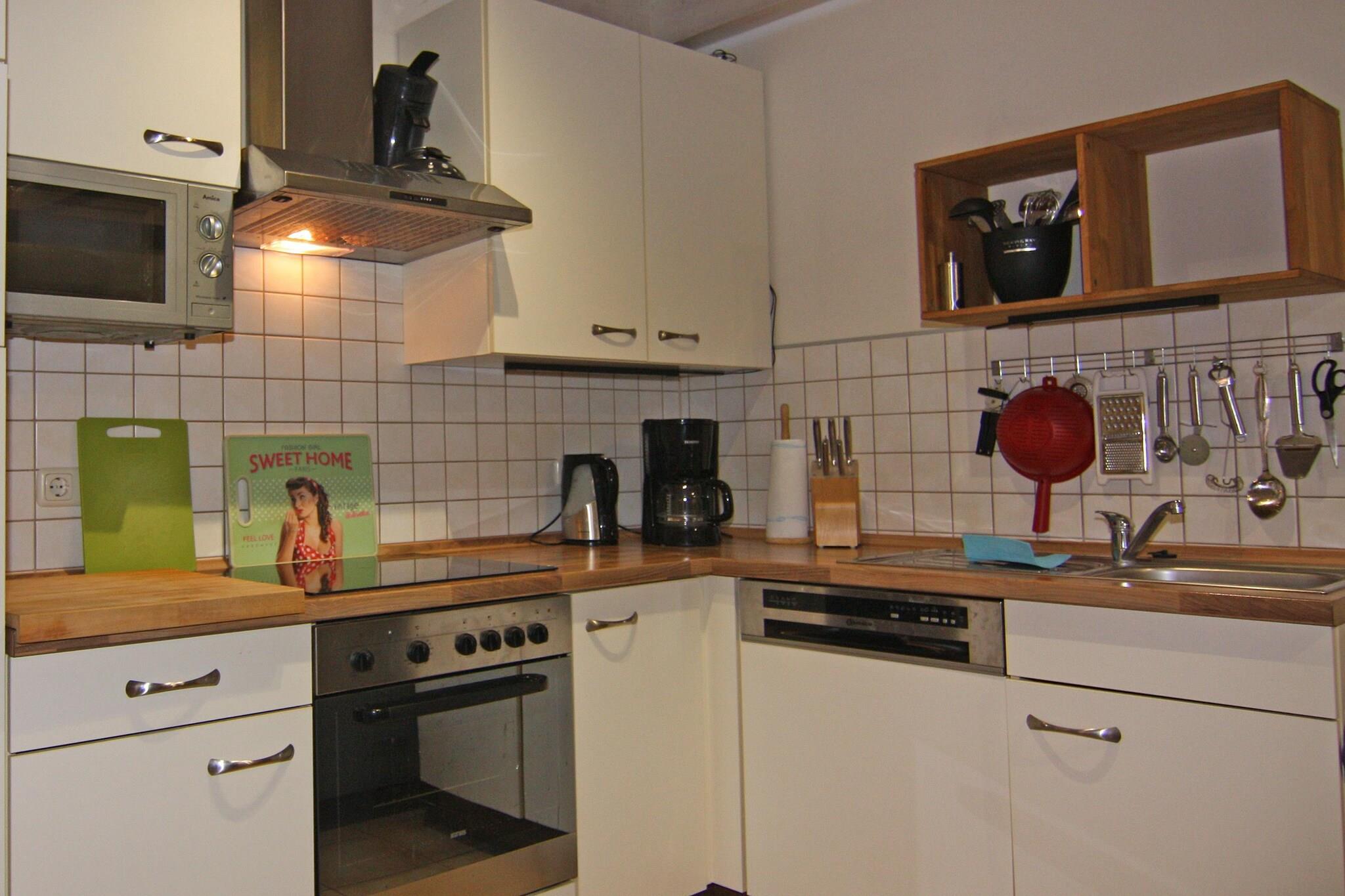 Parterre: (offene Küche(Esstisch(6 Personen), Wasserkocher, Toaster, Kochherd(4 Kochplatten, Ceranfeld), Dunstabzugshaube, Kaffeemaschine, Backofen, Mikrowelle, Spülmaschine, Kühlschrank(+ Gefrierfach)), Wohn/Esszimmer(TV(Satellit), Radio, CD-Spieler, Heizung(elektrisch), Heizung(Fußbodenheizung)), Schlafzimmer(Doppelbett), Badezimmer(Dusche(ebenerdige Dusche), Waschbecken, Toilette, Waschmaschine), Flur) In der 1. Etage: (Schlafzimmer(Doppelbett), Schlafzimmer(Einzelbett, Einzelbett), Badezimmer(Dusche, Sauna(alleinige Nutzung), Waschbecken, Toilette), Flur) Balkon, Balkon, Terrasse, Gartenmöbel, Parkplatz, Parkplatz, Hochstuhl, Babybett (kostenpflichtig), Handtücher/Bettwäsche (extra Gebühr)