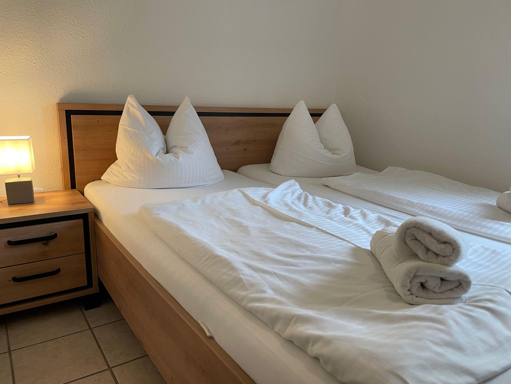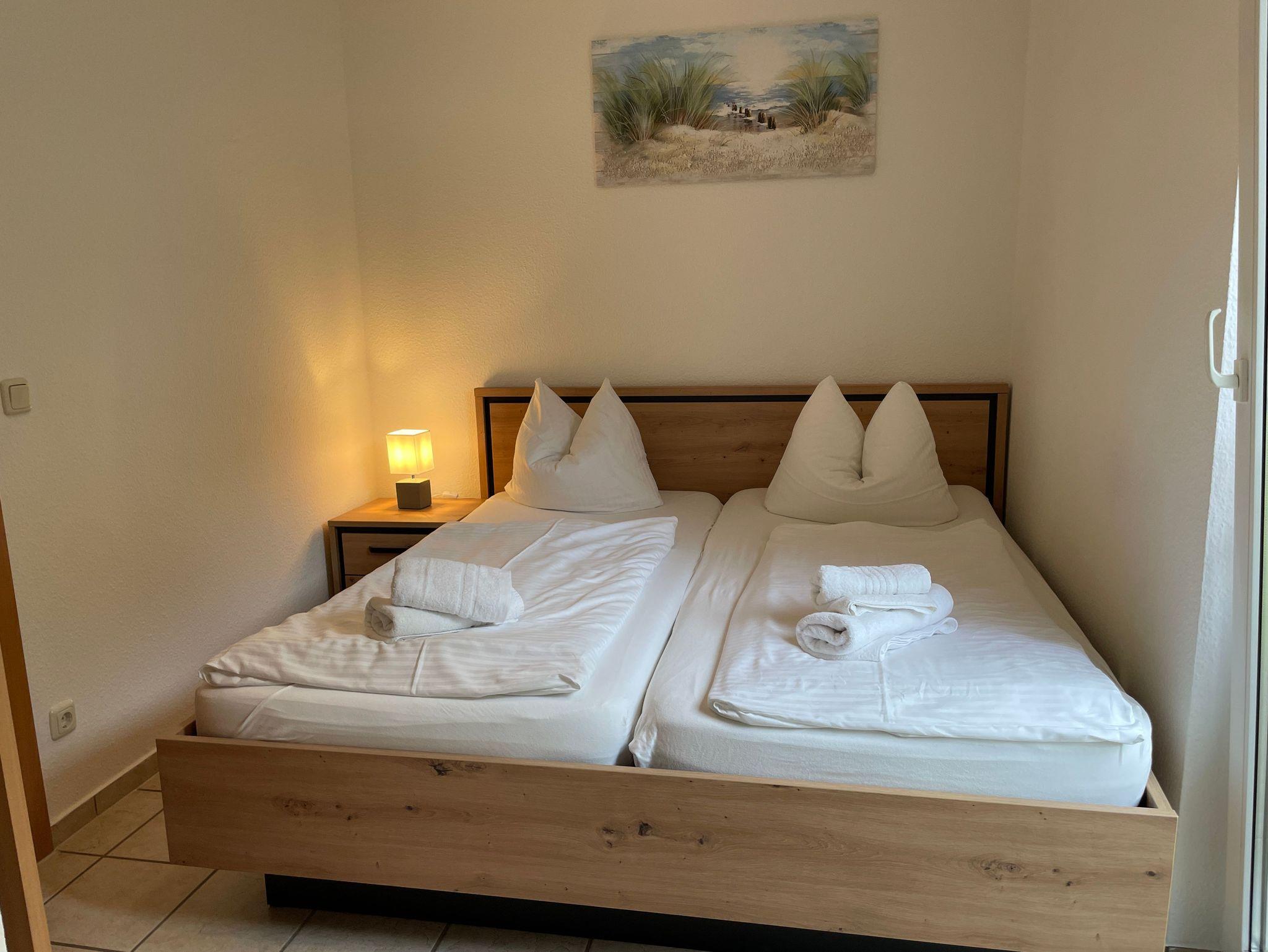 Die Ferienwohnung 1 befindet sich im Erdgeschoss links (Nordseite), wo man die Sonne am Abend auf der Terasse genießen kann. Es ist 1 Wohnzimmer mit Küche, 2 Schlafzimmer mit je (1 Doppelbett, 2 Einzelbetten) 1 DU/WC in der Wohnung , der PKW-Stellplatz und die Fahrradabstellmöglichkeiten sind genau vor dem Haus. Die Wohnung ist für maximal 4 Personen ( plus Babybett )geeignet.