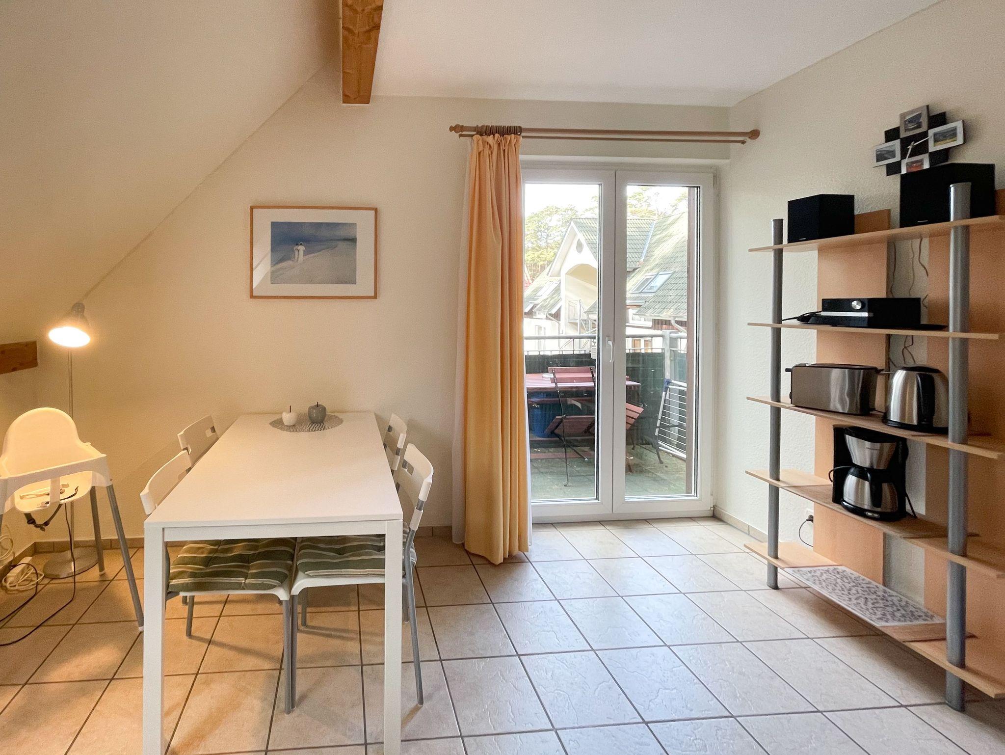 Familienfreundliche Ferienwohnung in Trassenheide, 300 m vom Strand, mit Balkon und Blick auf den Küstenwald.