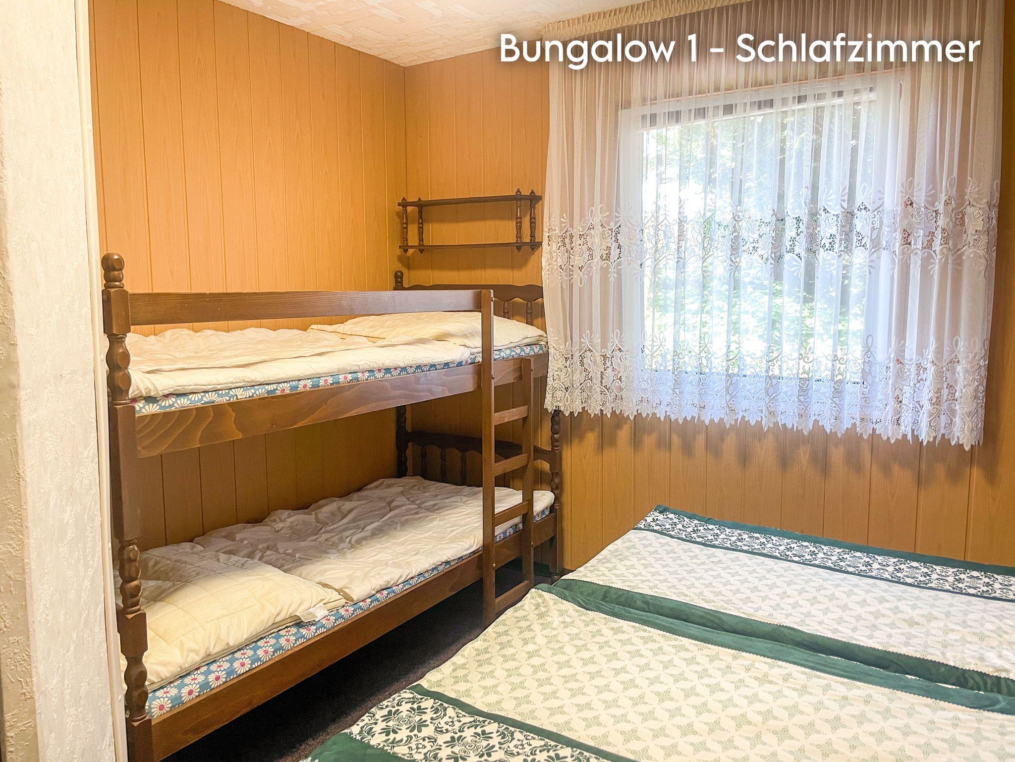 Der gemütliche Bungalow ist für bis zu 2 Erwachsene und 2 Kinder bis maximal 17 Jahre geeignet. Er verfügt über einen Wohnraum mit FLAT-TV und einer offenen Küchenzeile mit 2-Plattenherd, Kühlschrank mit Gefrierfach, Kaffeemaschine und Wasserkocher. Das separate Schlafzimmer ist mit einem Doppelbett und einem Etagenbett ausgestattet. Das Badezimmer verfügt über Dusche /WC. Vor dem Bungalow befindet sich eine möblierte Terrasse.