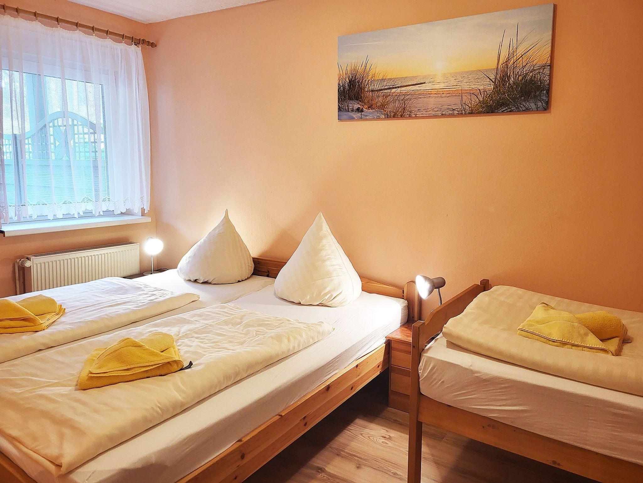 2 Raum-Wohng., 1 SZ mit 1 DB und 1 EB, Küche, Wohnzimmer, Bad mit Dusche/WC, Flur, Terrasse, Frühstücksbüfett mit Voranmeldung möglich und auch Abendessen à la carte. Haustiere nur auf Anfrage!