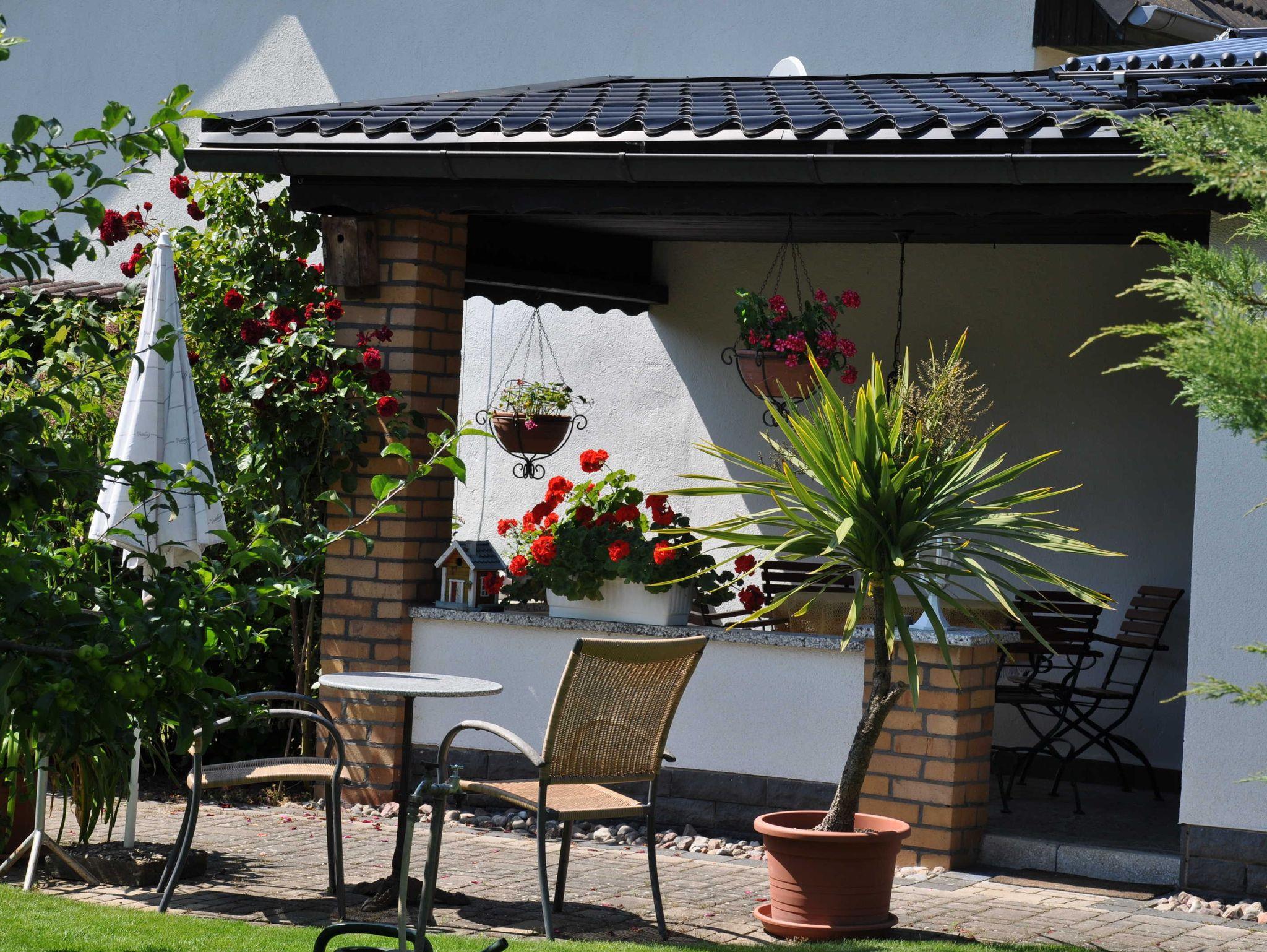 Zu den Wohnungen gehört jeweils eine gemütliche Sitzecke mit Grillmöglichkeit.
