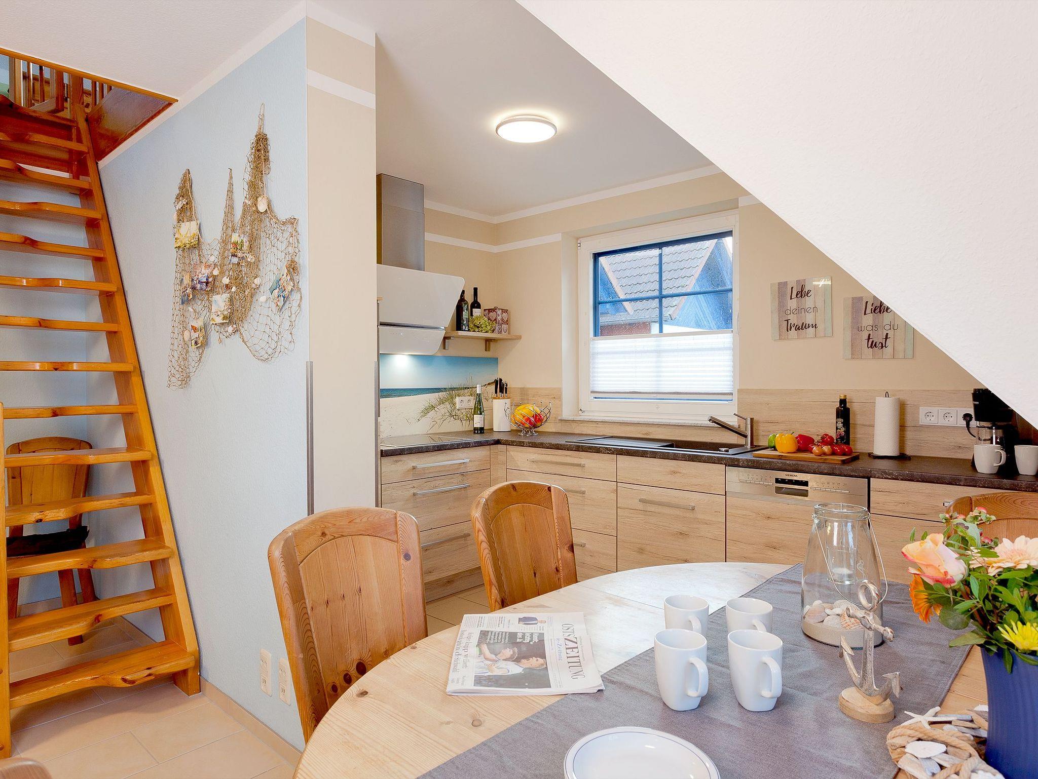 • Küchenzeile: Herd, Backofen, Kühlschrank mit Tiefkühlfach, Geschirrspülmaschine, Kaffeemaschine, Toaster, Wasserkocher
