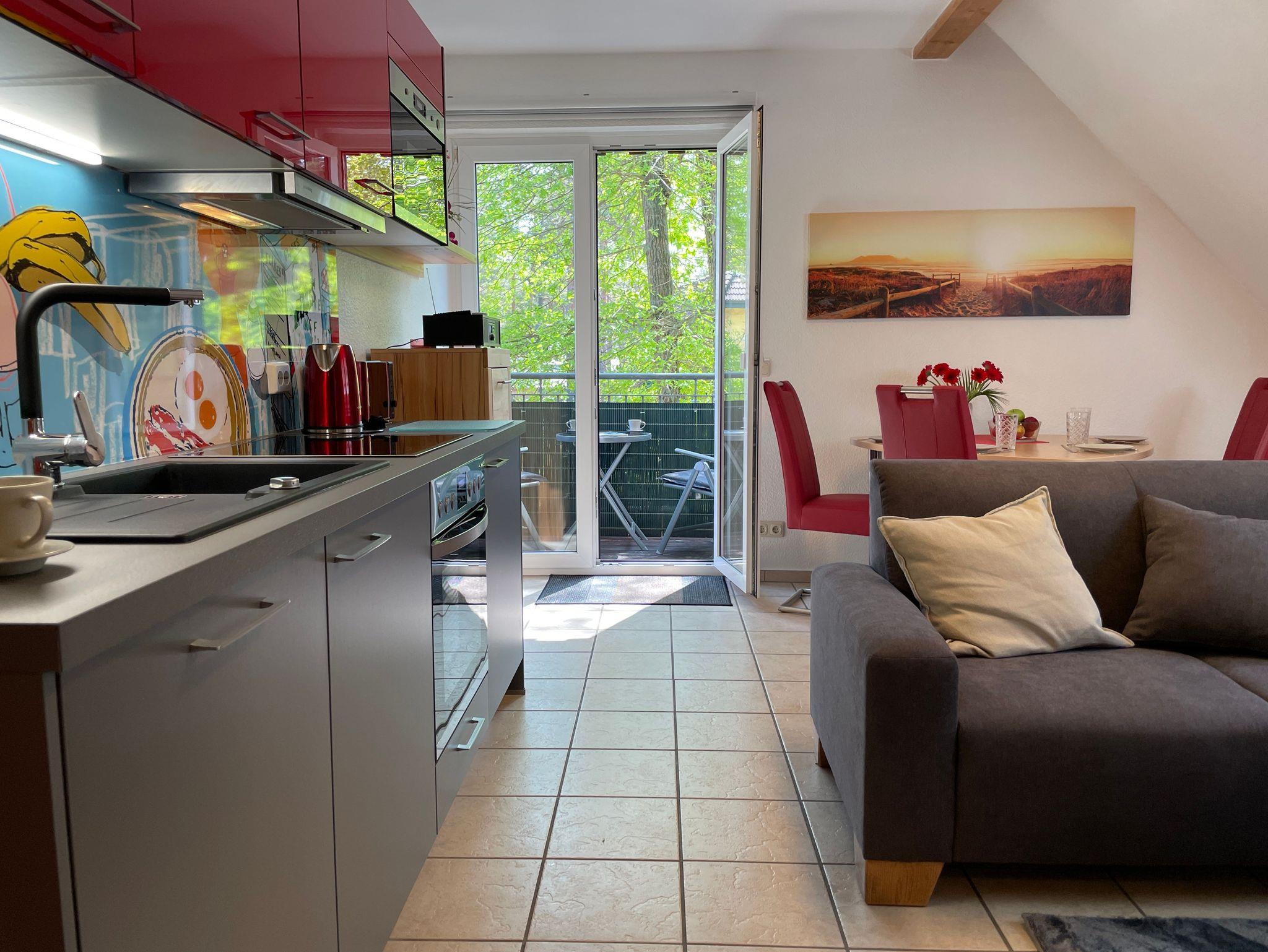 Die Ferienwohnung 4 befindet sich im 1. Stock rechts (Ostseite), wo man die Sonne am Vormittag auf dem Balkon genießen kann. Es gibt einen seperaten Zugang zur Wohnung mit Außentreppe. Das gemütliche Wohnzimmer ist mit einem Essbereich für 4 Personen und einer modernen Küche ausgestattet. Die 2 Schlafzimmer sind mit je einem Doppelbett und 2 Einzelbetten liebevoll eingerichtet. Im Bad befinden sich Dusche und WC. Der PKW-Stellplatz befindet sich direkt am Haus.