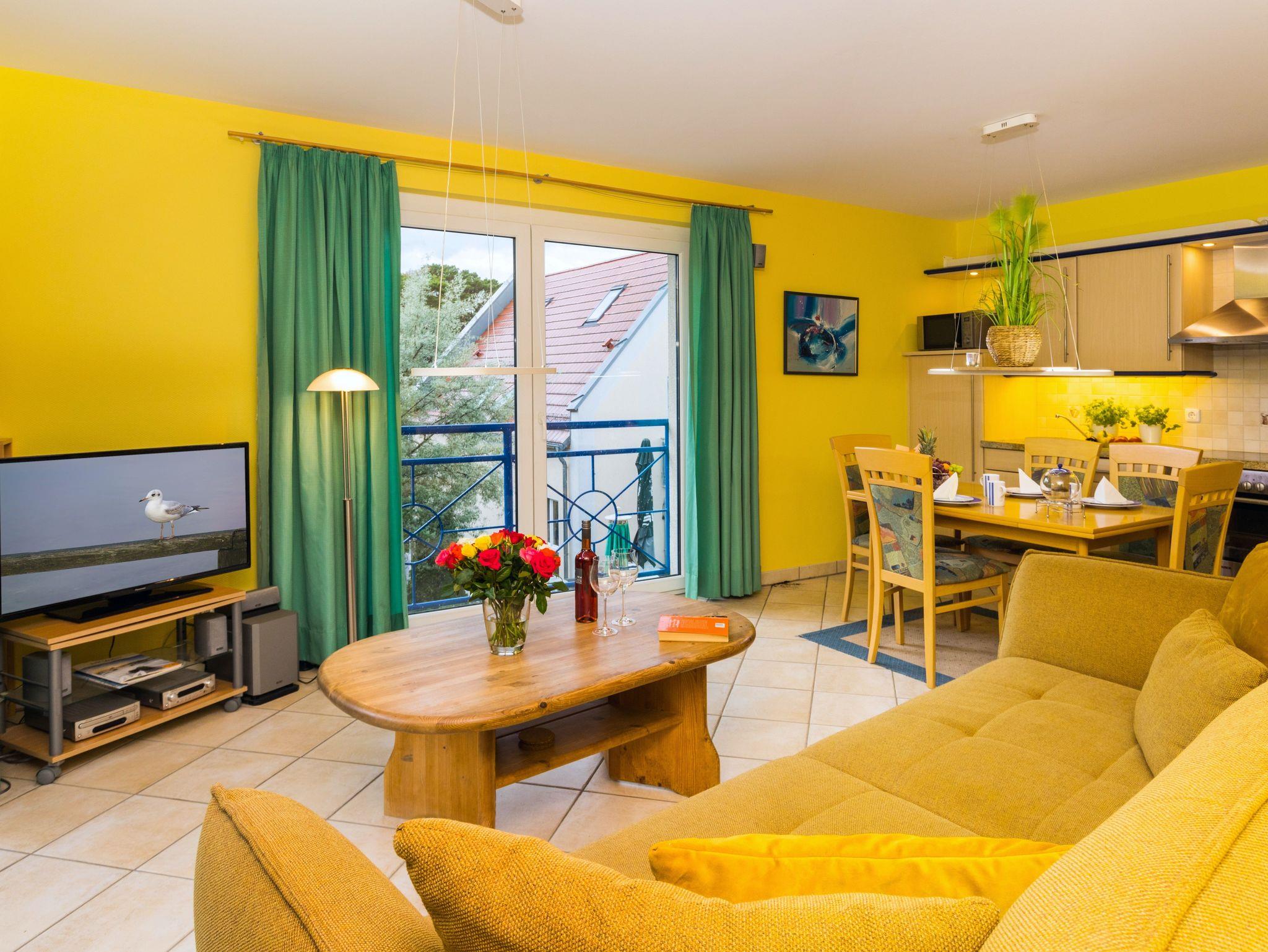 Moderne Ferienwohnung mit Balkon und Meerblick, nur 1 Minute vom Strand in Trassenheide entfernt.