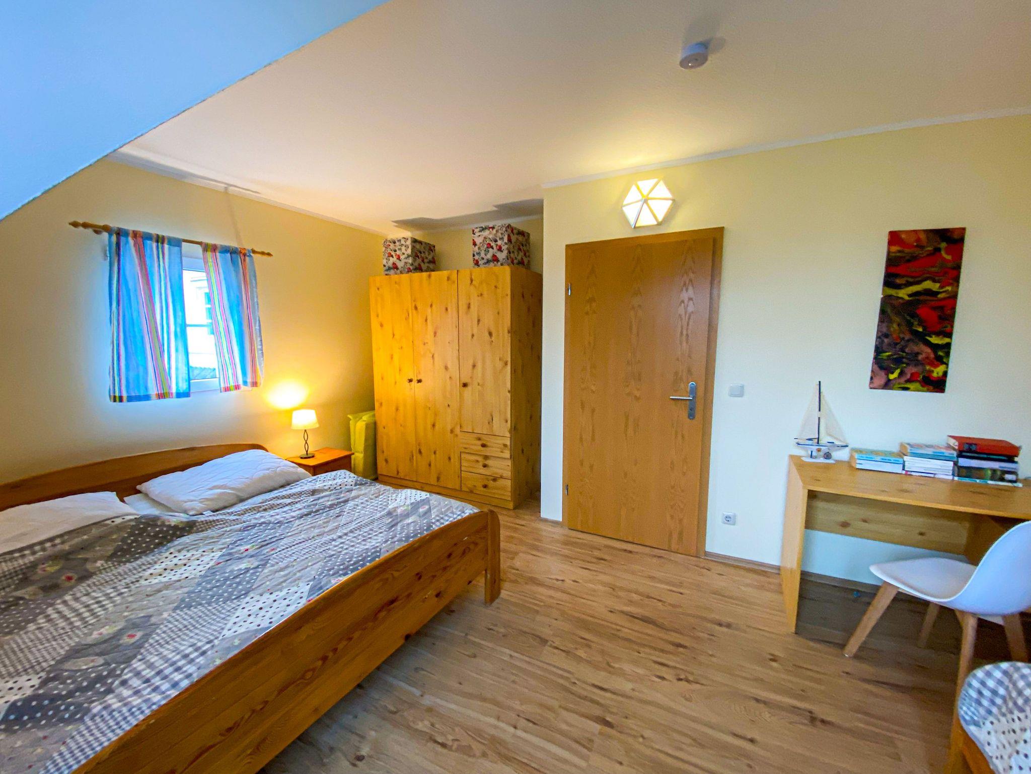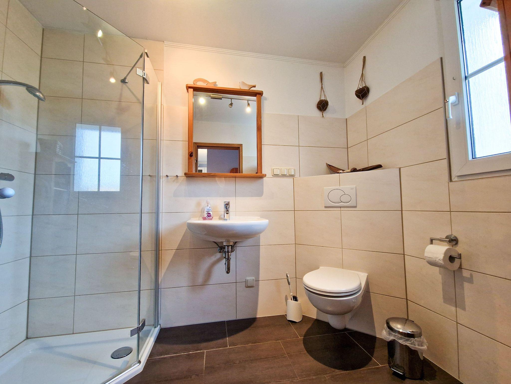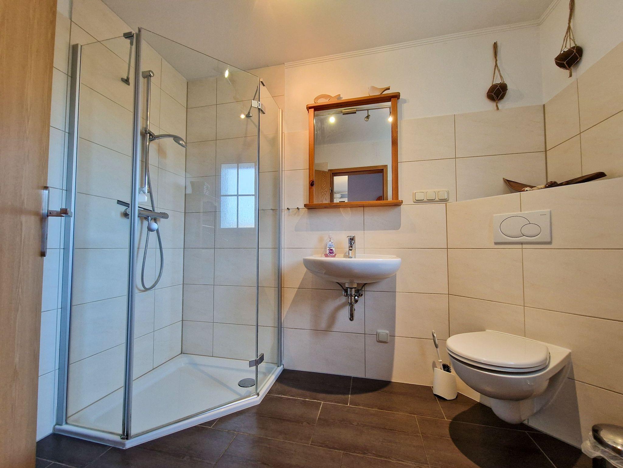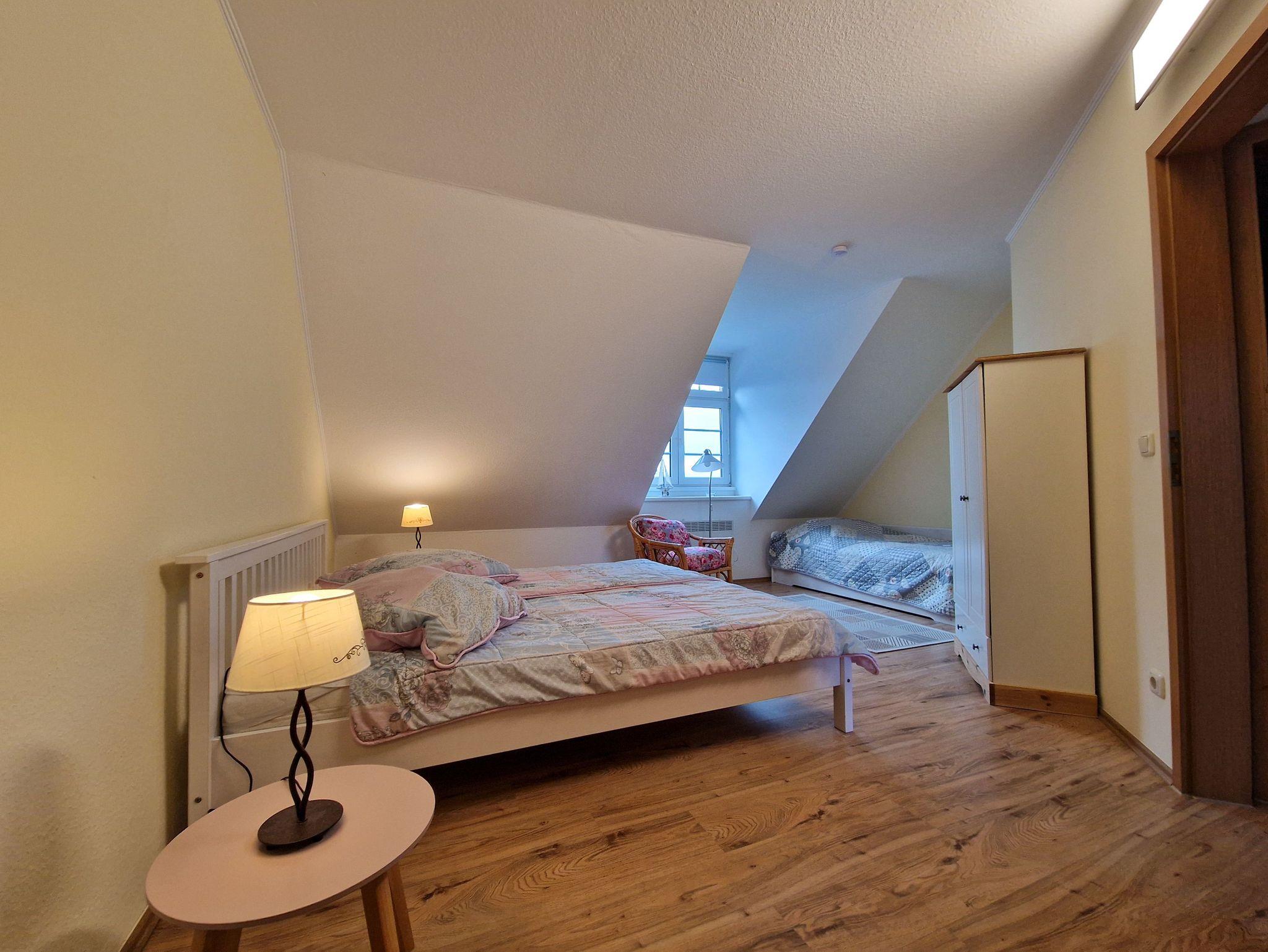 In der oberen Etage stehen Ihnen zwei Schlafzimmer mit jeweils einem Ehebett und einem Einzelbett zu Verfügung. Auch im OG steht Ihnen ein Badezimmer zur Verfügung.
