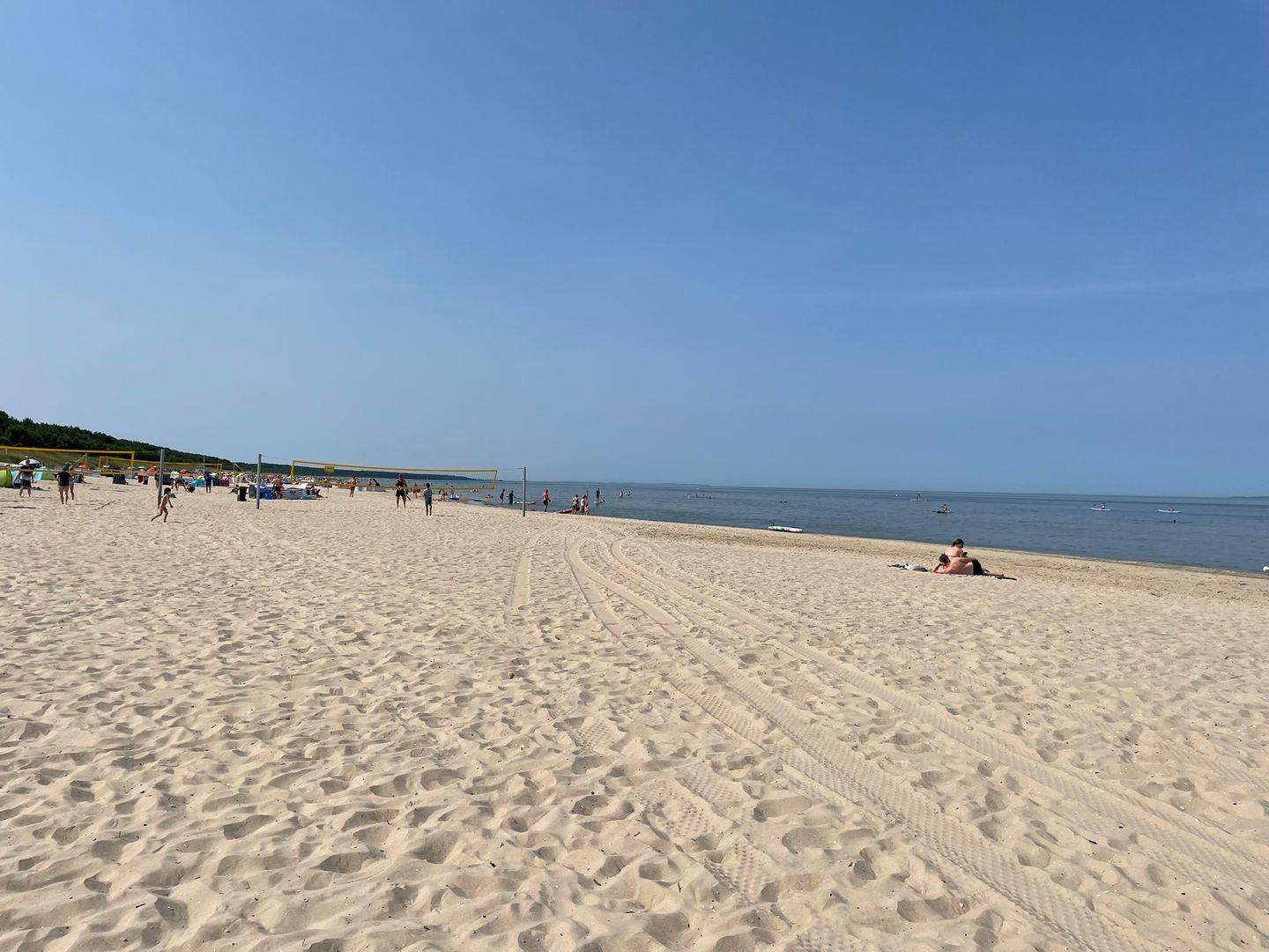 Und das Auto? Das bleibt draußen. Ein Parkplatz steht außerhalb der Anlage bereit. Drinnen sind die Wege kurz, die Kinder laufen sicher, die Eltern atmen durch. Drei Minuten zu Fuß – schon liegt der Strand vor Ihnen: feinsandig, breit, einladend. Links die Surfschule, rechts das Beachvolleyballfeld, ein Stück weiter der FKK-Bereich. So fühlt sich Freiheit an.