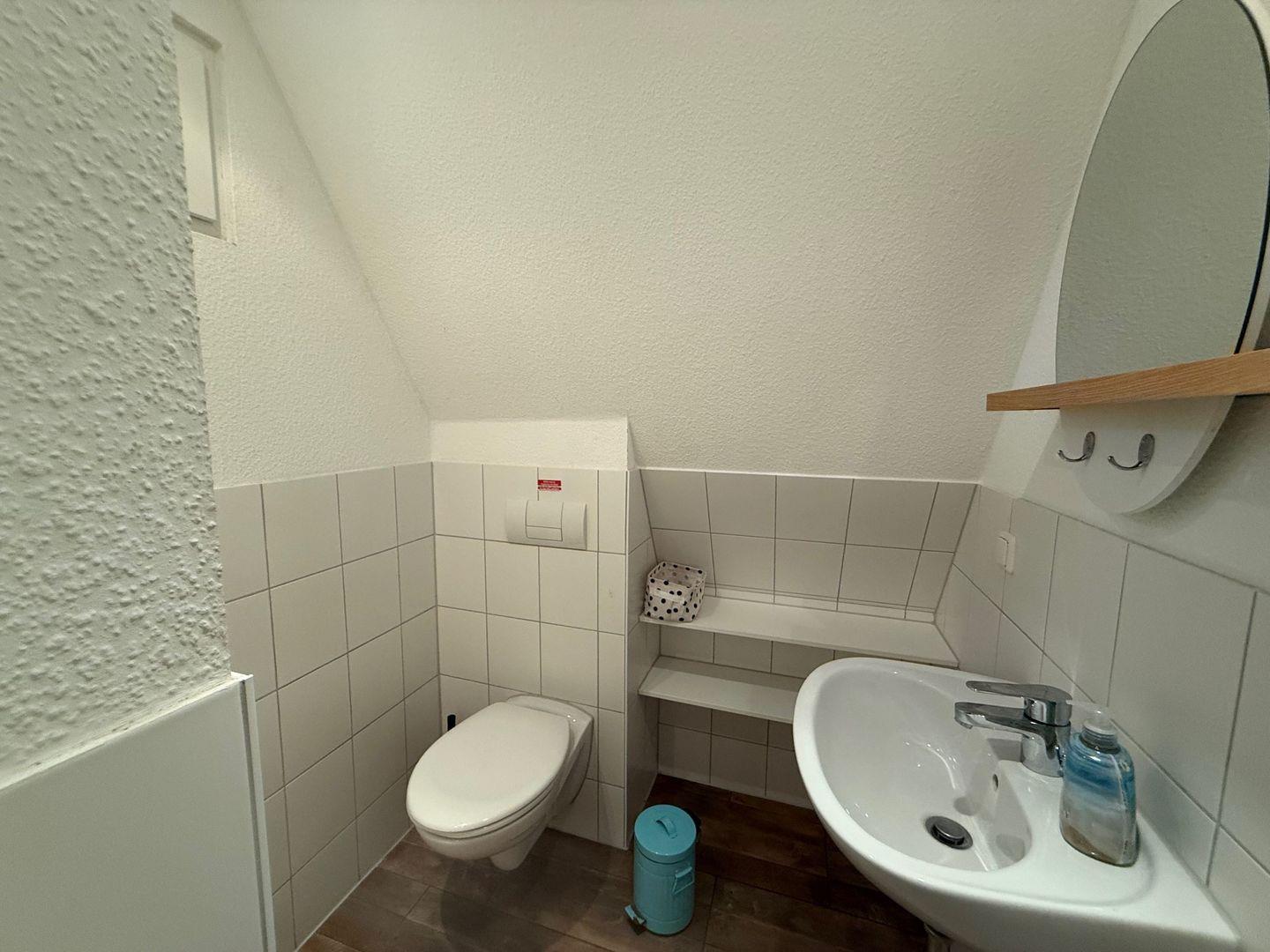 Die kleine Küchenzeile hat alles, was es für große Urlaubsgerichte braucht: Herd mit zwei Platten, Kühlschrank mit Gefrierfach, Kaffeemaschine, Toaster, Wasserkocher – dazu Geschirr und Besteck für vier Personen. Sollte einmal etwas fehlen: einfach melden, wir sorgen dafür. Daneben das eigene Duschbad mit WC – klein, aber fein und ganz für Sie allein.
