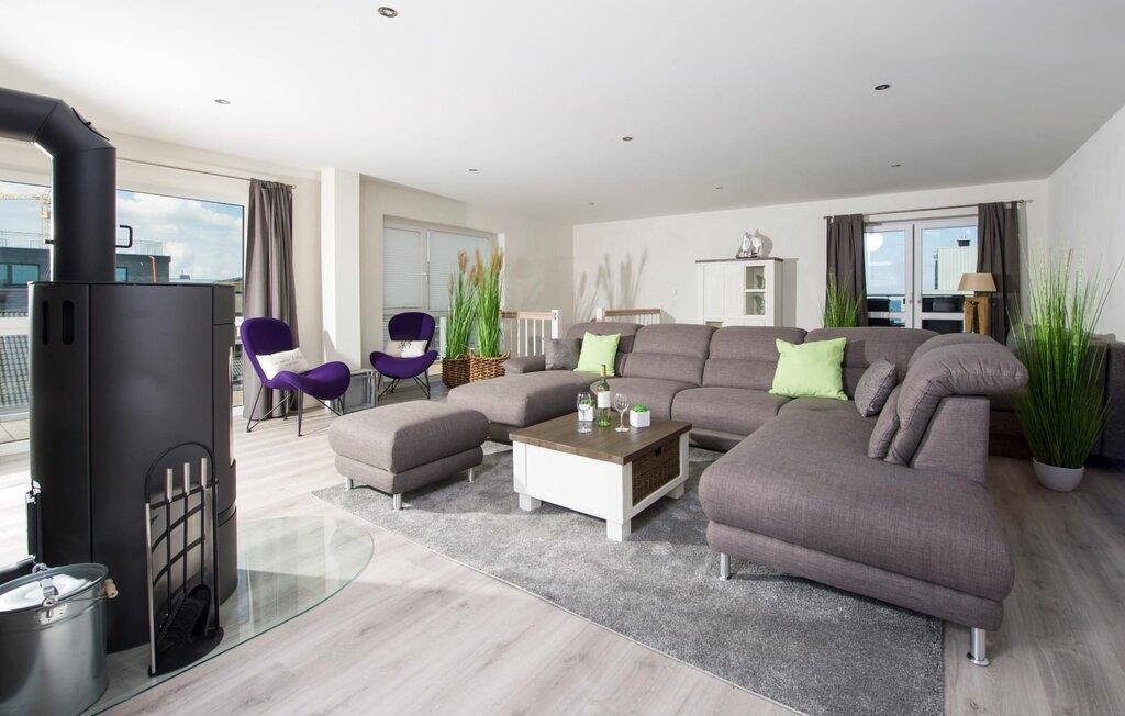 Moderne Penthouse-Ferienwohnung mit Sauna, Kamin und traumhaftem Ostseeblick auf der Nordmole im OstseeResort Olpenitz.