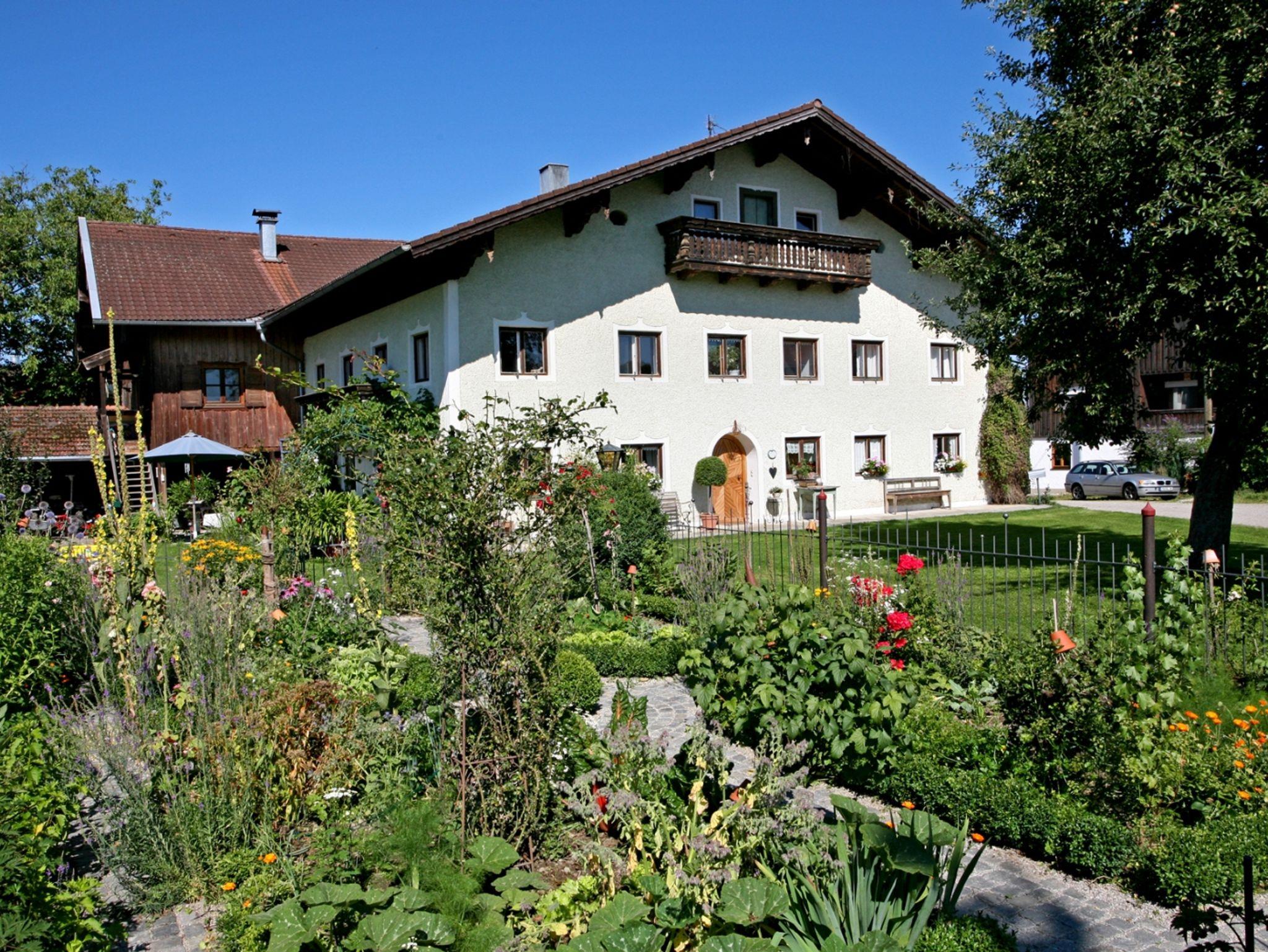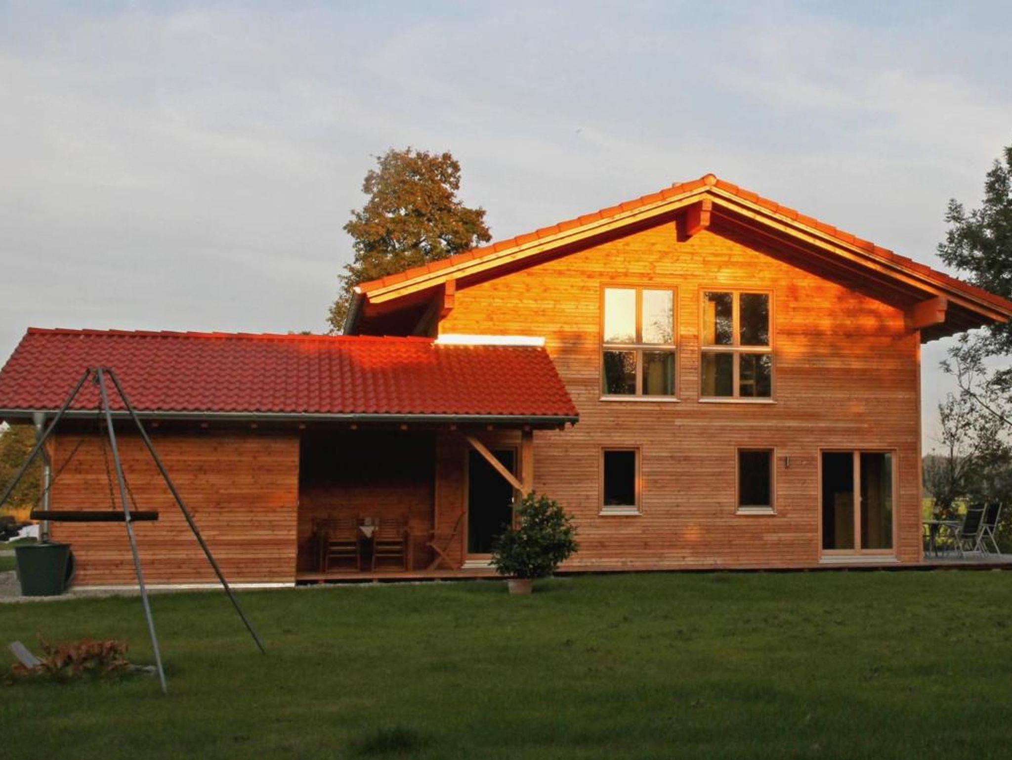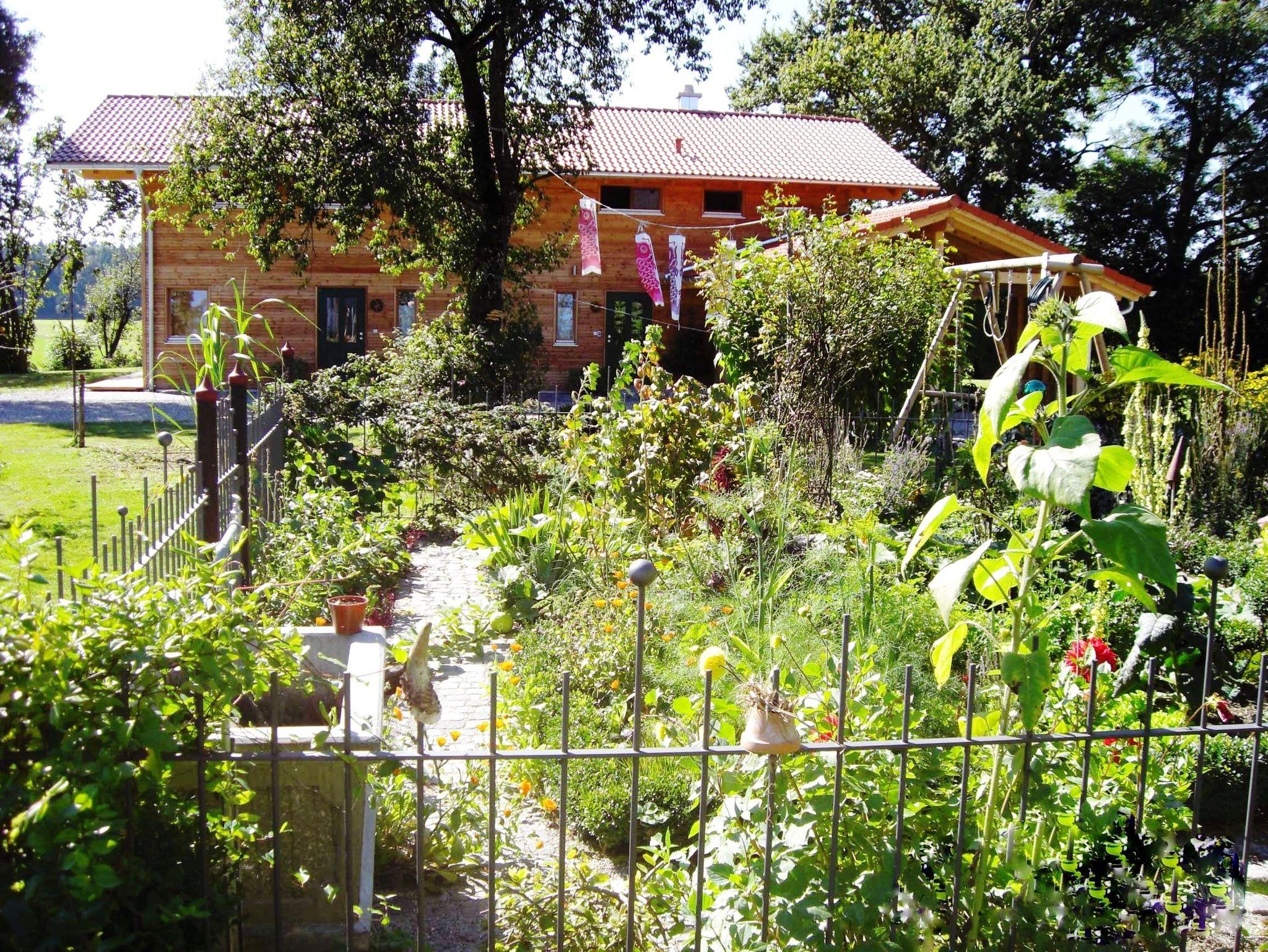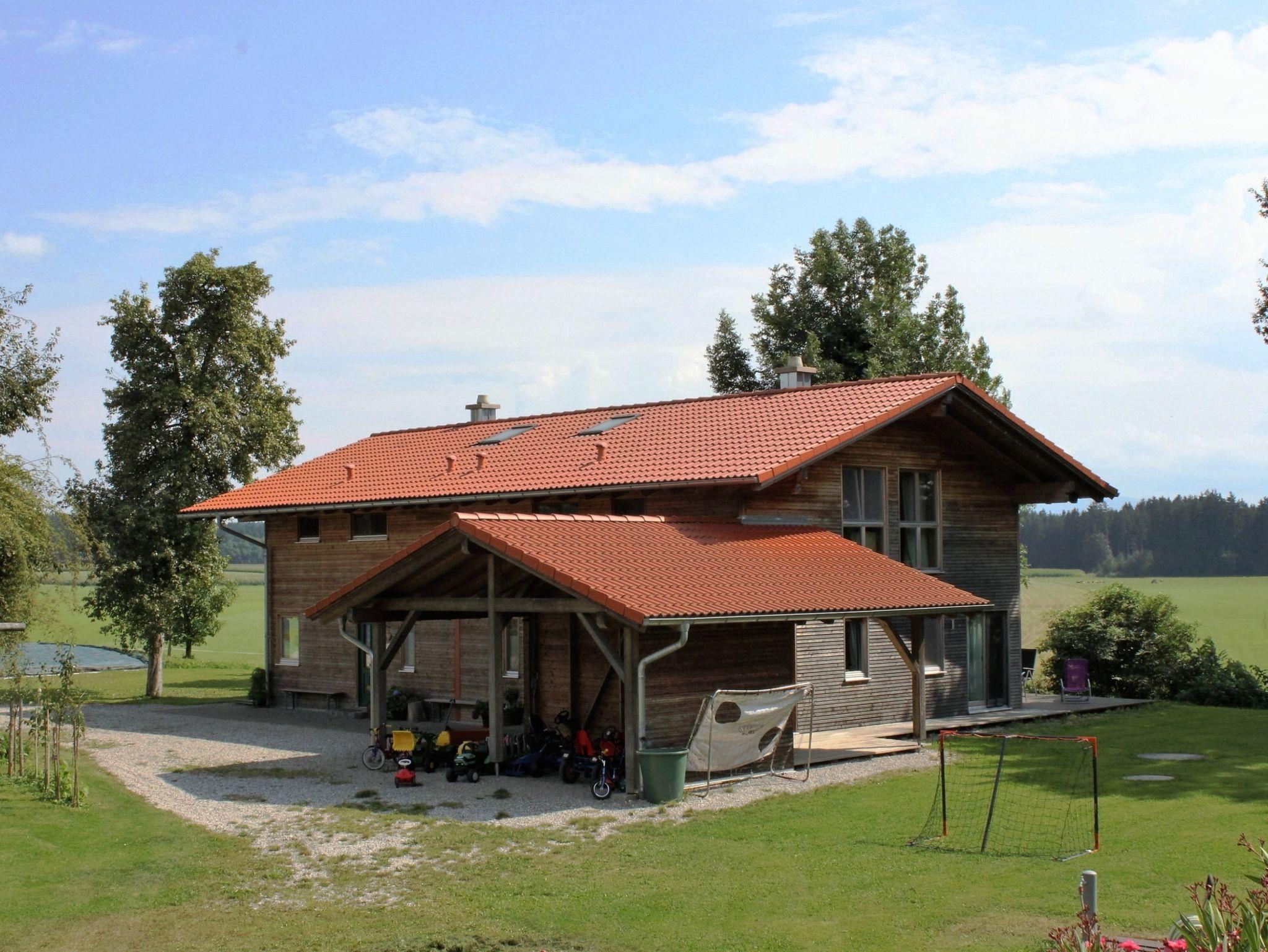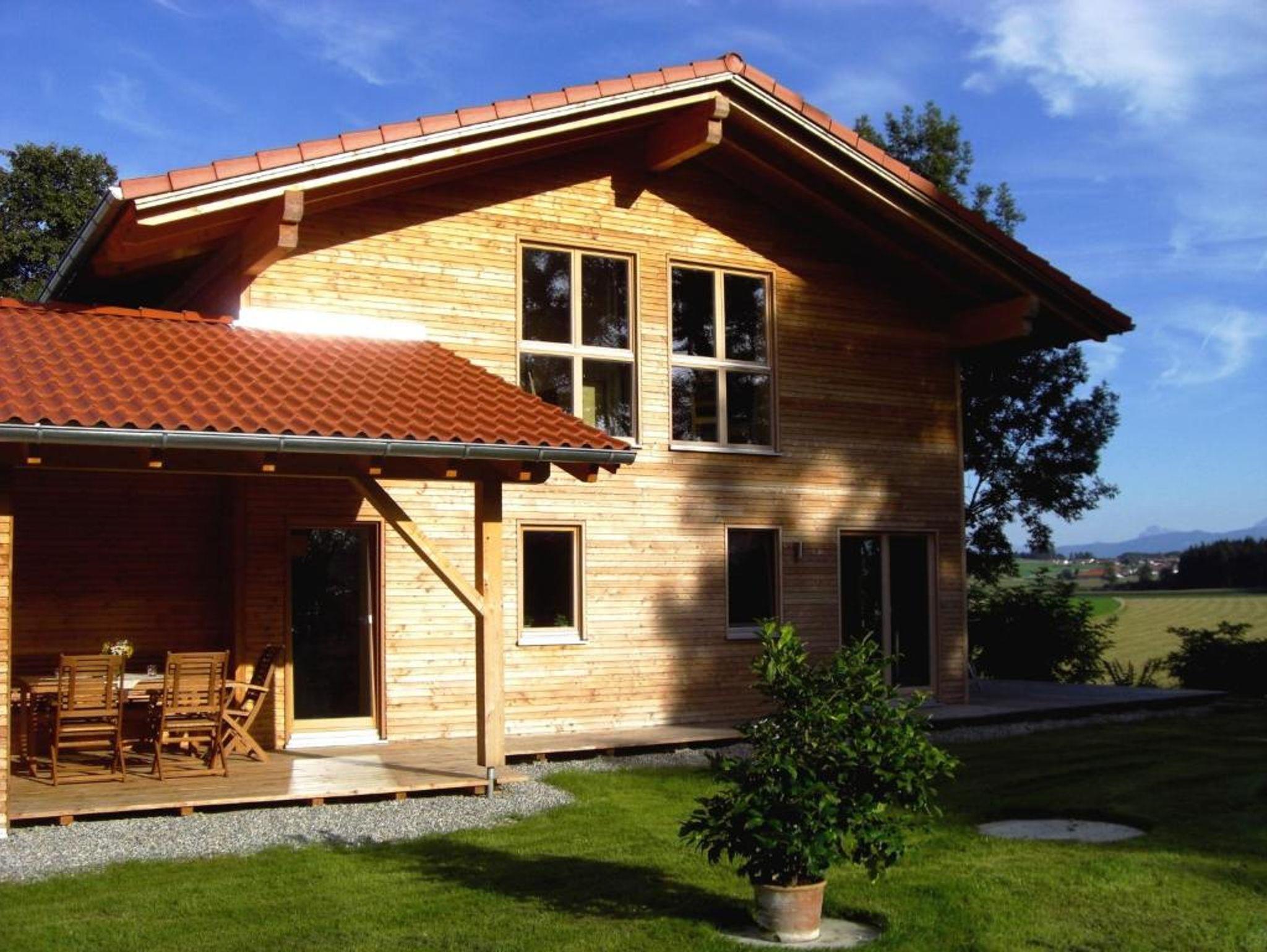 Komfortables ökologisch gebautes Holzhaus mit drei Schlafzimmer, großzügiger Wohnbereich mit vollausgestatteter Küche, eigene Waschmaschine, TV, W-Lan und großer Holzterrasse mit freien Blick auf die Chiemgauer Alpen. Demeter Bio-Bauernhof, Kinderfuhrpark, Spielwiese für Federball, Volleyball, Fußball, Trampolin und Lagerfeuer mit Grillplatz.Ausreichend Sitzgarnituren und einen wunderschönen Bauerngarten mit vielen verschiedenen Kräutern,- Blumen und Gemüse.