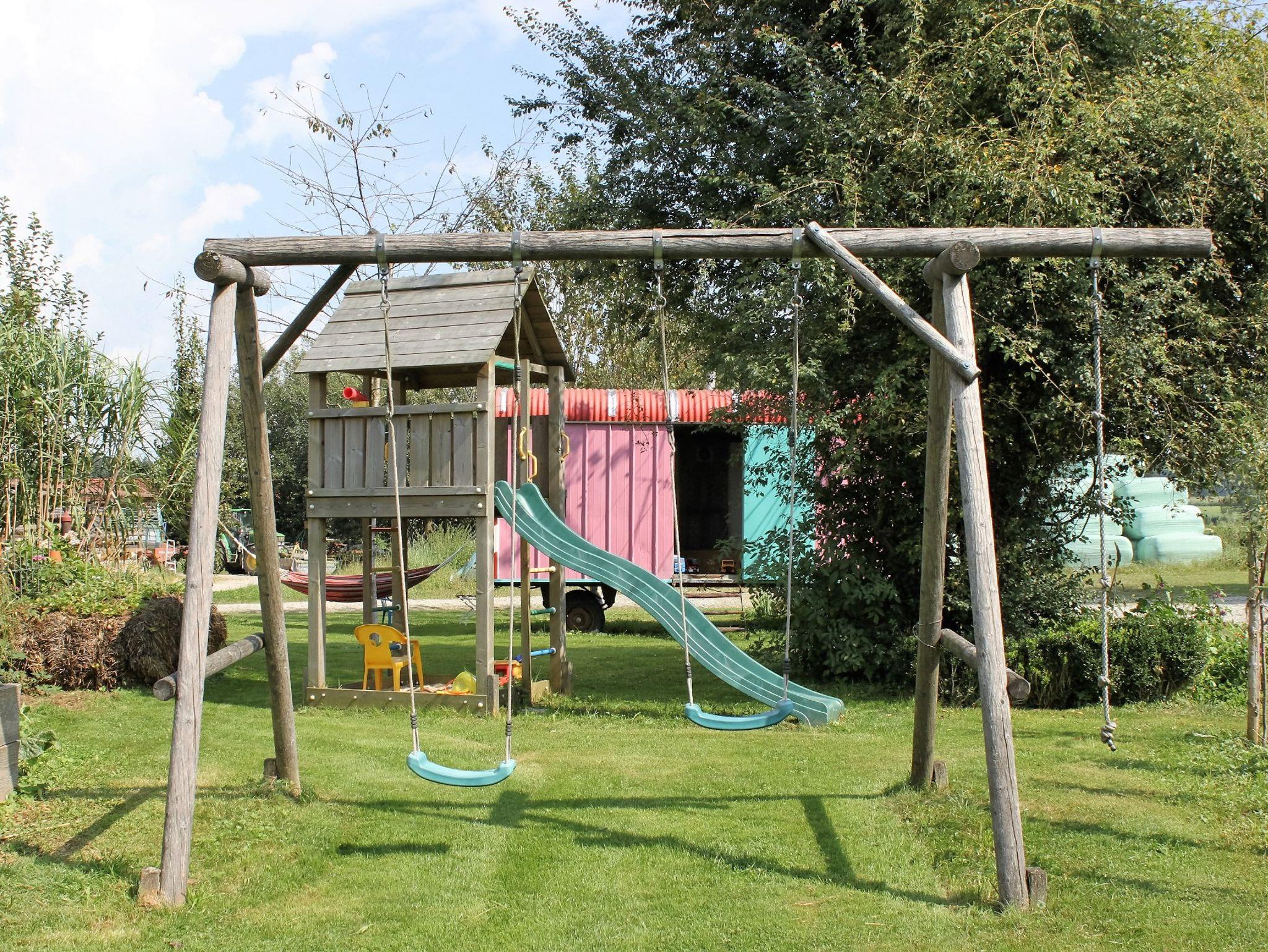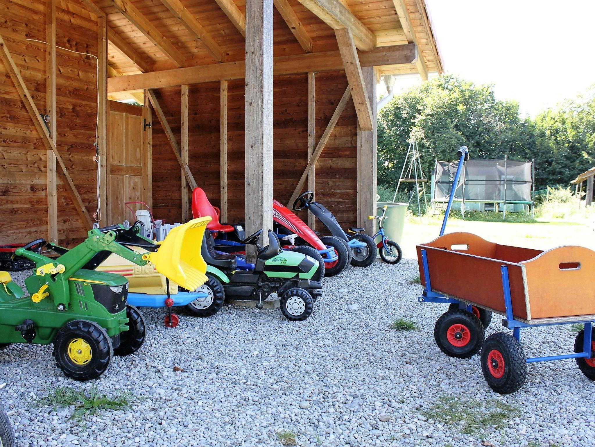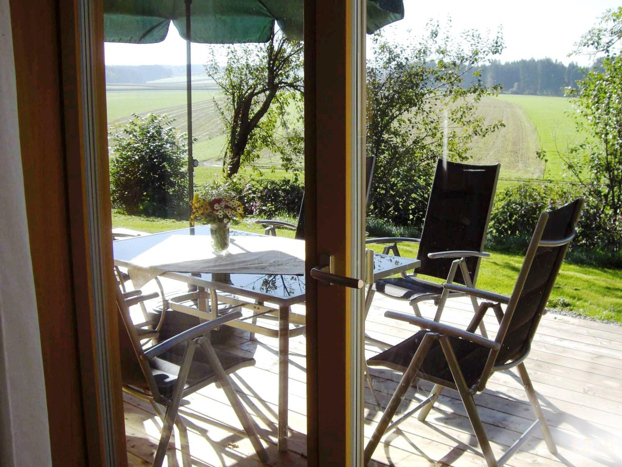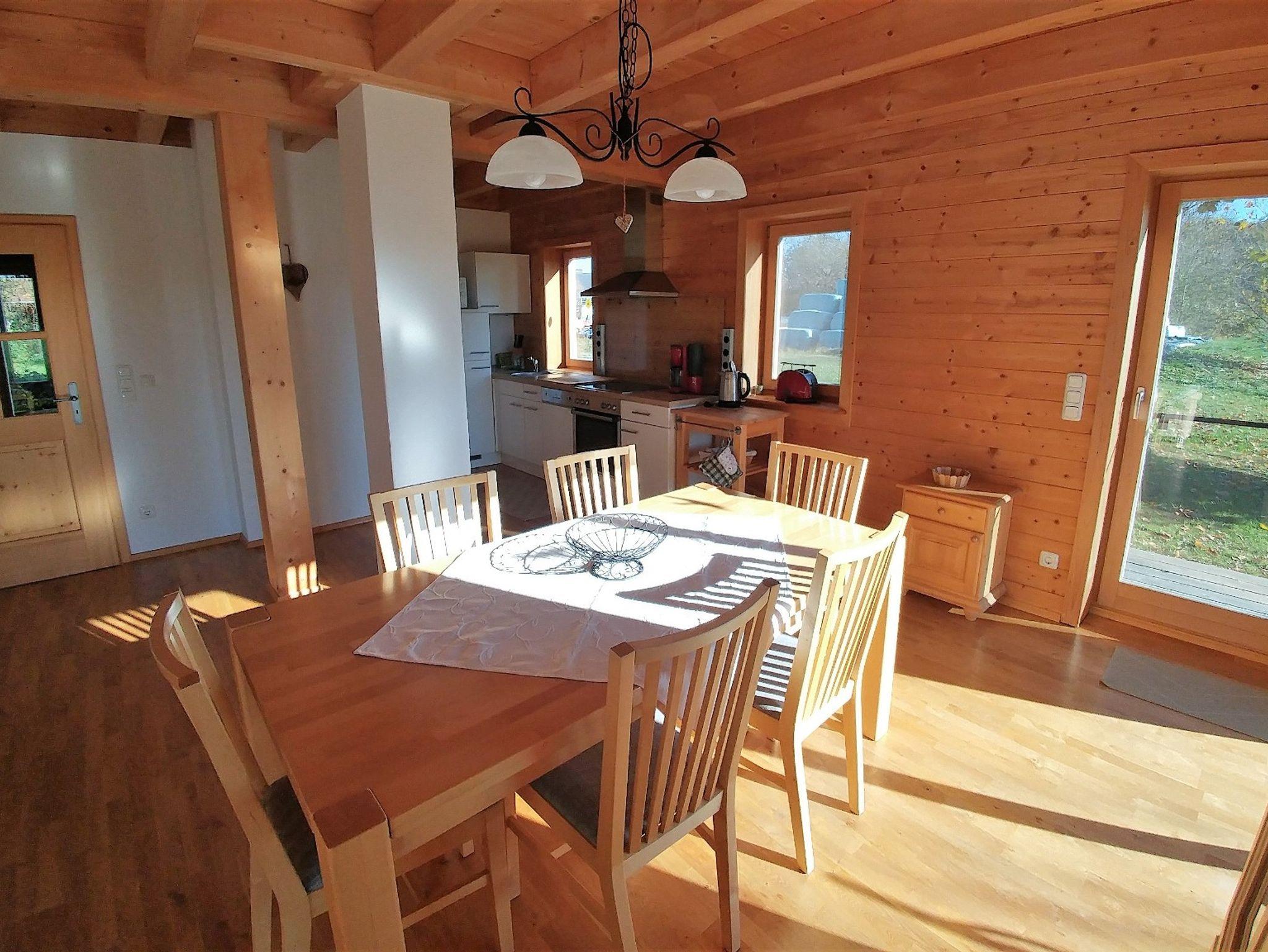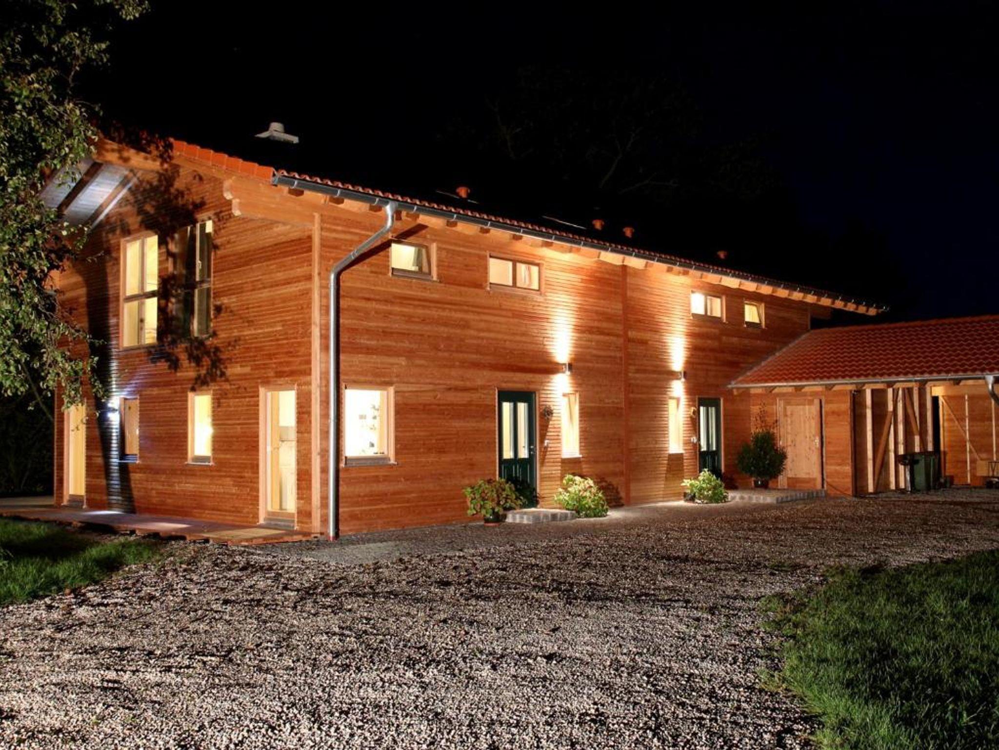 Komfortables ökologisch gebautes Holzhaus mit drei Schlafzimmer, großzügiger Wohnbereich mit vollausgestatteter Küche, eigene Waschmaschine, TV, W-Lan und großer Holzterrasse mit freien Blick auf die Chiemgauer Alpen. Demeter Bio-Bauernhof, Kinderfuhrpark, Spielwiese für Federball, Volleyball, Fußball, Trampolin und Lagerfeuer mit Grillplatz.Ausreichend Sitzgarnituren und einen wunderschönen Bauerngarten mit vielen verschiedenen Kräutern,- Blumen und Gemüse.