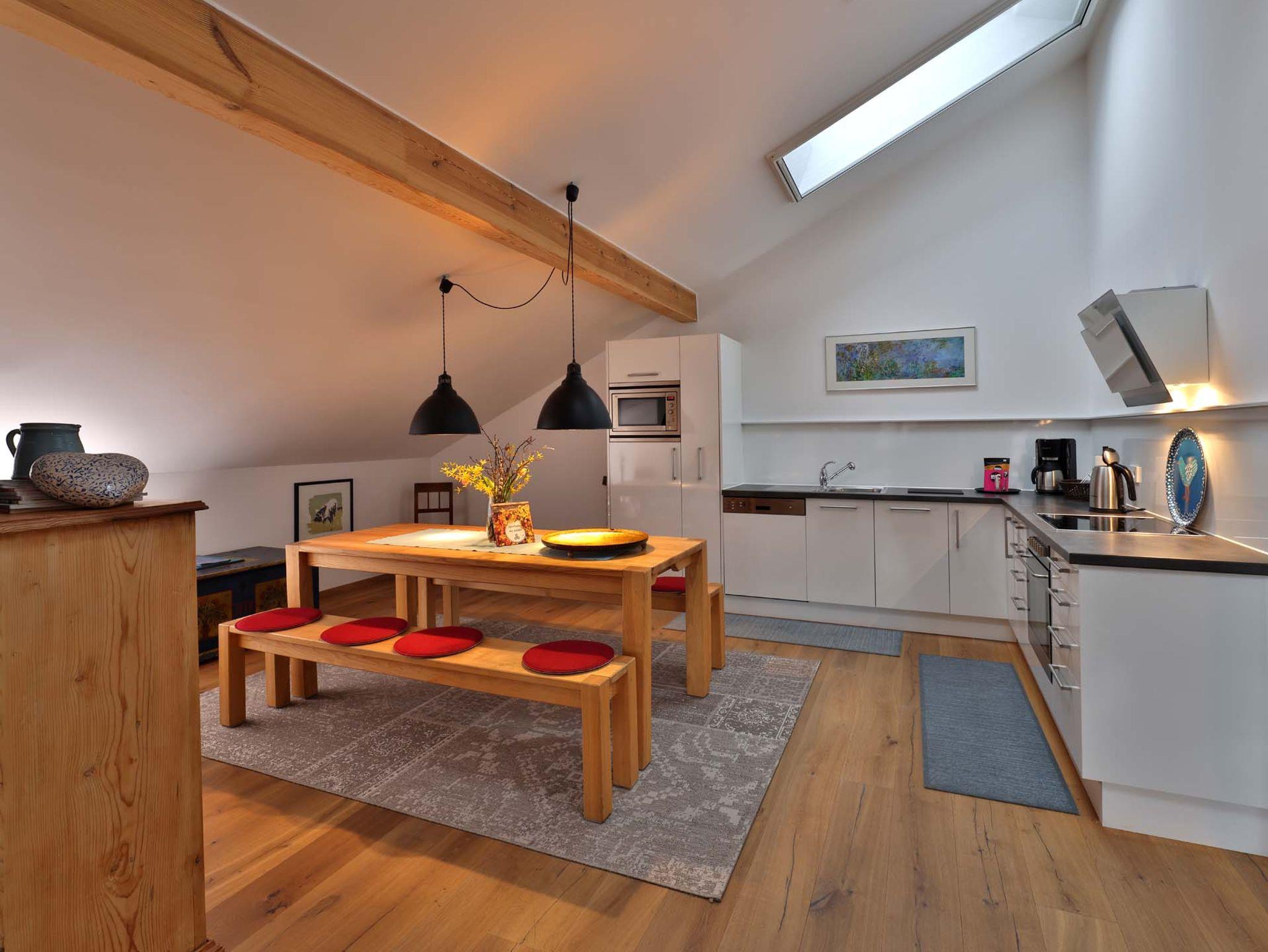 Großzügiger offener Küchenbereich mit großem Esstisch, gemütlicher und bequemer Wohnbereich mit 2 Couchen zum Lesen und Faulenzen.