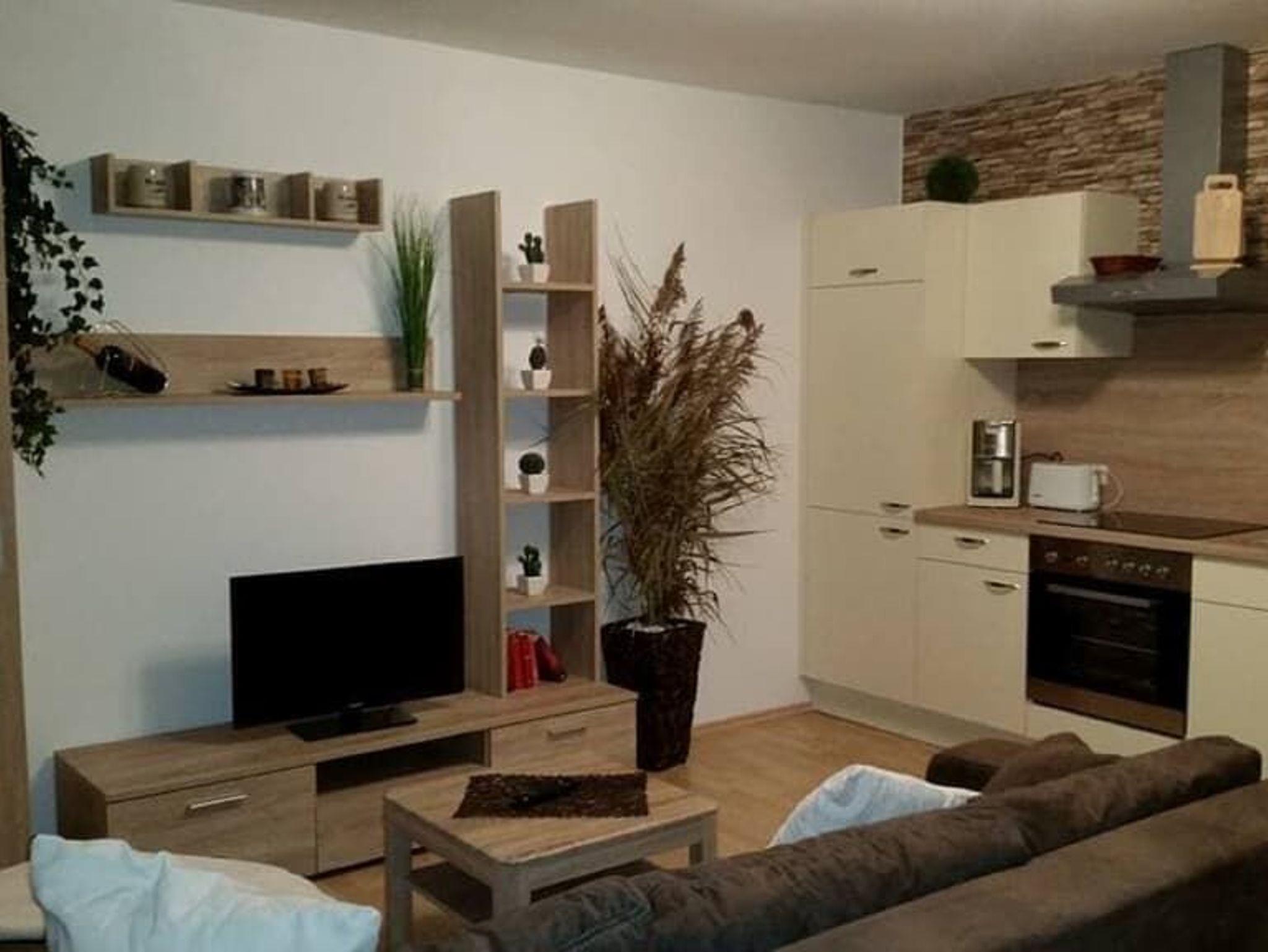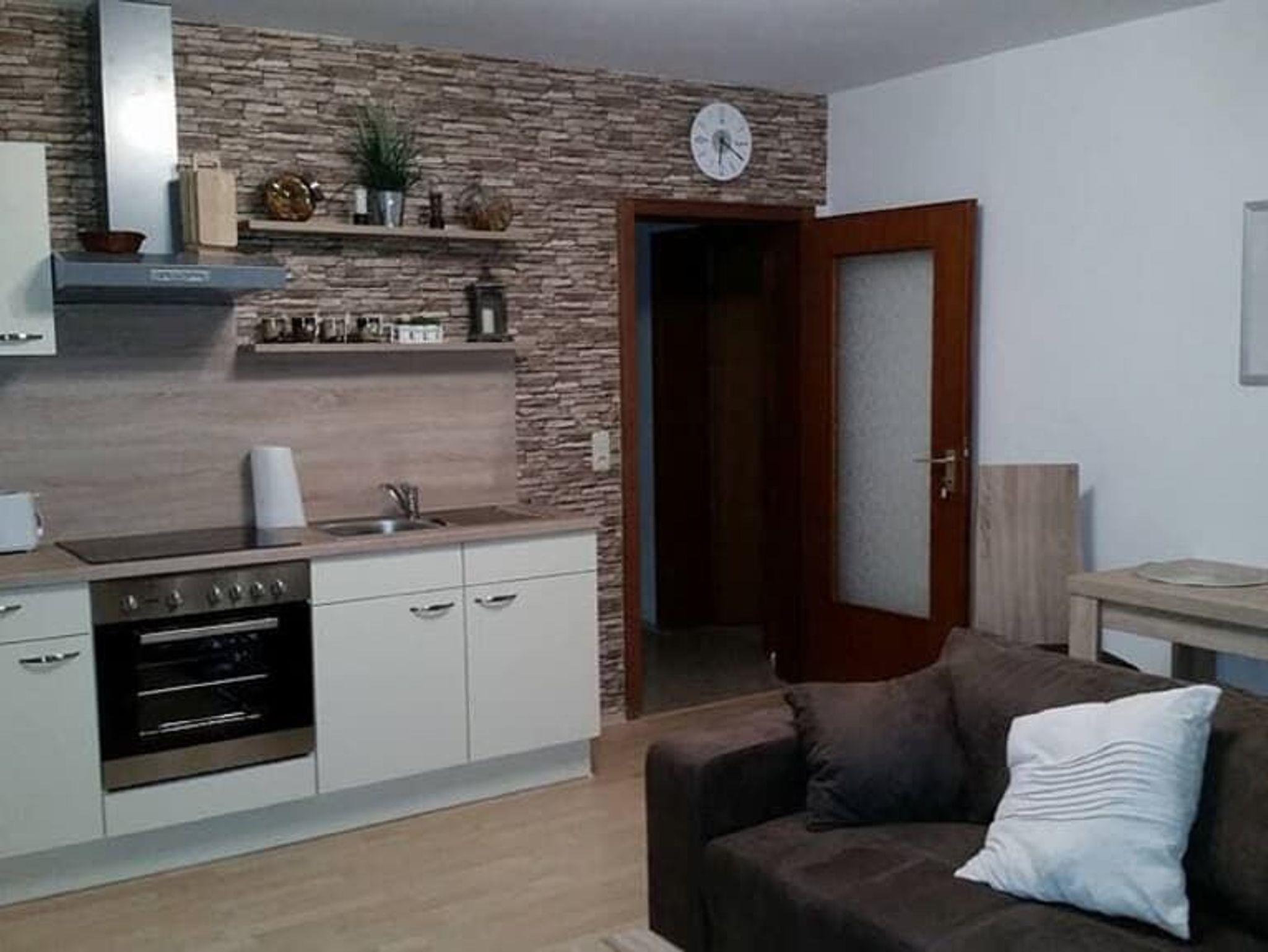 50 qm große Ferienwohnung für 2 Personen. In der Wohnküche finden Sie eine voll ausgestattete Küchenzeile mit einem Herd und Backofen. Neben einem Esstisch können Sie es sich auf der großen Couch gemütlich machen und schöne Fernsehabende verbringen. Das Badezimmer ist mit einer Badewanne und einer Dusche ausgestattet.Im Schlafzimmer finden Sie ein Doppelbett. Ein großer Schrank bietet genug Stauraum. Bettwäsche und Handtücher einmalig pro Woche im Preis inbegriffen!