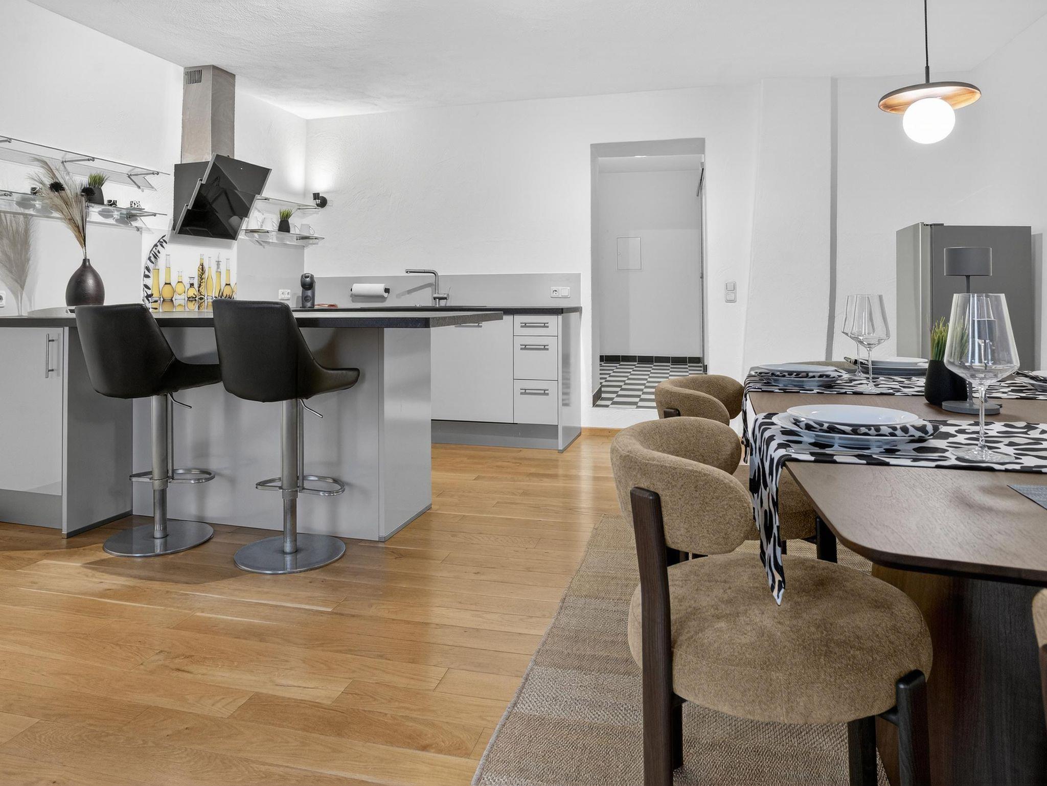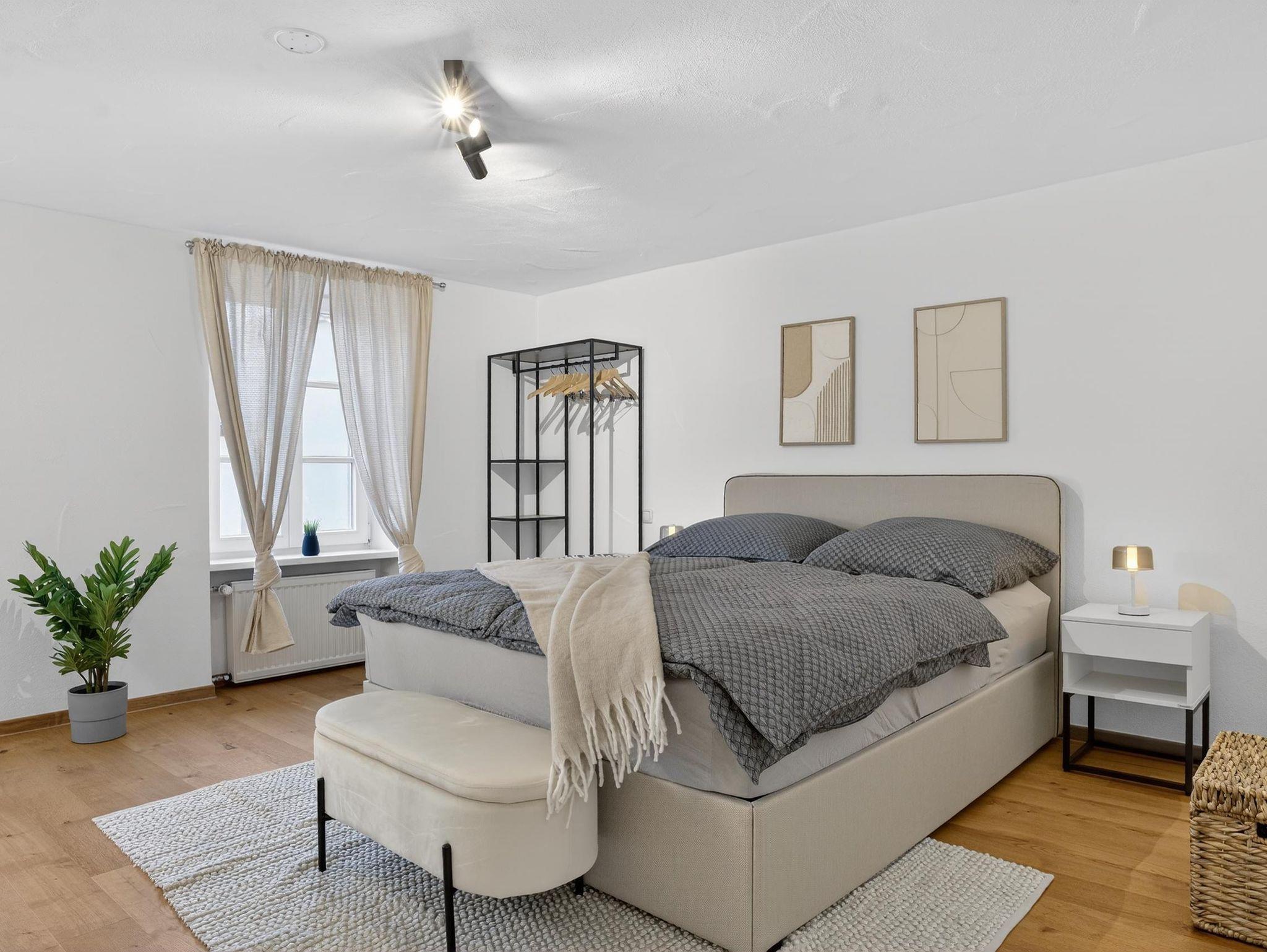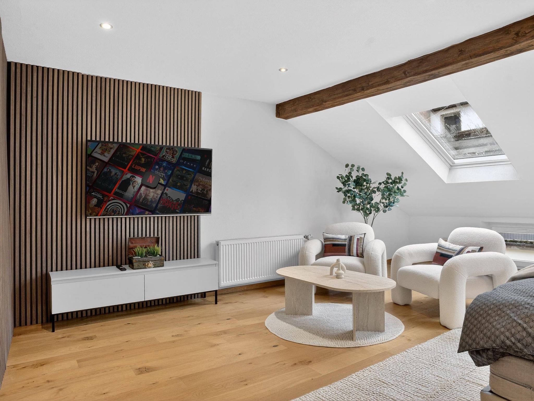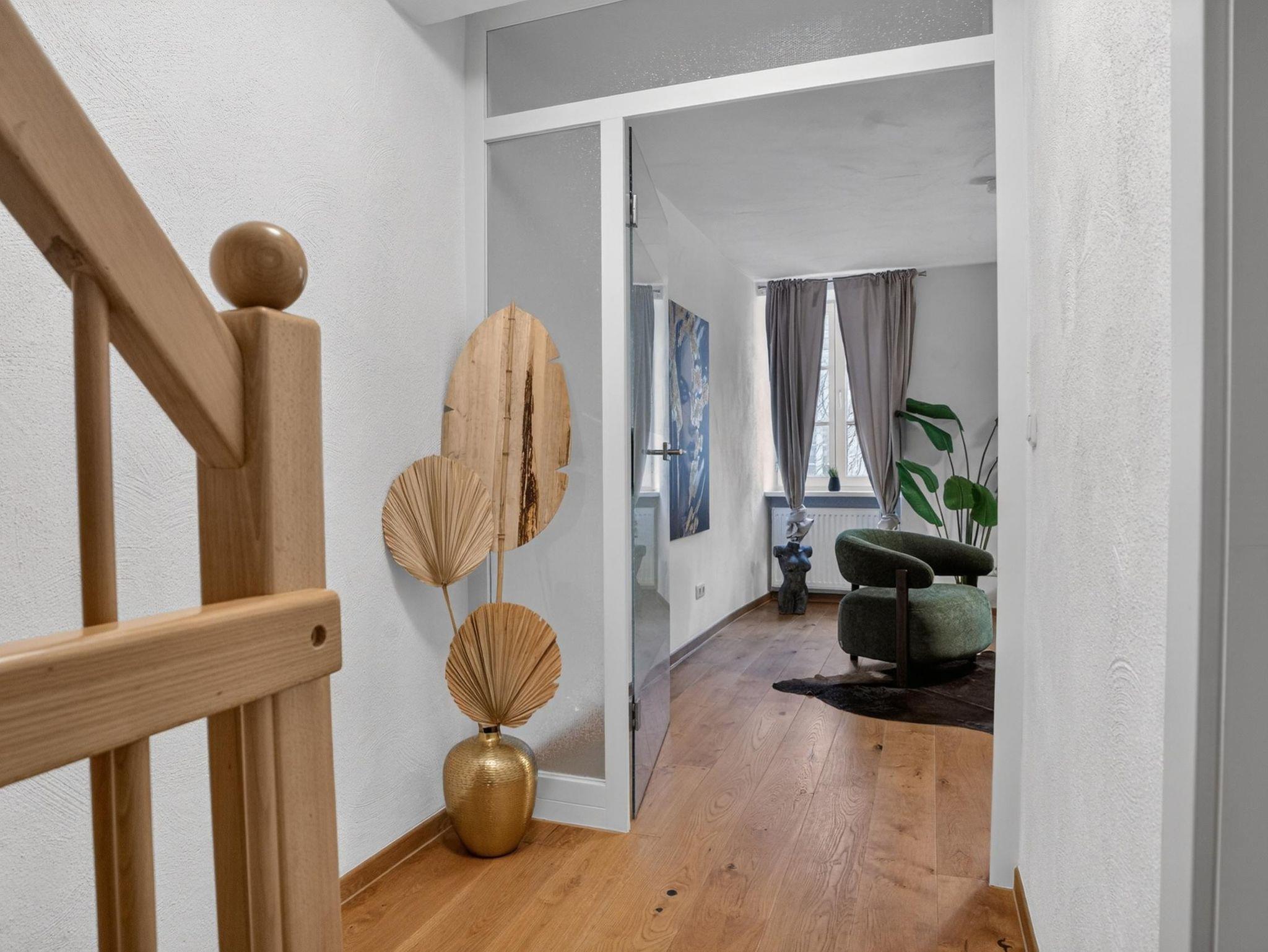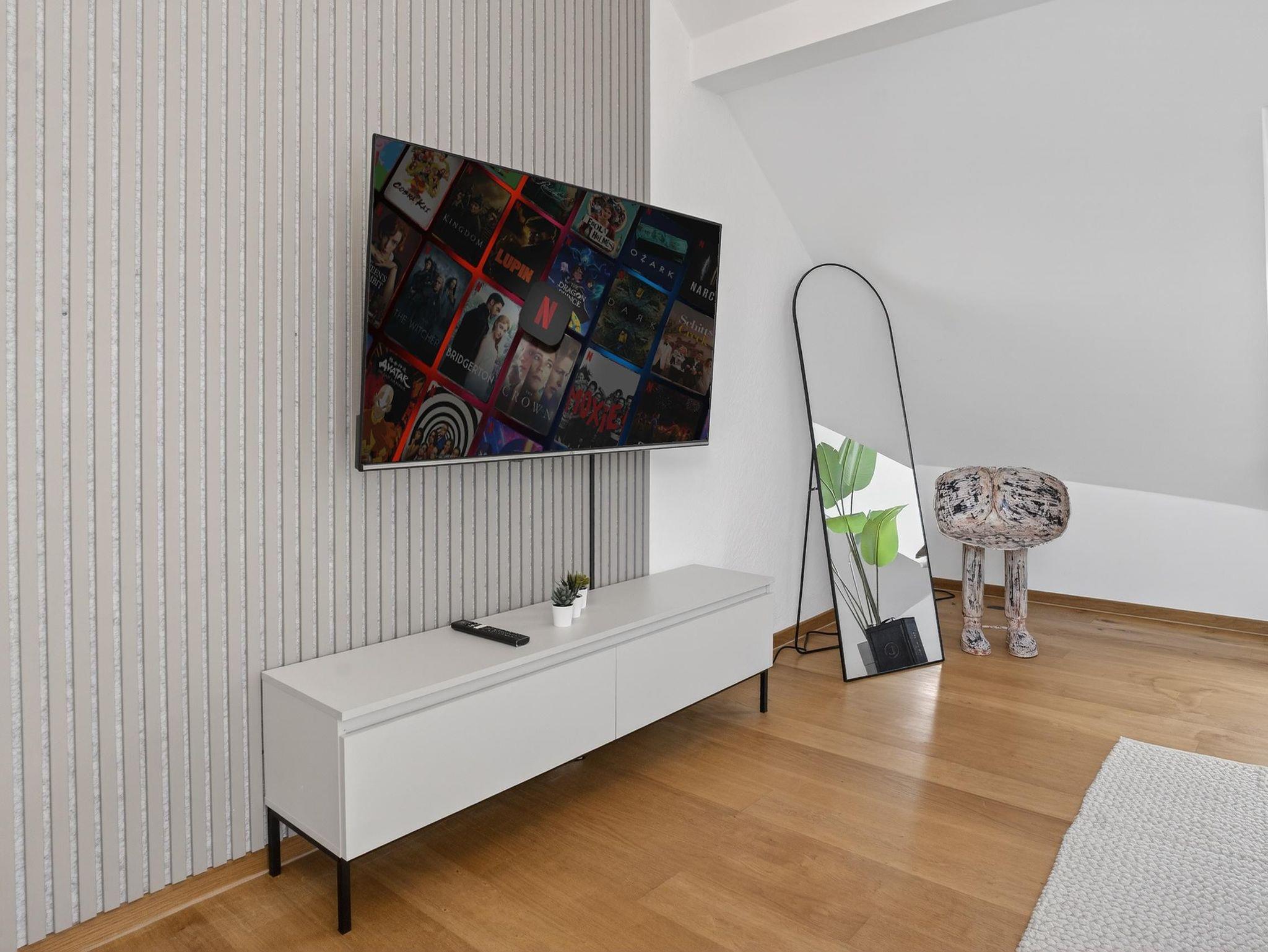 Ein besonderes Highlight ist die Dachterrasse mit herrlichem Blick über die Dächer von Saarburg und auf die umliegenden Weinberge. Zudem stehen Ihnen zwei moderne Bäder (1 x mit Badewanne) zur Verfügung.