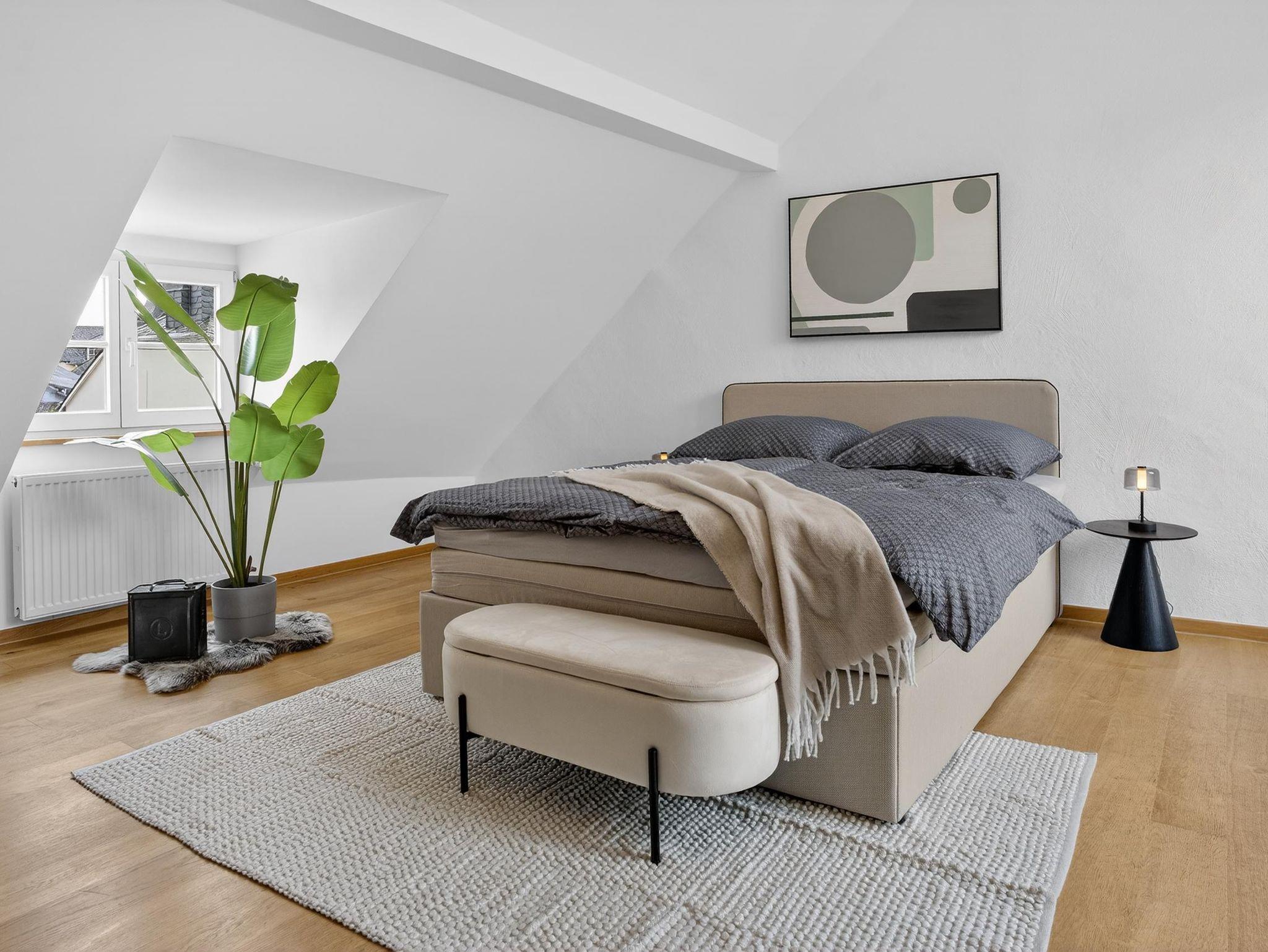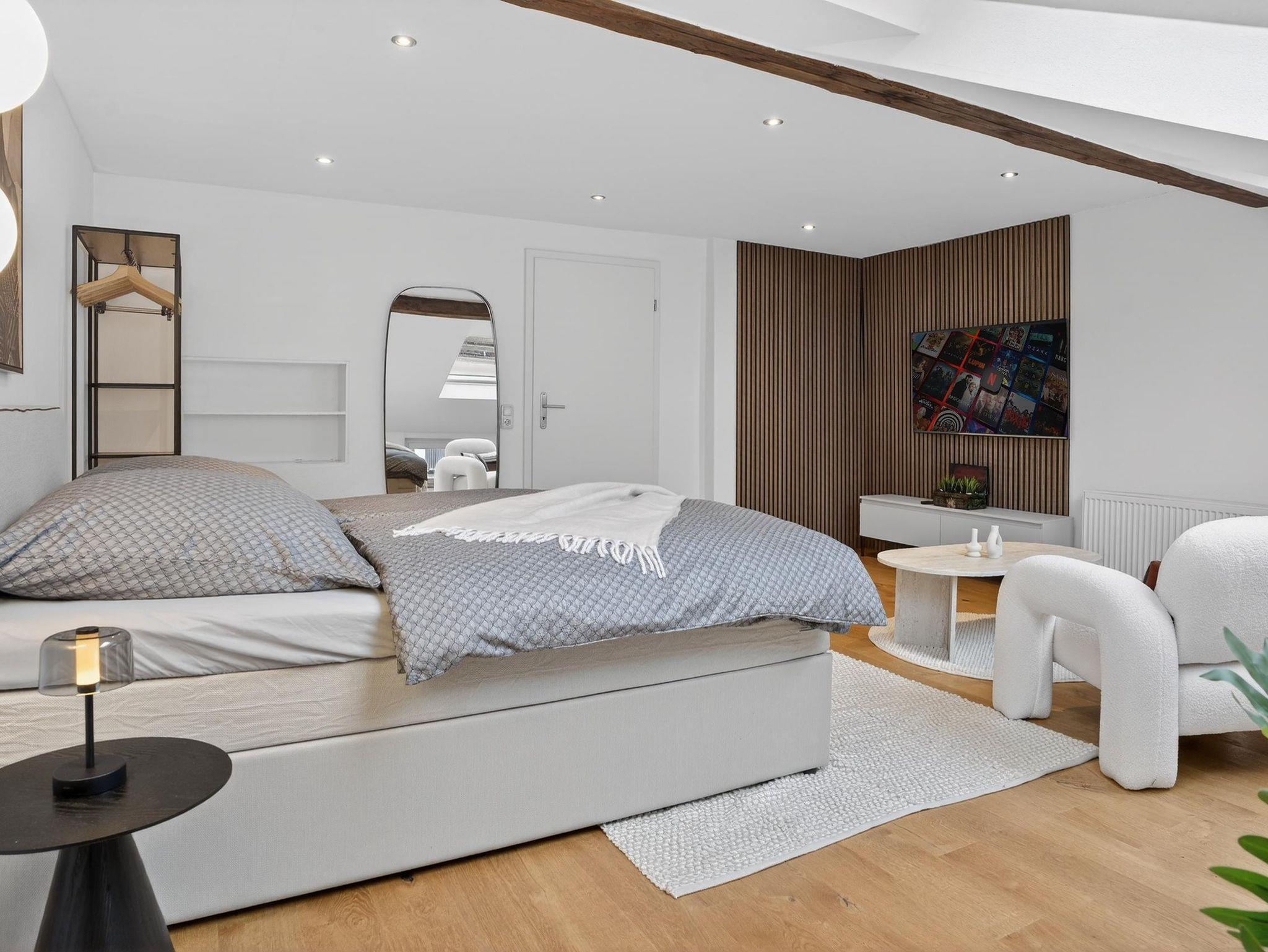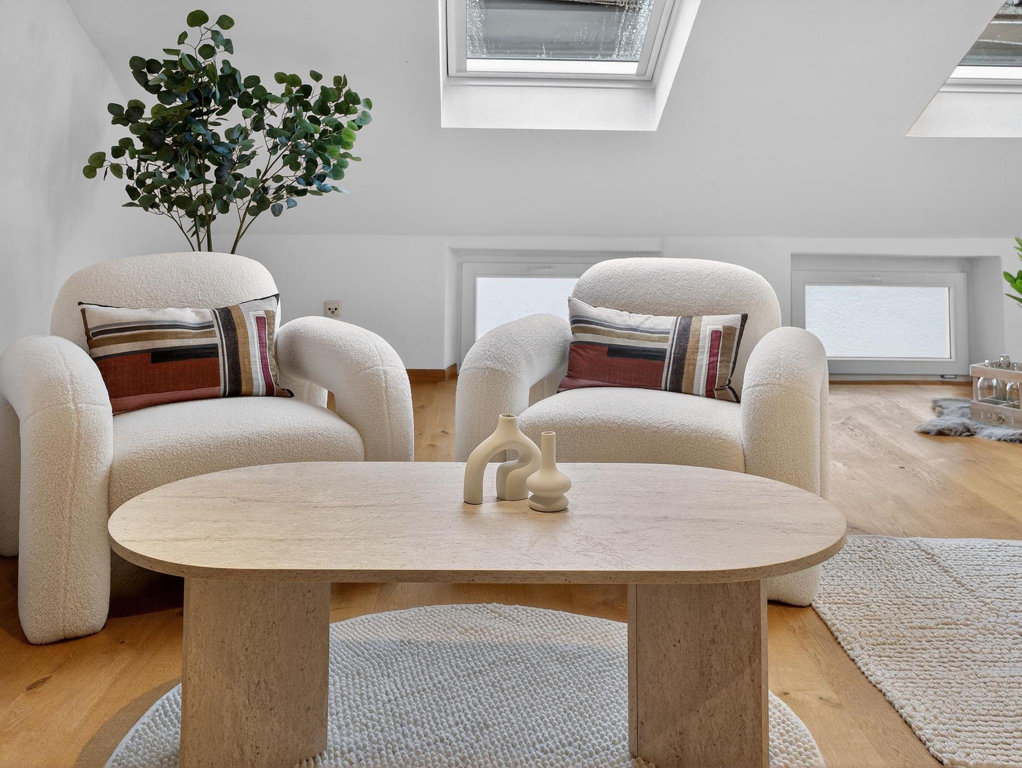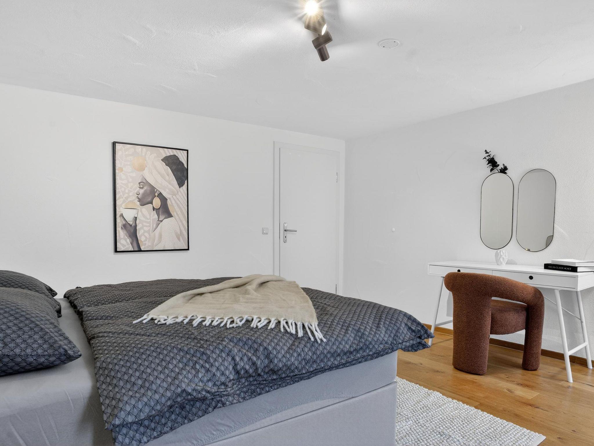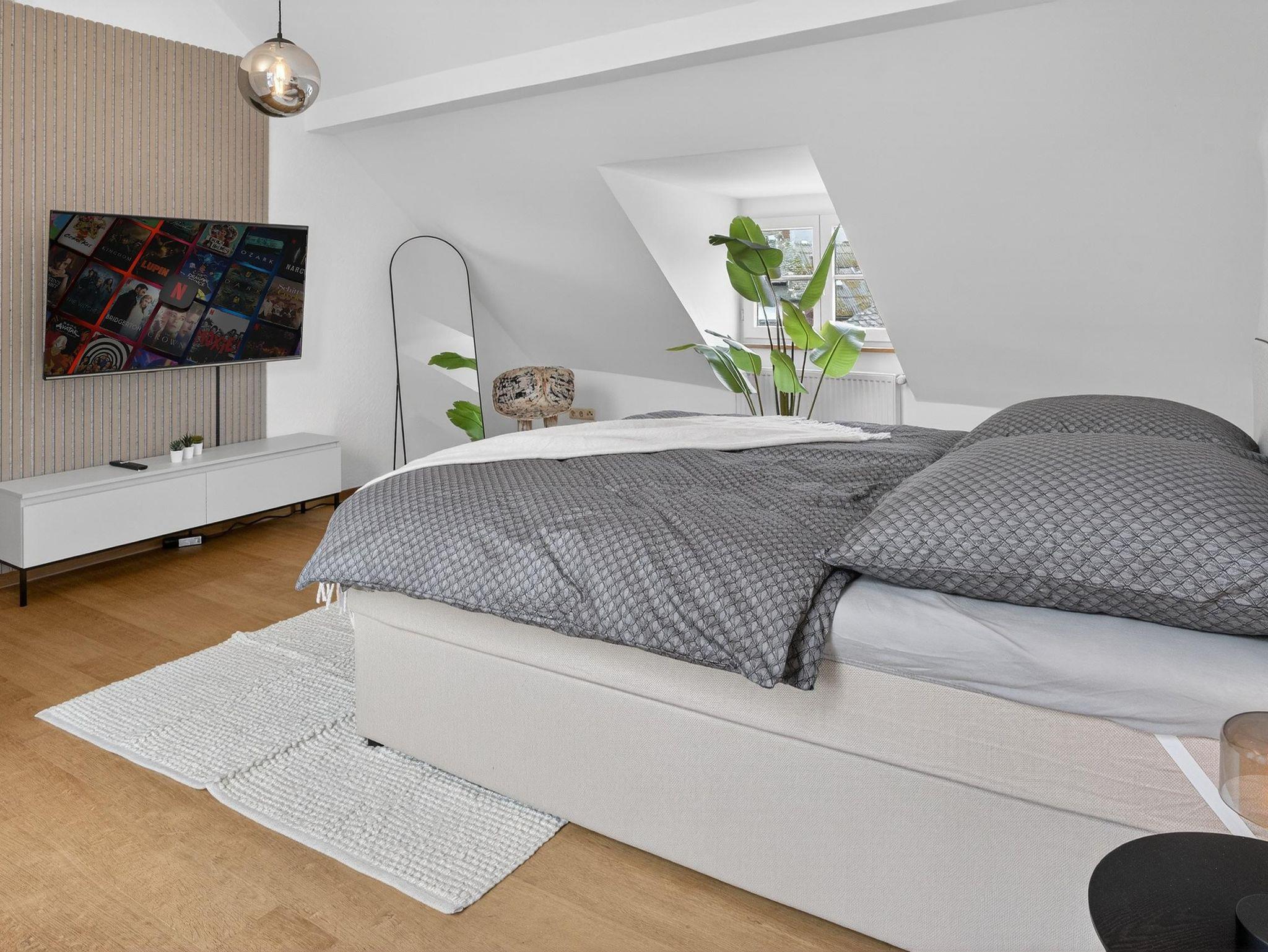 Ein besonderes Highlight ist die Dachterrasse mit herrlichem Blick über die Dächer von Saarburg und auf die umliegenden Weinberge. Zudem stehen Ihnen zwei moderne Bäder (1 x mit Badewanne) zur Verfügung.