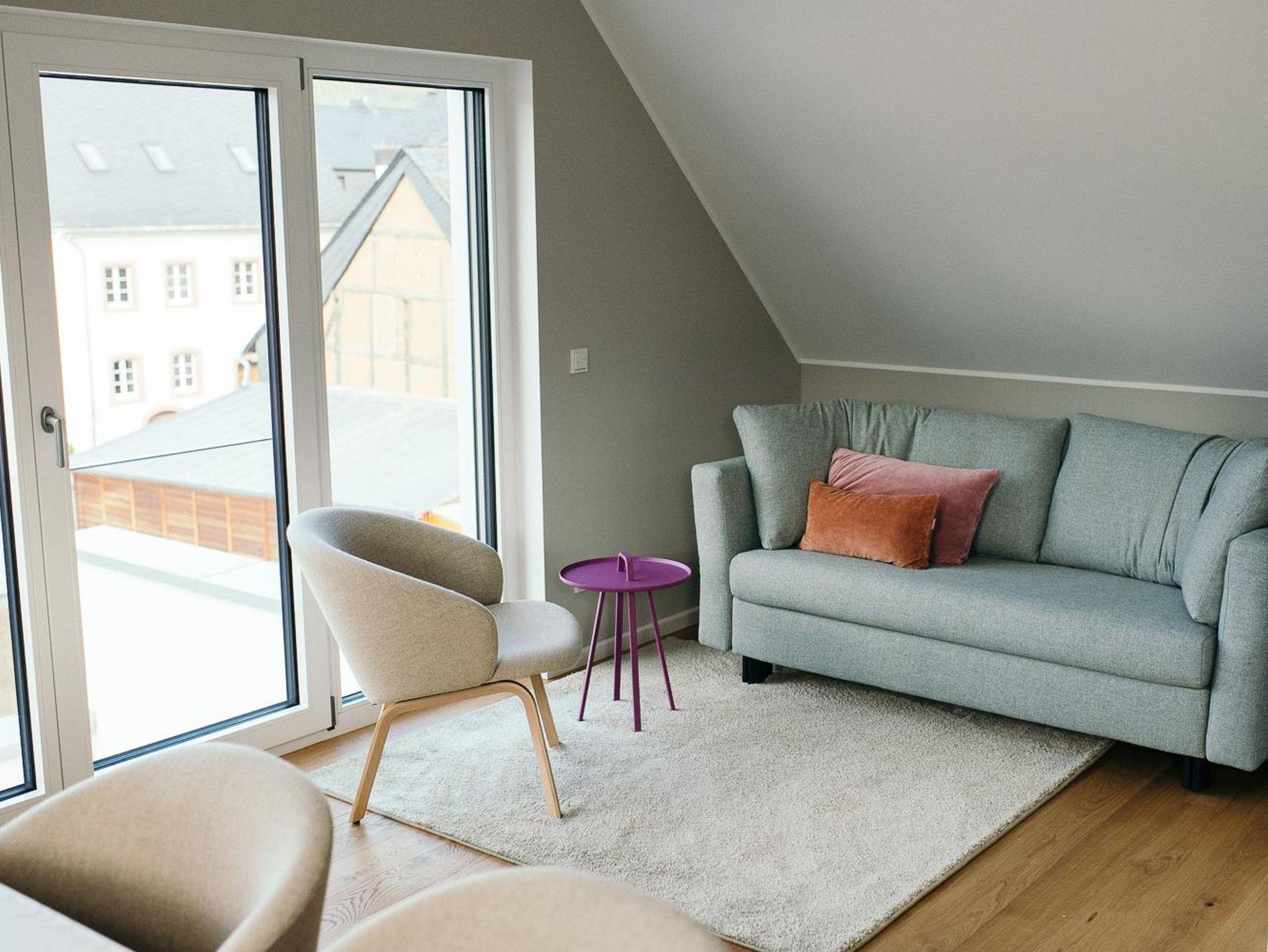 In den drei großen, modernen Wohnungen finden bis zu 14 Gäste Platz.