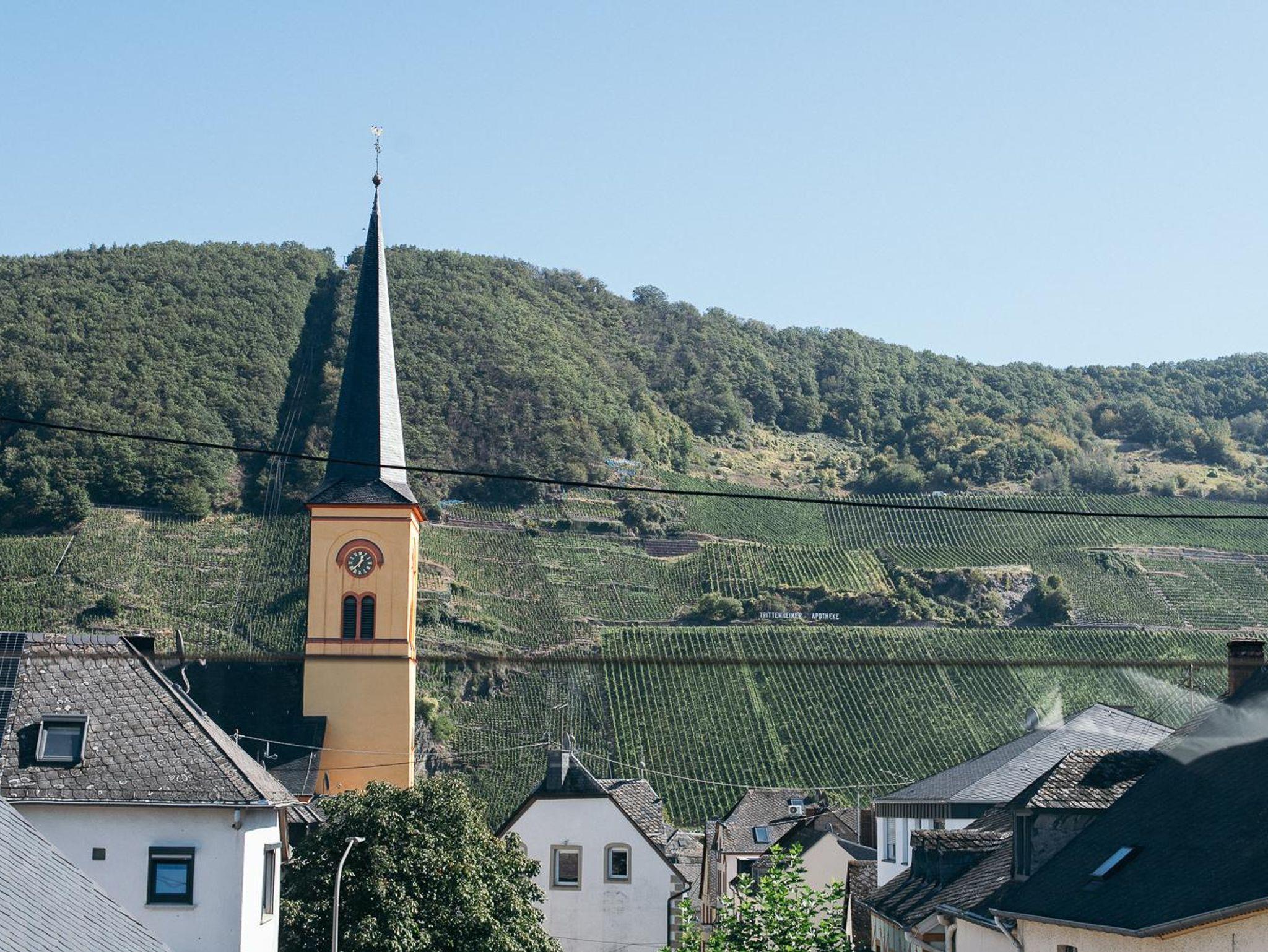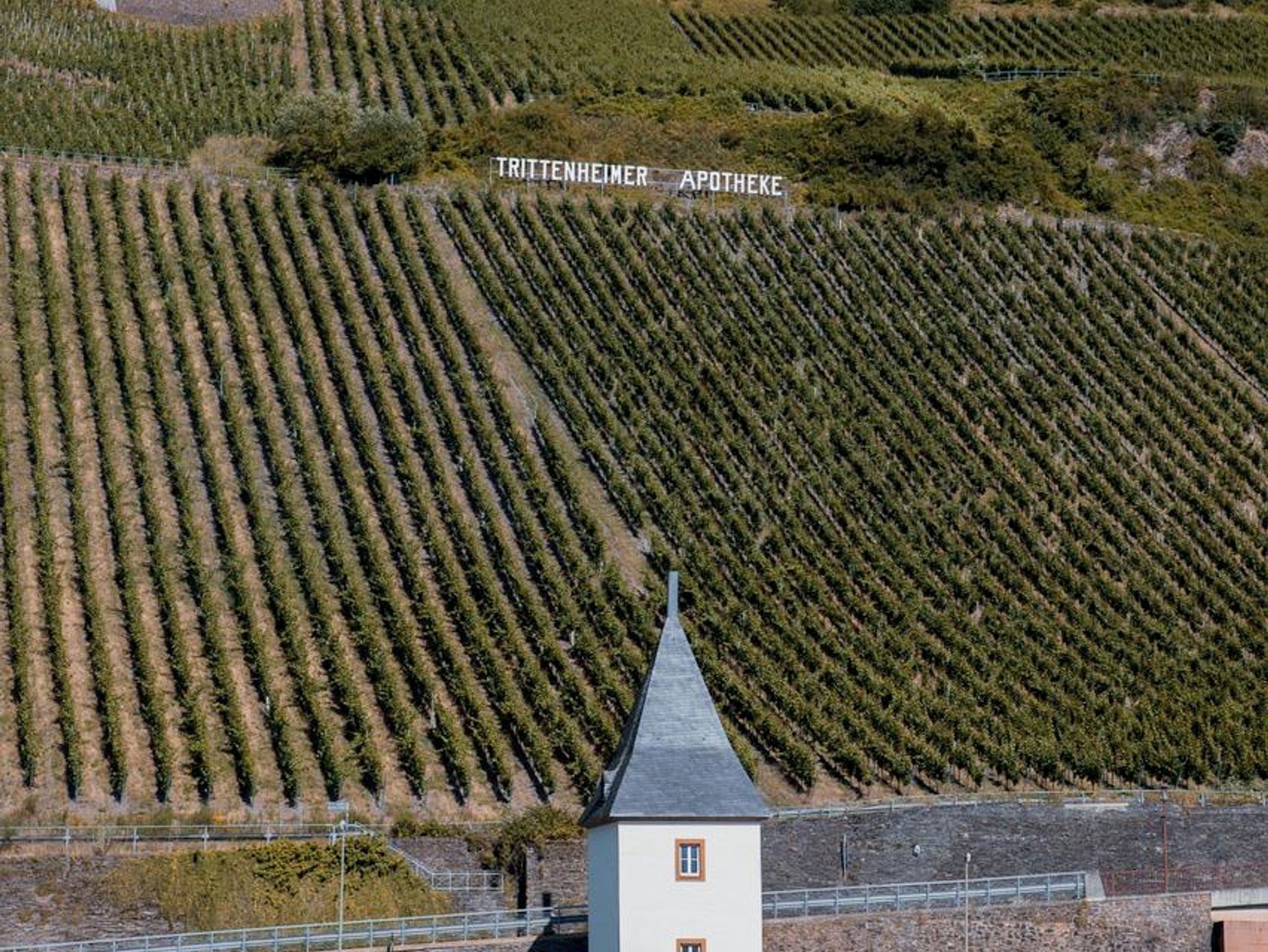 Dazu der tolle Blick auf die Weinlage Trittenheimer Apotheke aus dem Schlafzimmer.