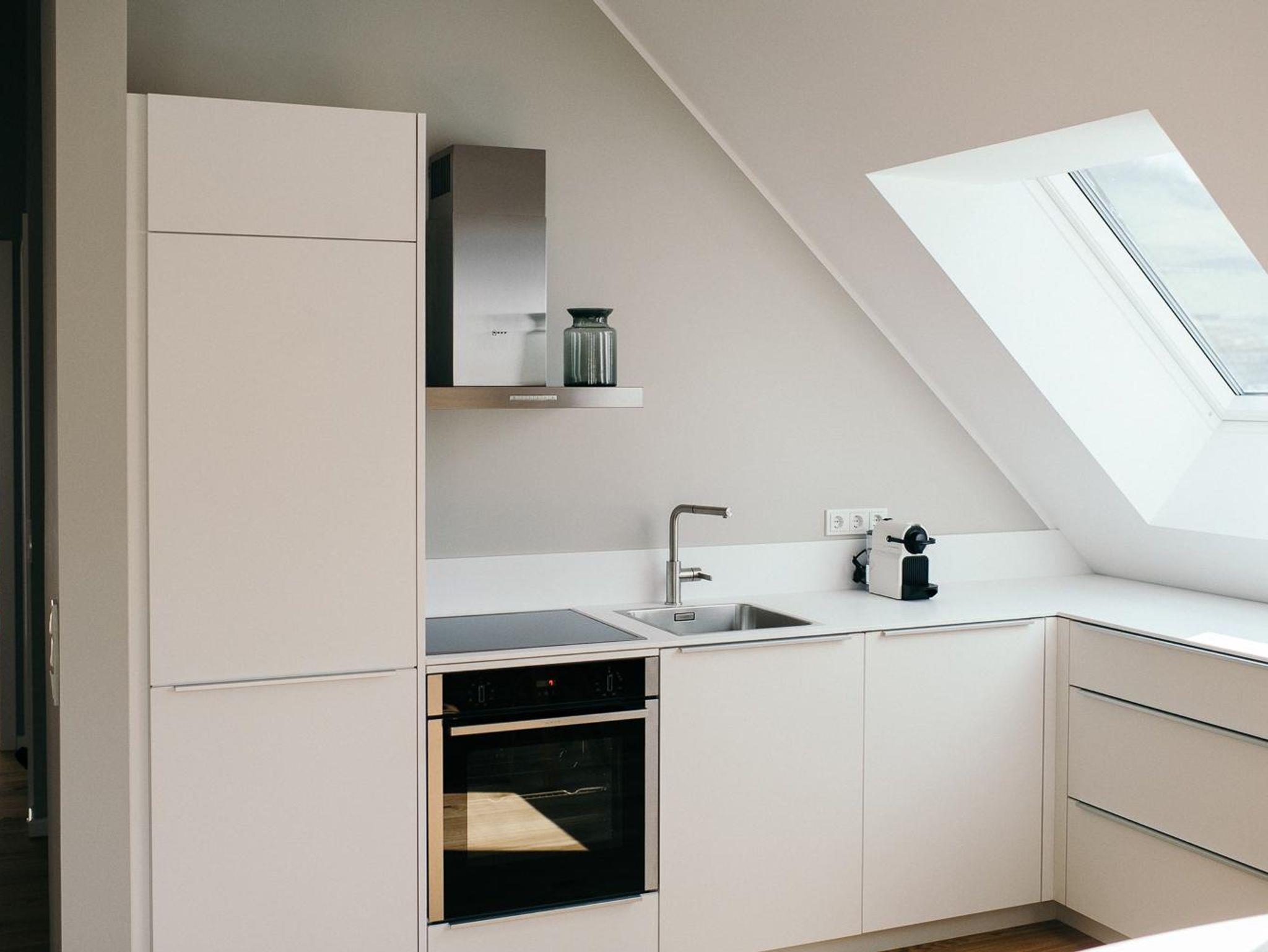 - voll ausgestattete Küche mit: Spülmaschine, Induktionskochfeld, Backofen, Dunstabzug, Kühlschrank mit ***Gefrierfach; hochwertiges Geschirr und Gläser; Nespresso-Kaffeemaschine (Kapseln für die ersten Tassen vorhanden), French Press und Wasserkocher.