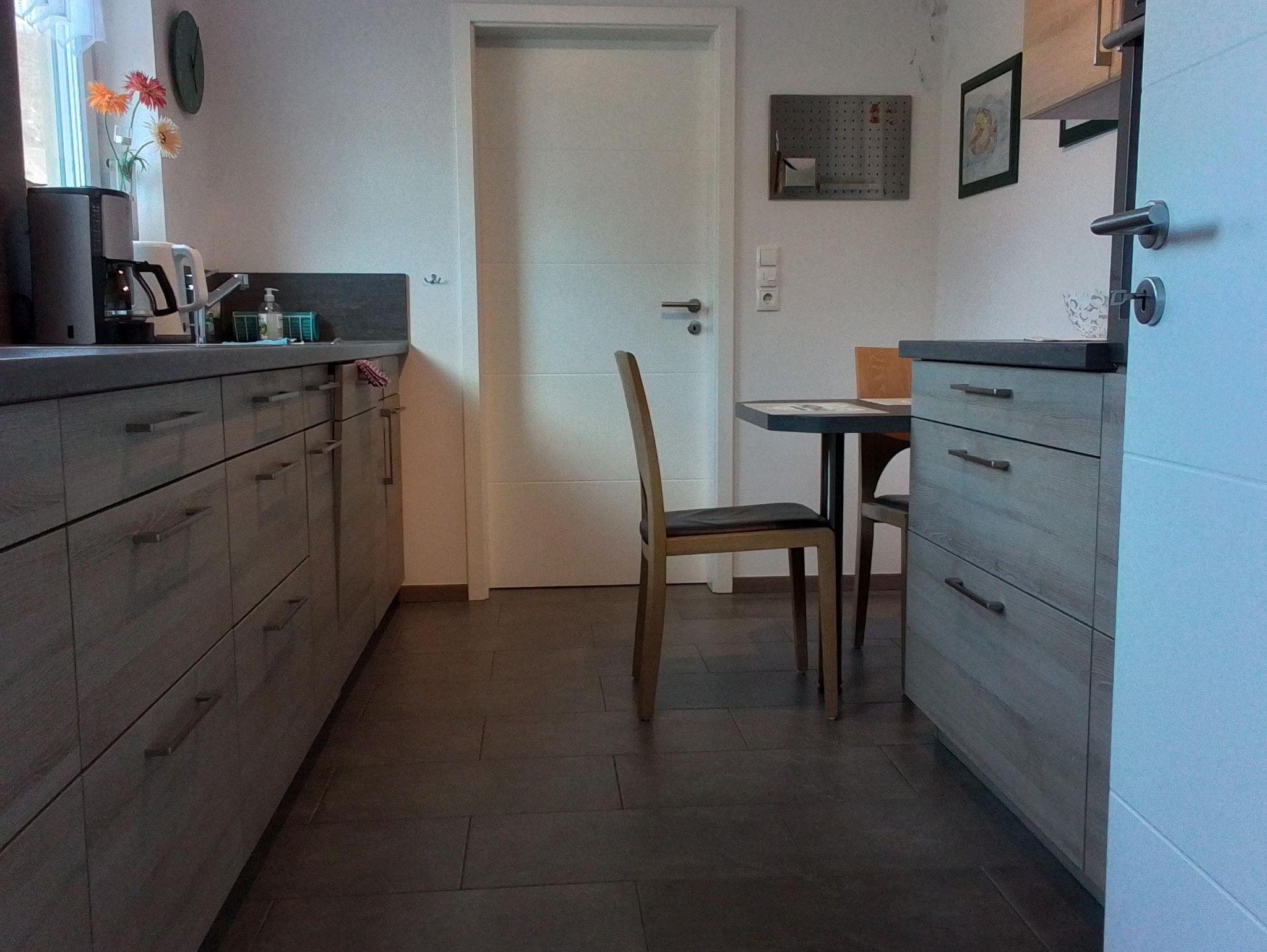 Die Küche ist mit Rollator gut zu nutzen, für Rollstuhl weniger geeignet.