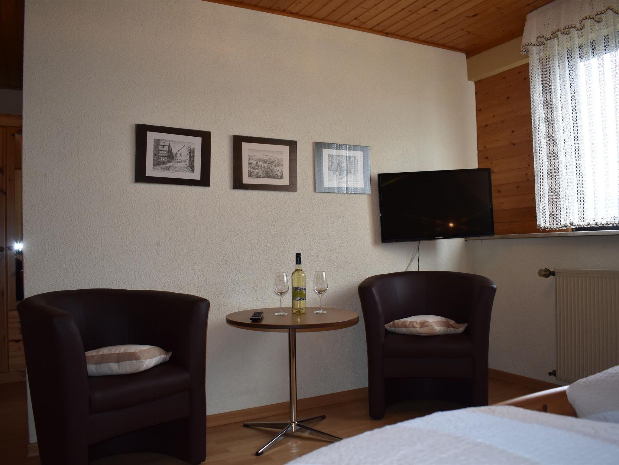 Ruhige Zimmer mit TV, Radiowecker, Dusche/ WC und Blick in die Weinberge