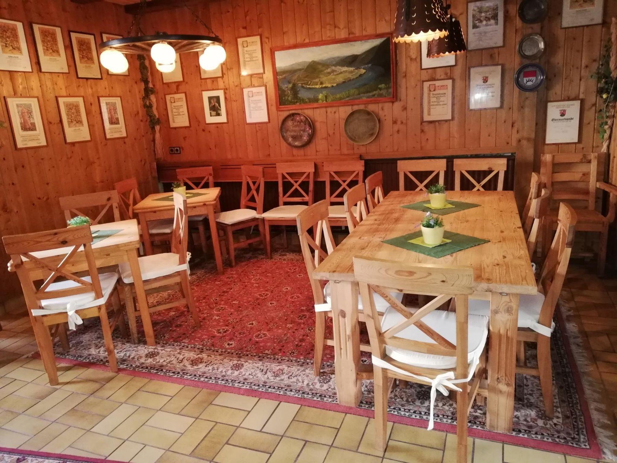 Am Ortsrand, umgeben von Weinbergen, liegt unser Ferienweingut. Schon seit 1780 widmet sich unsere Familie dem Weinbau. In unserer rustikalen Weinstube und Strausswirtschaft können Sie sich bei einem Gläschen Wein entspannen. Gemütlich eingerichtete Doppelzimmer mit TV, Radiowecker, Dusche/WC und Blick in die Weinberge, bzw. auf die Mosel laden zum Erholen und Entspannen ein. Ausserdem halten wir ein modernes Appartment mit TV, überdachtem Balkon, Dusche u. WC für Sie bereit. Auf Wunsch führen wir Weinproben, Kellerbesichtigungen, Weinbergswanderungen und Grillabende durch. Bei sonnigem Wetter können Sie auch gerne in unserem Garten mit kleinem Teich ein Glas Wein oder Secco genießen.