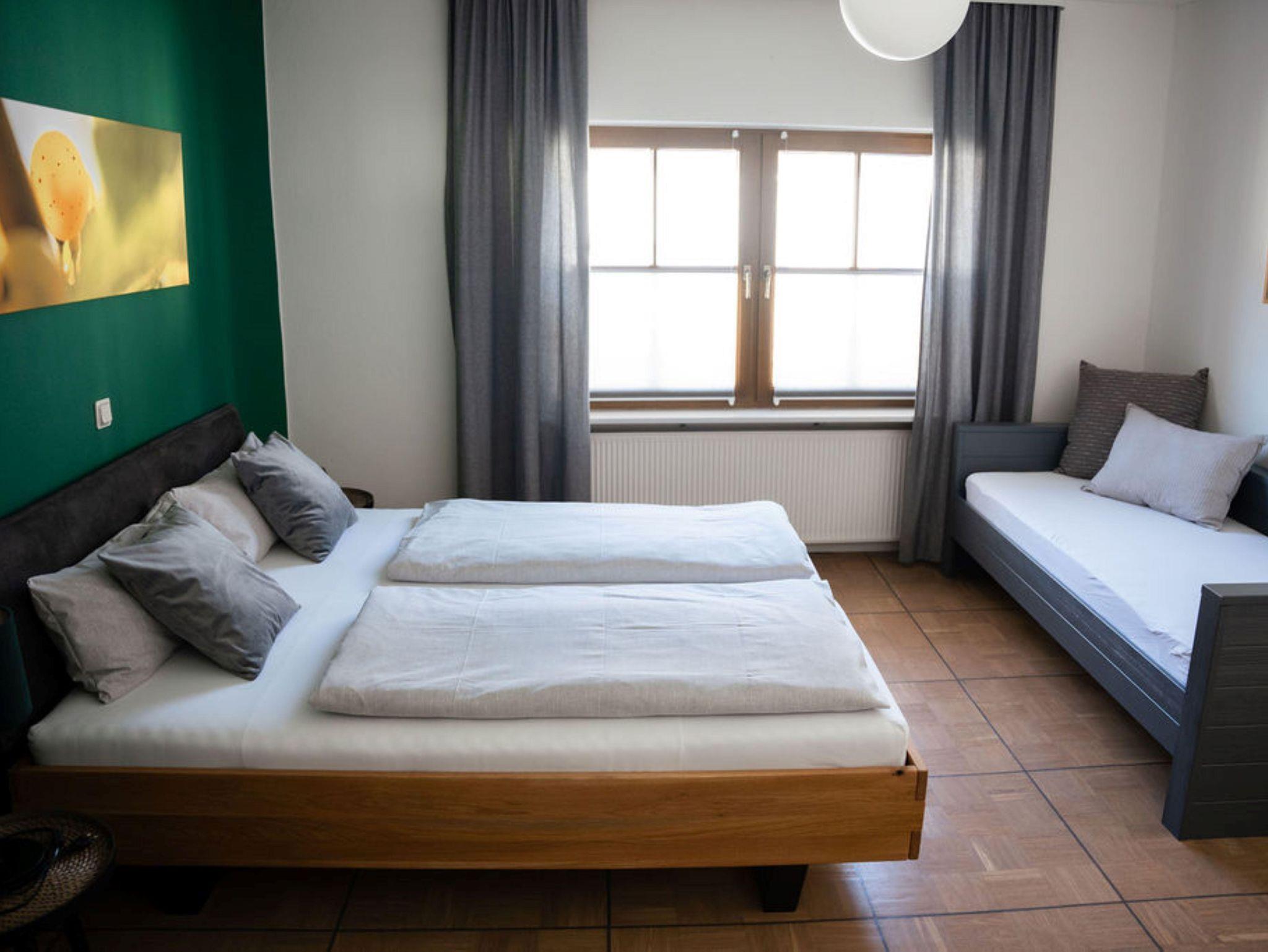 Die moderne Einrichtung schafft eine angenehme Atmosphäre. Besonders ansprechend ist das neu eingerichtete Schlafzimmer (Renovierung 2023) mit Doppelbett und zusätzlichem Einzelbett. Kombinierter Wohn- und Küchenbereich mit Essecke, Sofa und Smart-TV. Komplette Küchenausstattung (Backofen mit Herd, Filterkaffeemaschine, Kühlschrank mit Gefrierfach, Toaster, Wasserkocher, Geschirr, Töpfe etc.). Das Badzimmer mit Dusche & WC ist klein, aber es ist alles da, was benötigt wird. Max. 3 Personen können hier gut wohnen (Kinder bis 5 Jahre frei). Bettwäsche und Handtücher werden zur Verfügung gestellt (Küchenwäsche bitte mitbringen). Unser kleiner Garten kann gerne mitbenutzt werden. Wir möchten Sie höflich darauf hinweisen, dass unsere Zimmer/Wohnungen Nichtraucherzimmer sind und Haustiere nicht erlaubt sind.