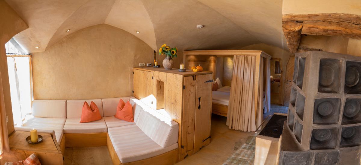 Die Hofmarkstubn im Turm zu Schloss Schedling für einen romantischen Urlaub mit südlichem Flair.