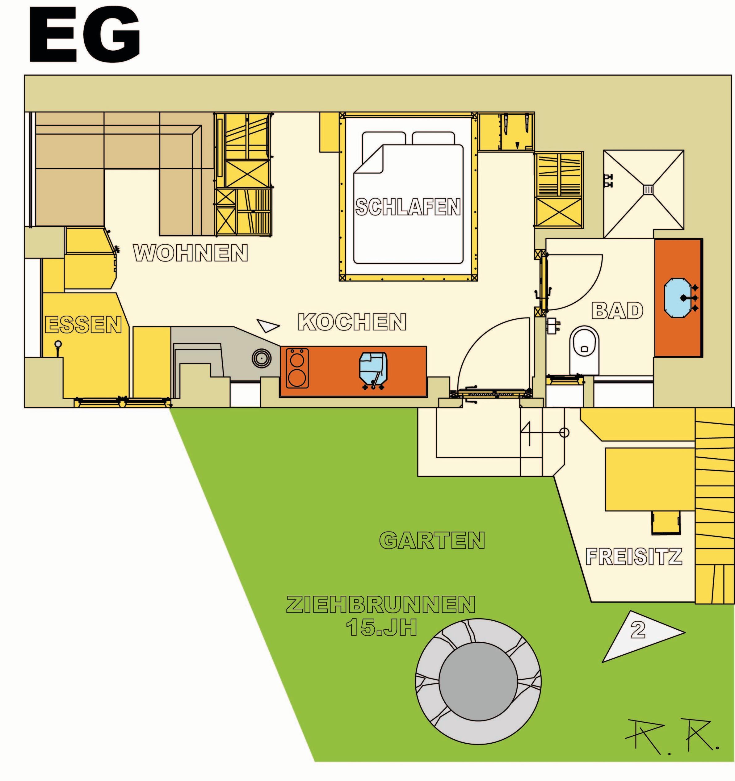 - Wohn-/Schlafzimmer, 2 Personen