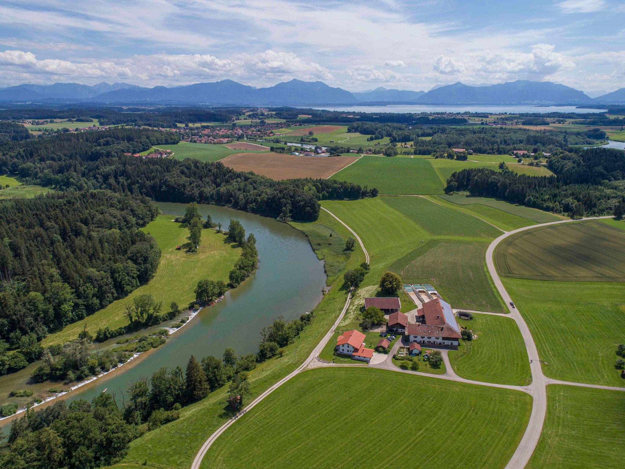 Bauernhof (keine Nutztiere - Kühe), direkt an der Alz mit eigenem Badesteg. Gartenhaus mit Freisitz und Grill. Spielplatz mit Geräten vorhanden, großes Trampolin. Viel Platz zum spielen und toben. Im Winter sind die Chiemgauer Skigebiete nicht weit entfernt (ca. 25 km). Eislaufen auf Natureis am Seeoner See und am Chiemsee je nach Wetterlage möglich. Winterwanderungen direkt ab unserem Hof. Einkaufsmöglichkeiten in ca. 2 km Entfernung. Überblick 360 Grad Panorama