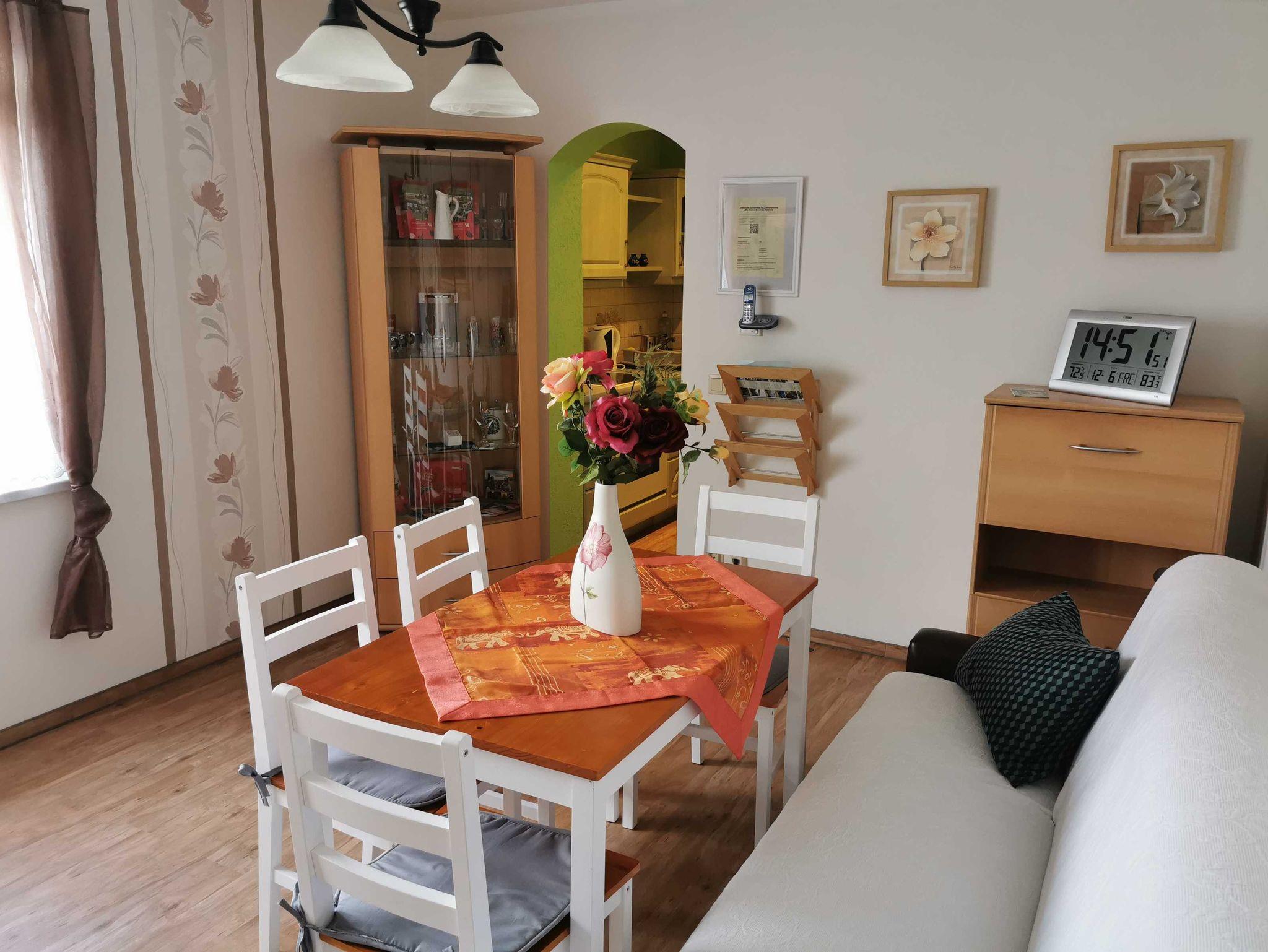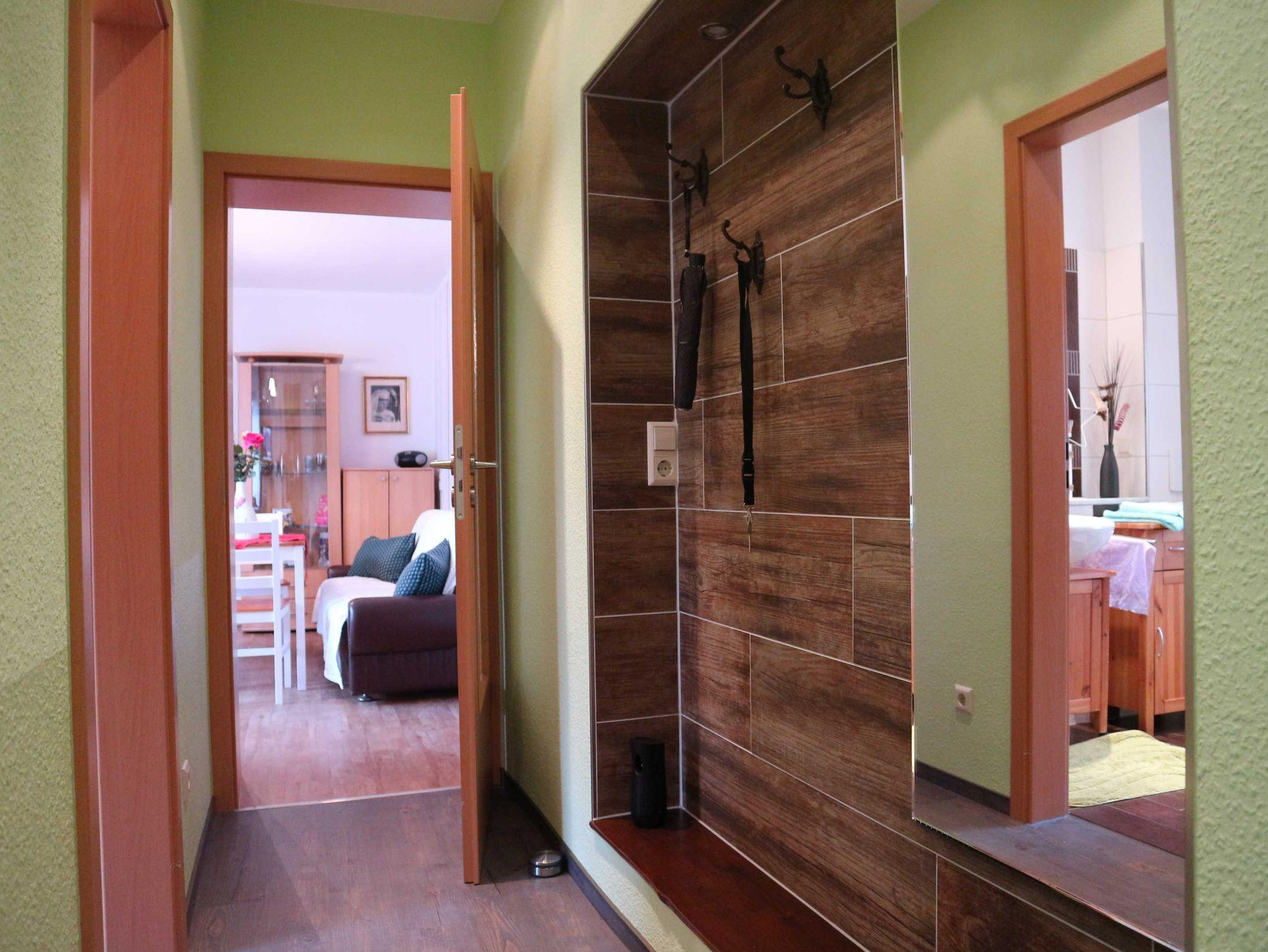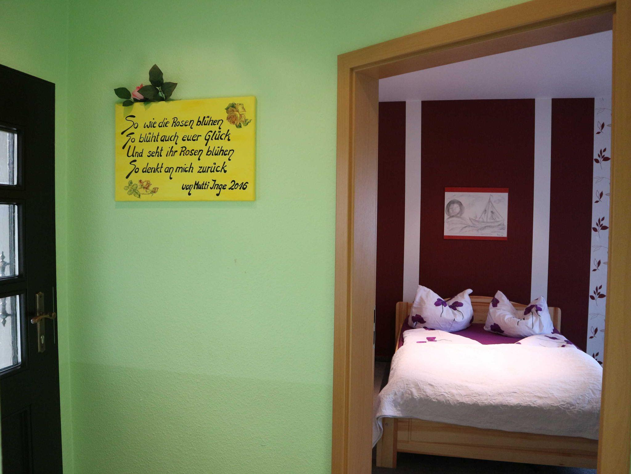 Schöne helle 44 qm Einliegerwohnung mit seperaten Eingang im idyllischen Ort Wolfshain. Das Zweiraum-Appartment verfügt über ein Schlafzimmer mit zwei Einzelbetten (zusammenschiebbar) und einem Kinderetagenbett. Im Schlafzimmer ist Platz für eine Aufbettung und/ oder Reisebettchen. Weitere Aufbettungen sind Auf Anfrage möglich. Im Wohnzimmer befindet sich eine Sitzgruppe für 6 Personen und ein TV Flachbild, Radio mit CD Player. Direkt anschließend befindet sich die Küchenzeile mit Backofen, E-Herd mit Ceranfeld, Kühl- und Gefrierschrank sowie Mikrowelle u.a. Direkt nebenan steht Ihnen ein Hauswirtschaftsraum mit u.a. Bügelbrett und -eisen als Abstellmöglichkeit zur Verfügung. Das großzügige Bad mit Fenster hat eine ebenerdige Dusche und eine Waschmaschine.