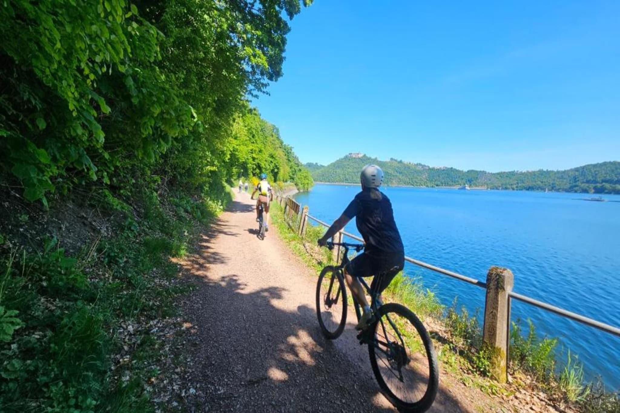 Der Twistesee hat einen Damm. Ein idealer Ort für Wanderer und Radfahrer. Lust auf eine Herausforderung? Sie können hier auch Wasserski fahren.