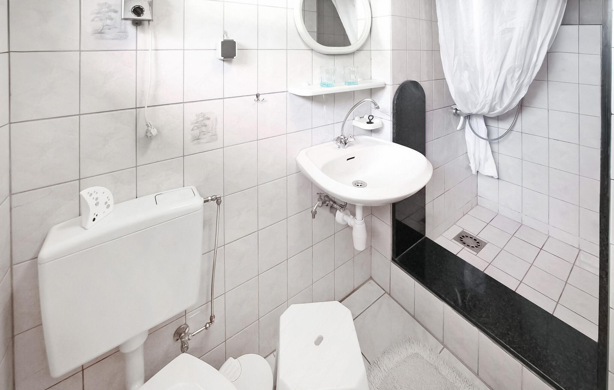 - WC mit warmem und kaltem Wasser, Dusche