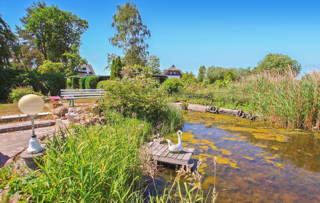 Die acht Ferienhäuser liegen auf einem 2500 qm großen Natur-/Wassergrundstück direkt am Stettiner Haff. Jedes Ferienhaus ist individuell und separat. Vom Grundstück führt ein Weg direkt zum Strand (ca. 50 m). Alle Ferienhäuser verfügen über eine möblierte Terrasse oder einen Außensitzplatz mit Grill und einen Parkplatz direkt am Bungalow. Dieses Ferienhaus ist ausgestattet mit Wohnzimmer (Polstermöbel, TV) 2 kl. Schlafzimmer mit je 2 Betten, Pantryküche, DU/WC, E-Heizung.